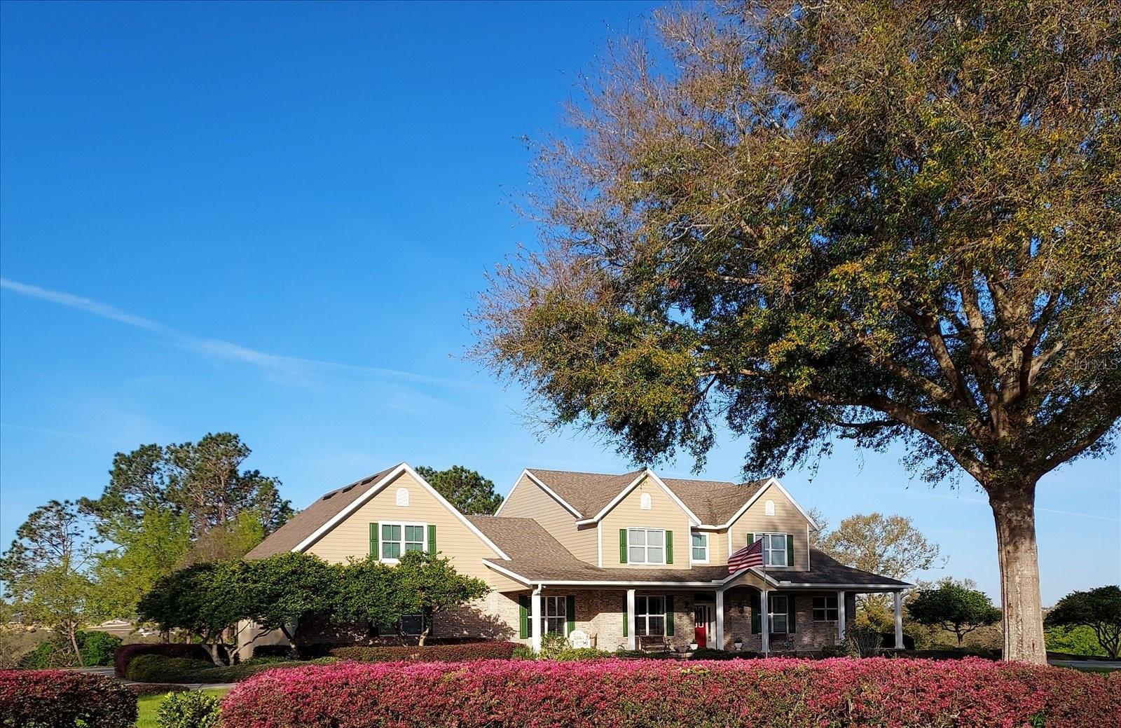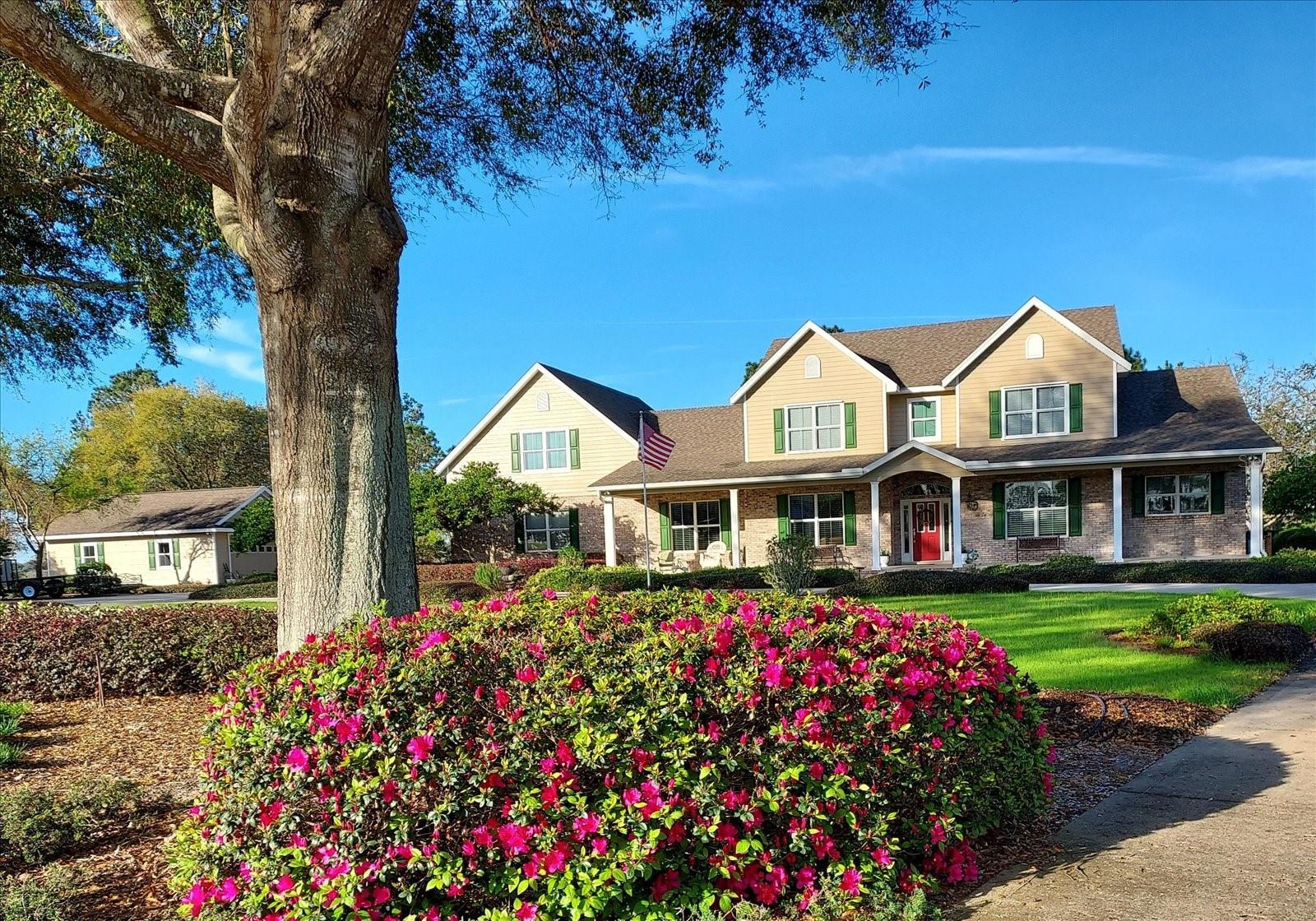 Step into a world of timeless elegance at this custom-built 4,281 sq ft masterpiece on 2.57 private acres at one of Montverde’s highest elevations. This 4-bedroom, 2-full-bath, 3-half-bath estate, crafted by an award-winning builder, redefines luxury with its extraordinary landscaping, featuring majestic mature Oak trees and vibrant, year-round blooming gardens that create a secluded paradise. An expansive paved driveway sweeps through the grounds, offering multiple parking options and leading to an oversized 3-car garage with 8’ doors and a separate 2-car garage/workshop with HVAC and half-bath—up to 5 garage spaces for collectors or hobbyists. Ascend the steps to an inviting open patio, perfect for grand entertaining, or retreat to the vast screened lanai, where breathtaking vistas of the treed landscape unfold, blending indoor and outdoor living. Inside, white oak flooring, Silestone quartz countertops, and custom cabinetry set a tone of refined sophistication. The gourmet kitchen, a chef’s dream, boasts a large walk-in pantry and premium appliances, flowing seamlessly into a cozy family room with a gas fireplace and built-in cabinetry. The downstairs primary suite offers serene privacy, while three generously sized upstairs bedrooms—far exceeding standard dimensions—provide luxurious retreats. A versatile second-story flex space awaits transformation into a home theater, private gym, or bespoke lounge, ensuring the home evolves with your lifestyle. Additional highlights include a large unfinished bonus room over the 3-car garage, ripe for customization, and meticulous details like crown molding, 5.5” baseboards, window casings, and extensive storage throughout the house. Climate control is effortless with 3 AC units for the main house and a split HVAC for the workshop. In the backyard is a pergola covering the outdoor kitchen grill, 2 burner cooktop and sink. NO HOA!! Zoned for horses, this estate is an equestrian’s haven, yet it’s just minutes from Montverde Academy and Bella Collina with world-class amenities, including golf, spa, and fine dining. More than a home, this is a legacy of prestige, privacy, and unparalleled craftsmanship. Schedule your private tour to experience Montverde’s finest.