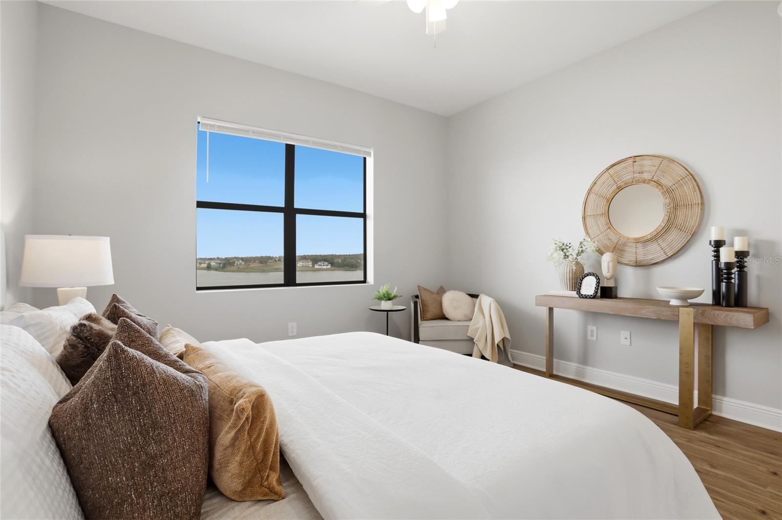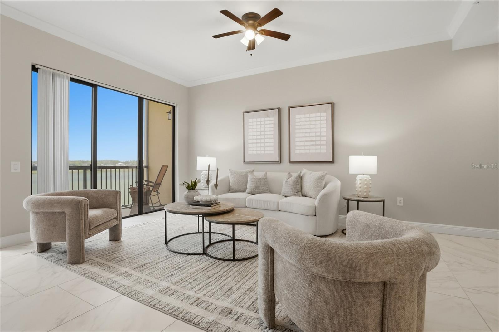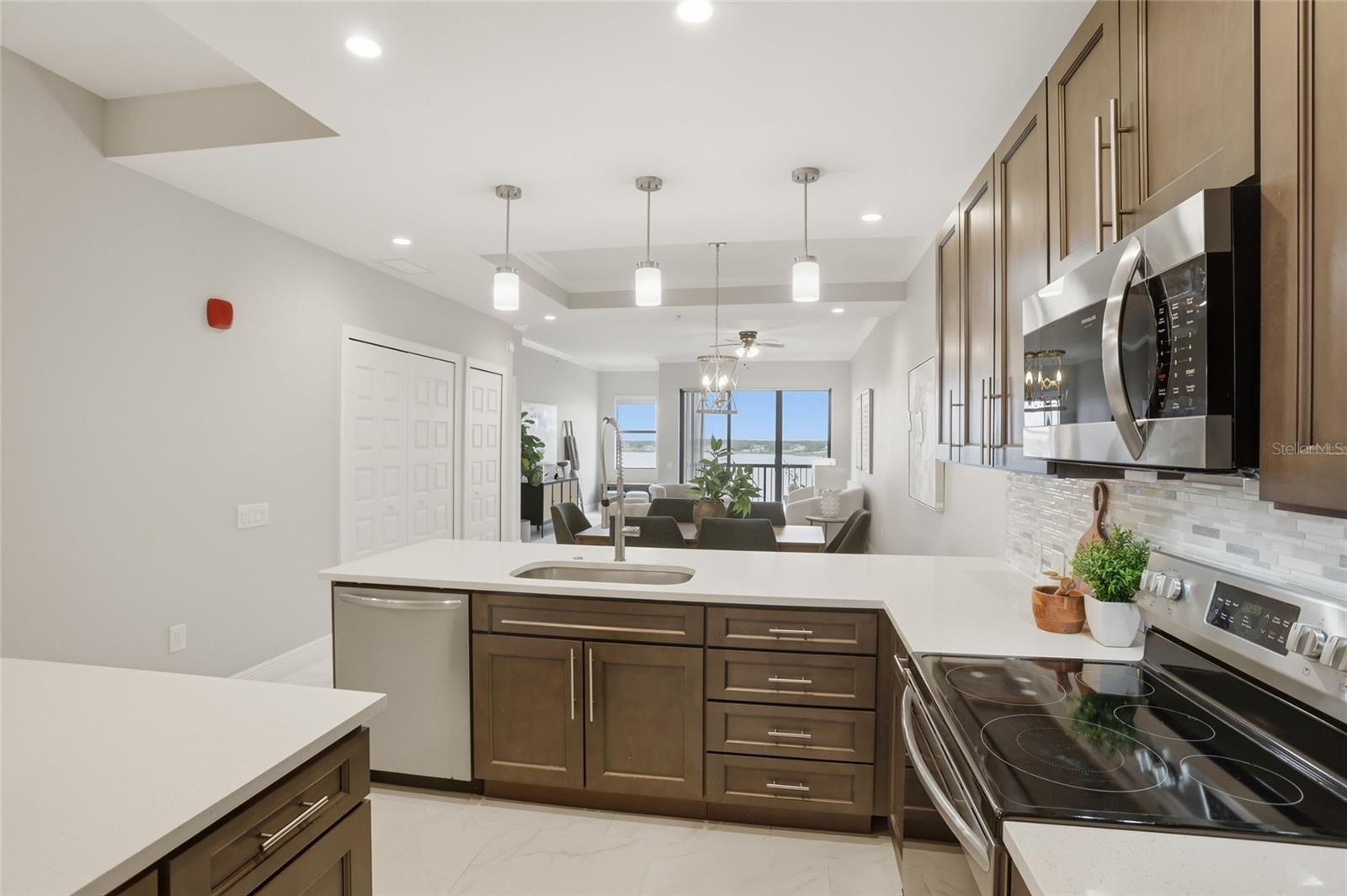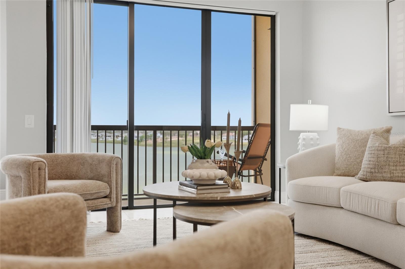 Welcome to elevated, maintenance- free living at its absolute finest in Siena at Bella Collina. This stunning TOP FLOOR residence offers the BEST unobstructed views of Lake Siena and the surrounding rolling hills. This move-in ready home has over 1,400 square feet of beautifully updated space with two bedrooms and two full baths plus one-half bath. From the moment you walk in, you feel the serenity. Natural light pours in, the views immediately draw you out to the balcony, and everything about the home feels calm, refined, and effortlessly luxurious. The open-living and dining areas flow seamlessly into a modern designer kitchen featuring quartz countertops, stainless steel appliances, custom cabinetry, and elegant pendant lighting. Making it just as perfect for quiet mornings as it is for entertaining. The primary suite is a true retreat with serene water views, luxury vinyl plank flooring, and a spa-inspired bath with dual vanities, a soaking tub, and a spacious walk-in shower. While the second bedroom is ideally situated for guests or a home office. Step onto your private balcony and take in the peaceful lakefront setting, enjoy your morning coffee or unwind with a glass of wine at sunset. Living in Siena at Bella Collina makes every day feels like a getaway, with a gated entrance, a beautifully appointed clubhouse, state-of-the art fitness center, heated resort style pool, scenic walking paths around Lake Siena, and an inviting fire pit area. All just minutes from the top-rated private Montverde Academy, the Florida Turnpike, top rated hospitals, and world-class golf. This is more than a condo, it is a lifestyle that blends luxury, convenience, and serenity in one of Central Florida’s most sought-after communities. Once you’re here, you truly will not want to live anywhere else. Schedule your showing today!