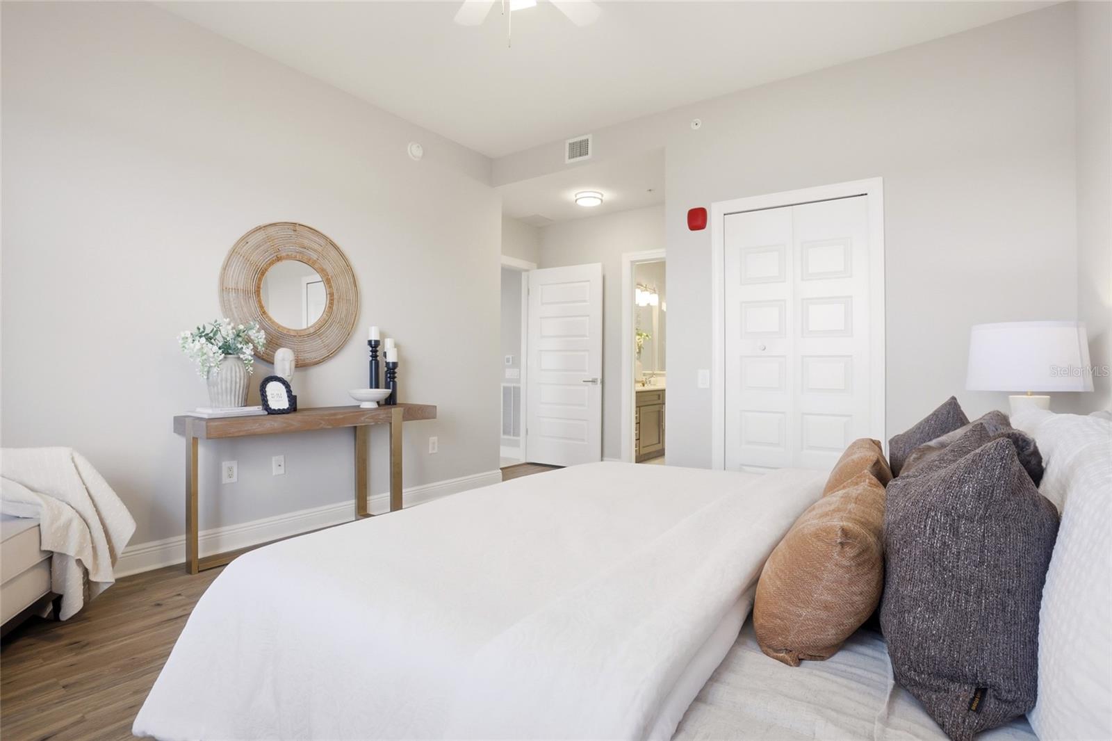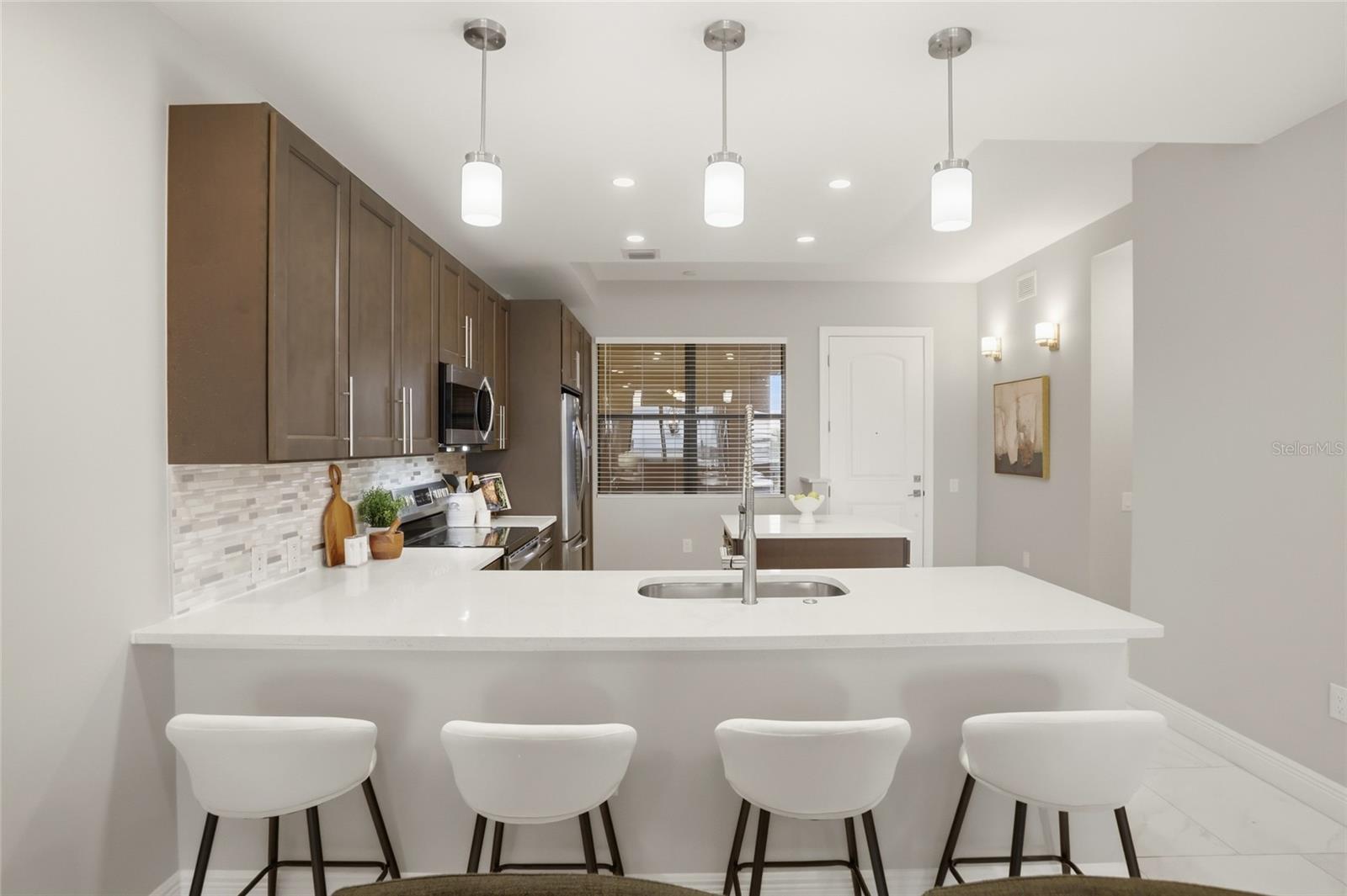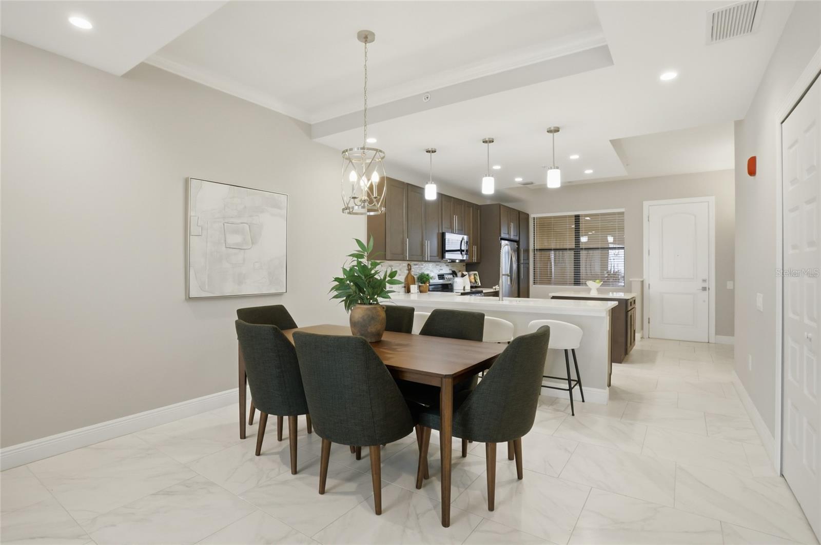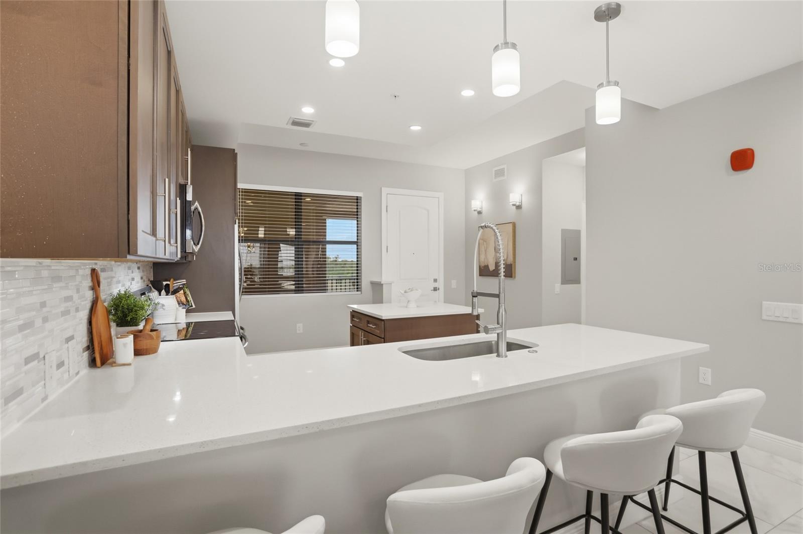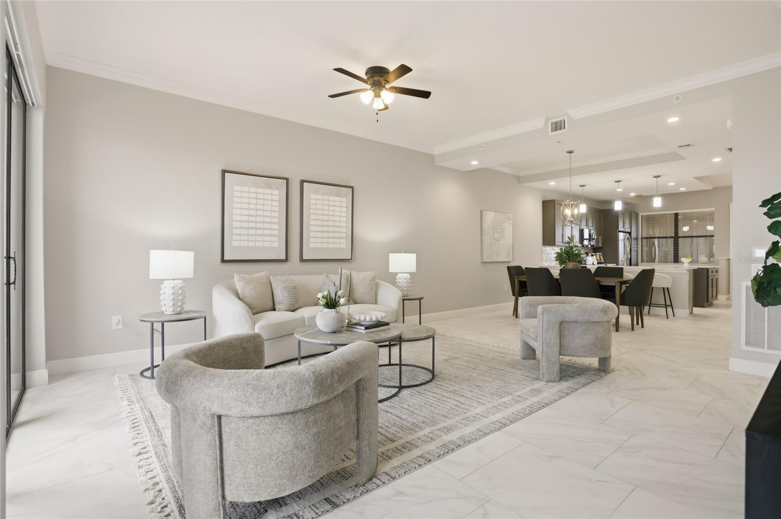 Welcome to elevated, maintenance- free living at its absolute finest in Siena at Bella Collina. This stunning TOP FLOOR residence offers the BEST unobstructed views of Lake Siena and the surrounding rolling hills. This move-in ready home has over 1,400 square feet of beautifully updated space with two bedrooms and two full baths plus one-half bath. From the moment you walk in, you feel the serenity. Natural light pours in, the views immediately draw you out to the balcony, and everything about the home feels calm, refined, and effortlessly luxurious. The open-living and dining areas flow seamlessly into a modern designer kitchen featuring quartz countertops, stainless steel appliances, custom cabinetry, and elegant pendant lighting. Making it just as perfect for quiet mornings as it is for entertaining. The primary suite is a true retreat with serene water views, luxury vinyl plank flooring, and a spa-inspired bath with dual vanities, a soaking tub, and a spacious walk-in shower. While the second bedroom is ideally situated for guests or a home office. Step onto your private balcony and take in the peaceful lakefront setting, enjoy your morning coffee or unwind with a glass of wine at sunset. Living in Siena at Bella Collina makes every day feels like a getaway, with a gated entrance, a beautifully appointed clubhouse, state-of-the art fitness center, heated resort style pool, scenic walking paths around Lake Siena, and an inviting fire pit area. All just minutes from the top-rated private Montverde Academy, the Florida Turnpike, top rated hospitals, and world-class golf. This is more than a condo, it is a lifestyle that blends luxury, convenience, and serenity in one of Central Florida’s most sought-after communities. Once you’re here, you truly will not want to live anywhere else. Schedule your showing today!