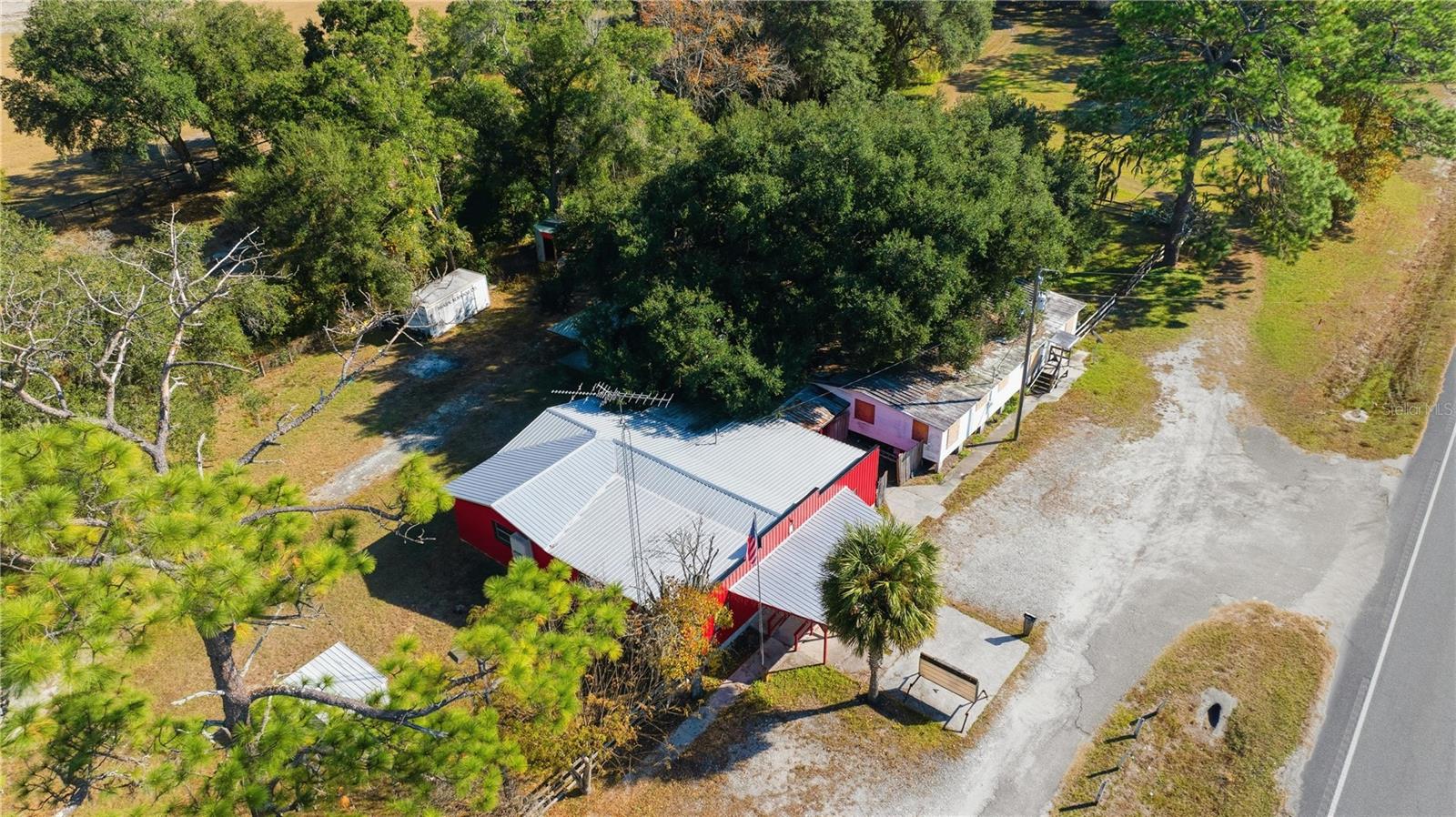2.5 acres on HWY 41. Formely the Sunray Saloon. Property with Indoor and Outdoor Bar + 4/2 mobile home and additional outbuildings. A boot scootin' fantastic opportunity to own this former Saloon/Bar building on 2.5 beautiful acres with 650 feet frontage right on Hwy 41 offering high visibility and traffic count! Currently vacant some photos depict when business was open. 24 minutes to The World Equestrian Center, 15 minutes to HITS, 10 minutes to Williston. Many alternate uses for this high traffic property. This bright red beauty gives passerby's a reason to turn in. Situated on 2.50 acres this property has so much going on and so much to offer, you definitely need to check it out! The 2,664-sf building features a live entertainment stage, game room/pool area, sit at bar counter, drink cooler, kitchenette, and seating areas. But that's not all...the property also features: a covered outdoor bar and walk in coolers, covered outdoor stage w/ elec. for entertainment; sitting areas under the magnificent oak tree; huge pole barn; storage buildings; laundry room, 3 RV sites, and a 4/2 mobile home. This truly is a unique one-of-a-kind opportunity that had been a longstanding business with a loyal customer base. Perfect for owner occupied business or investor opportunity. Possible alternate uses could be: car lot, vet office, doggie day care, landscape or garden center, farmers market, Flea market, retail shop, mini-golf, place of worship, cafe, etc. Contents of building does convey, mobile home needs much work. Call today to tour this property.