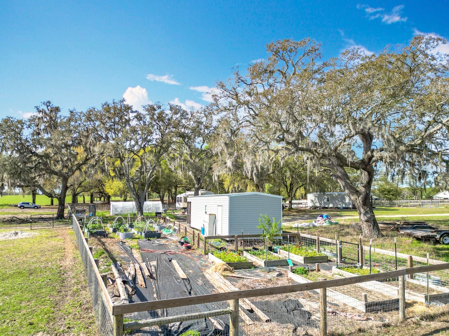 A beautiful 30-acre parcel with the following: -30x60 metal barn with concrete floor & roof extension (lean-to) in back covering entire 60’ length. - 2-12x40 metal sheds with electric approx. 1 yr old, 6 large, fenced paddocks with center aisle used for feeding. -Entire property fenced. Turnkey for livestock, horses, etc. -new entrance fencing with remote gate opener. -RV water & electric installed. -pastures seeded for winter rye & Bahia mix in spring & summer. *Also, a cattle chute in rear paddock (head gate does not convey) Rear Pond stocked with Tilapia. *All paddocks have electric and water. fenced in large garden with raised vegetable/flower beds. This is also listed as a 52 acre parcel and 41.5 acre parcel.