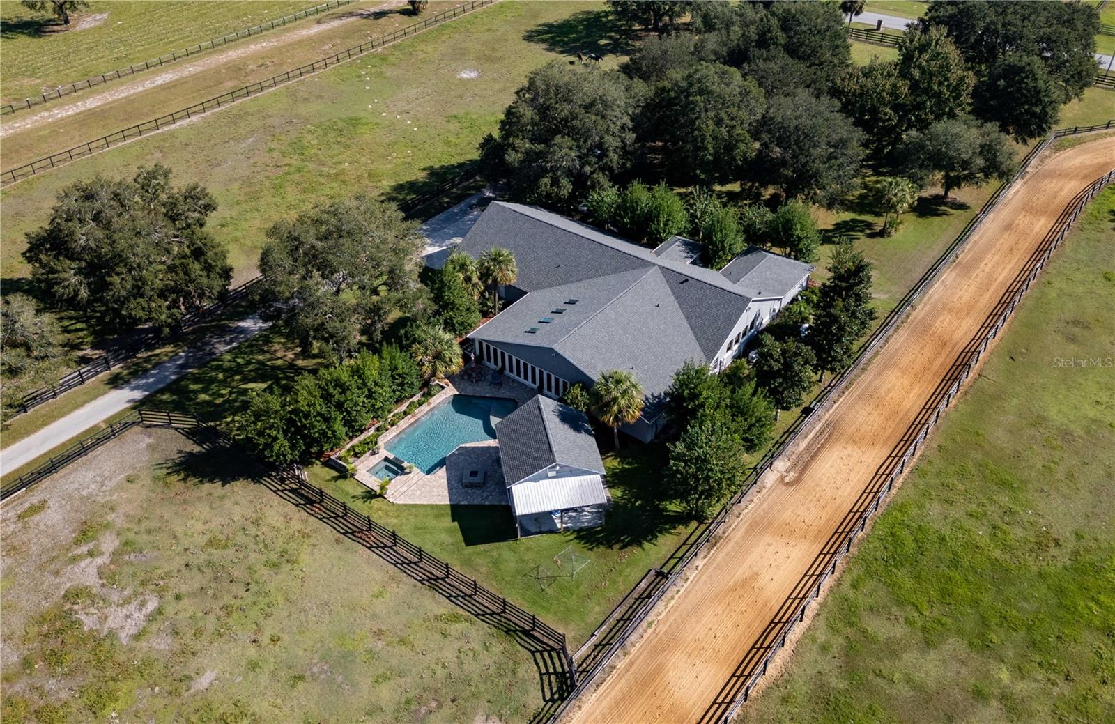 Nestled on a quiet stretch of Central Florida’s pristine horse country, this stunning 19+ acre horse farm is abundant with amenities. Blending luxurious equestrian living with a thoughtfully designed layout, the property features a total of 15 paddocks dappled with shade. The attractive 35-stall center-aisle barn includes a fly spray system, rubber pavers, tack and feed room, multiple wash racks with hot water, and a bathroom/laundry room. A 3-bedroom barn apartment provides the perfect option for farm managers, guest accommodations, or seasonal rental potential. Six RV hook ups and prominent on the acreage is a gallop track with irrigation, a round pen, an eurocizer and additional storage structures for large equipment and trailer storage. Surrounded by professional landscaping and gently shaded by mature oaks, the home features a total of 4-bedrooms and 4.5-baths and over 4,700 sq.ft. of living space and 6000+ sq.ft. under roof. Well-appointed for those who enjoy hosting and cooking, the kitchen is a cook's dream offering abundant cabinet and counter space, a large center island, updated stainless steel appliances including a Wolf gas range with grill and double ovens and a Sub-Zero refrigerator and freezer, a built-in bar area with a wine & beer cooler, and much more. The 1000+ sq.ft. game room offers large french doors that run along the entire back wall, allowing the surrounding farm and pool views to become a feature of the space, as well as multiple skylights, stamped concrete flooring, and a stunning gas fireplace. A formal office area is perfect for those looking to work from home or to meet customers. Additional spaces of note include the formal living room, formal dining room, and a gym space that makes it a breeze to work out without having to leave the farm. The master suite is an exquisite space for those looking to unwind, complete with tray ceiling accents, large windows, a huge walk-in closet, and a private en-suite with garden tub, dual vanities, walk-in shower, and abundant storage space. Two of the guest bedrooms also include en-suite baths, giving additional privacy to all. For those who enjoy entertaining, the backyard features a true oasis– surrounded by a paver deck, a heated sparkling salt-water pool and spa includes lighting, waterfall, and fountain features. A tiki hut features an inviting summer kitchen complete with bar style seating, grill, firepit, and more. Perfectly suited for active equestrians looking to take advantage of the Horse Capital of the World. This farm is located just 9 minutes away from HITS, 25 minutes from the World Equestrian Center. New roof installed on home in June 2024.