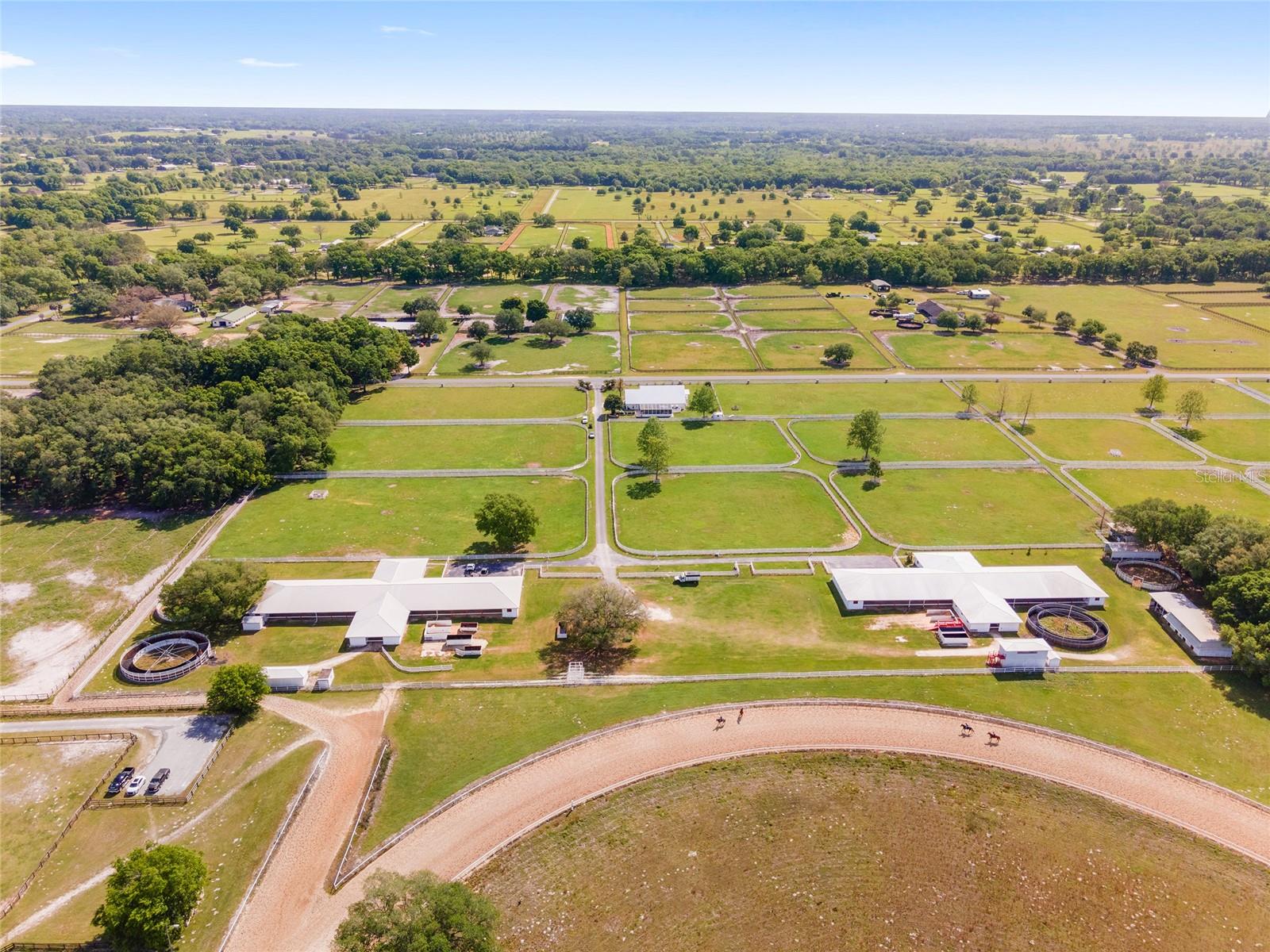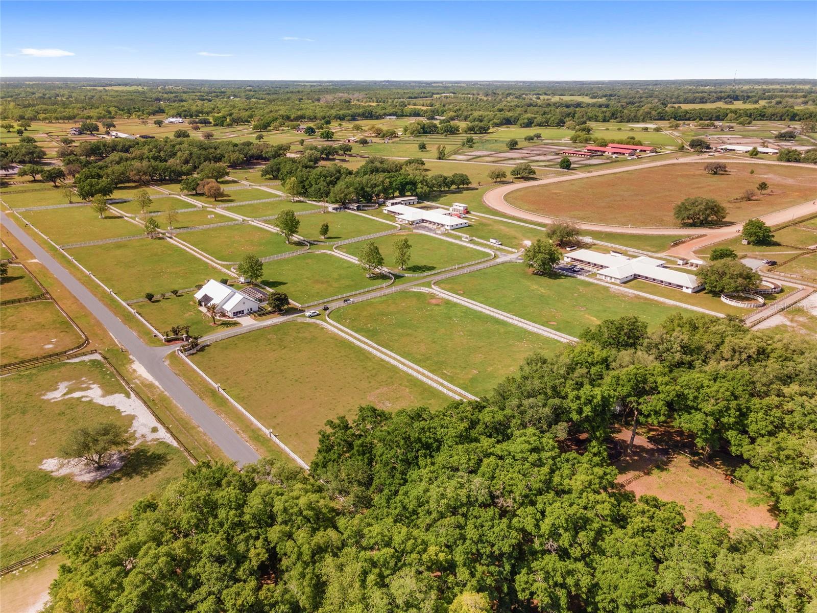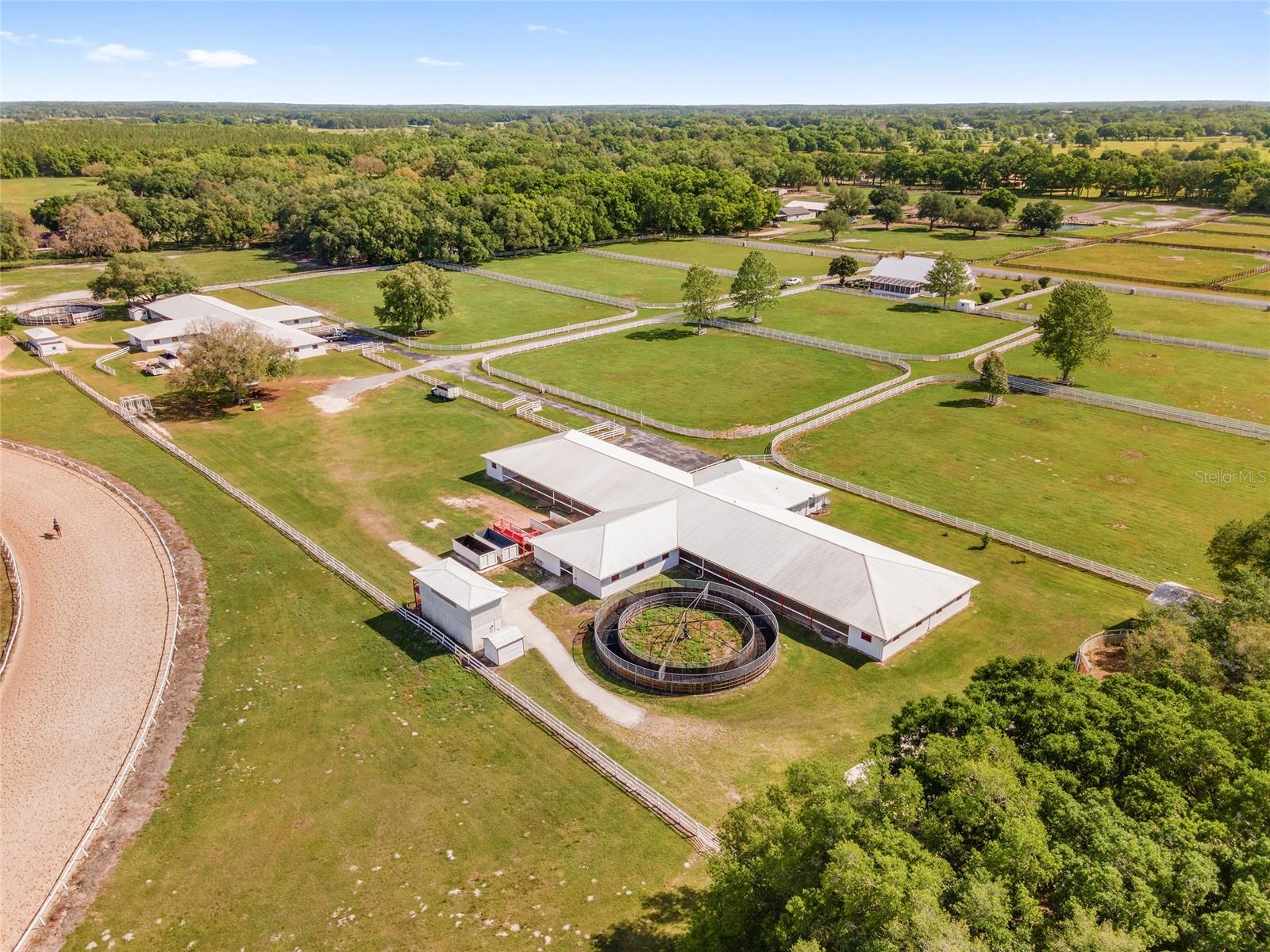 A remarkable opportunity to own this fantastic 41-acre farm located at the in-gate of a 5/8-mile irrigated community racetrack in the established equestrian community of Starting Point Training Complex. Includes deeded rights to the racetrack with starting gate, private viewing stand, and private deeded riding trails. Provide the best there is for horse conditioning and rehab with a chilled water Aqua Equine Treadmill inside a 3-stall barn. In addition there are two Eurocisers and two round pens. This private property is fenced & cross-fenced with waterlines to all paddocks. There is plenty of indoor and outdoor space for your horses with a 42-stall barn, 36-stall barn, 8-stall barn, a 3-stall barn, and 17 1-acre paddocks. 2 Residences: The home - with spanning views of the farm - has 5 bedrooms, 5 bath, and a pool. There is also a spacious 3-bedroom 2-baths barn apartment. Located less than 15 miles from the World Equestrian Center, and just under 6 miles to HITS! Convenient to main roads, dining, shopping, and all the unique amenities Ocala has to offer.