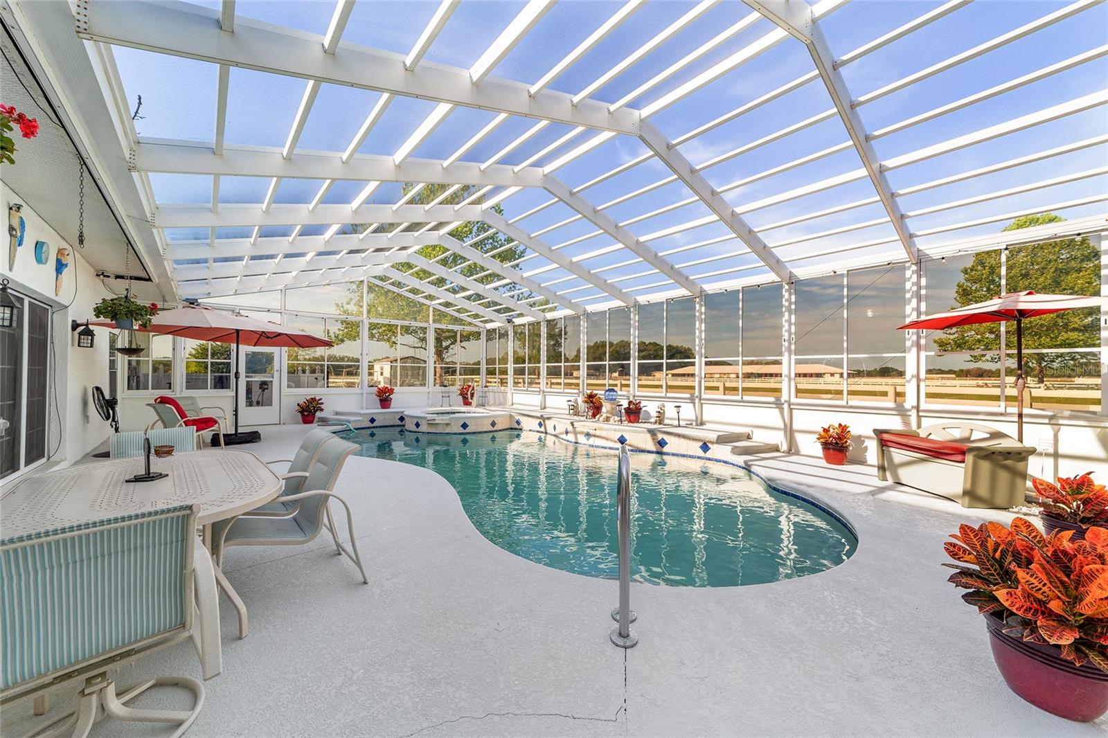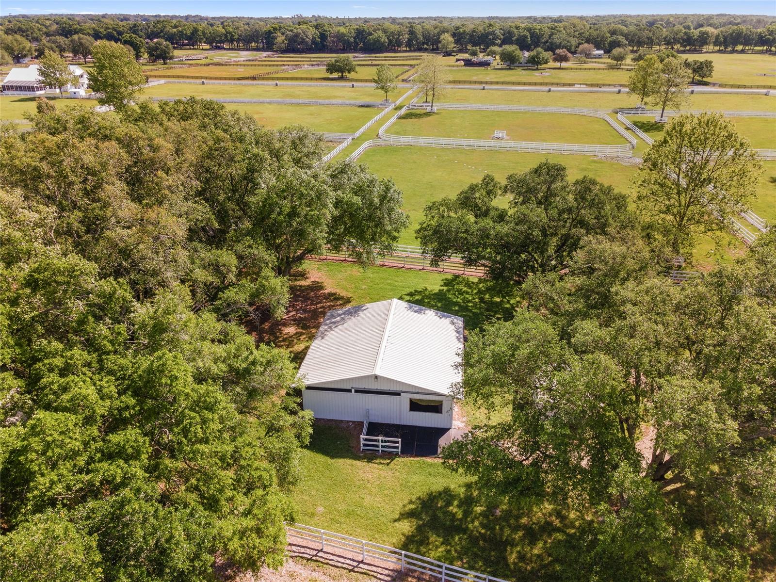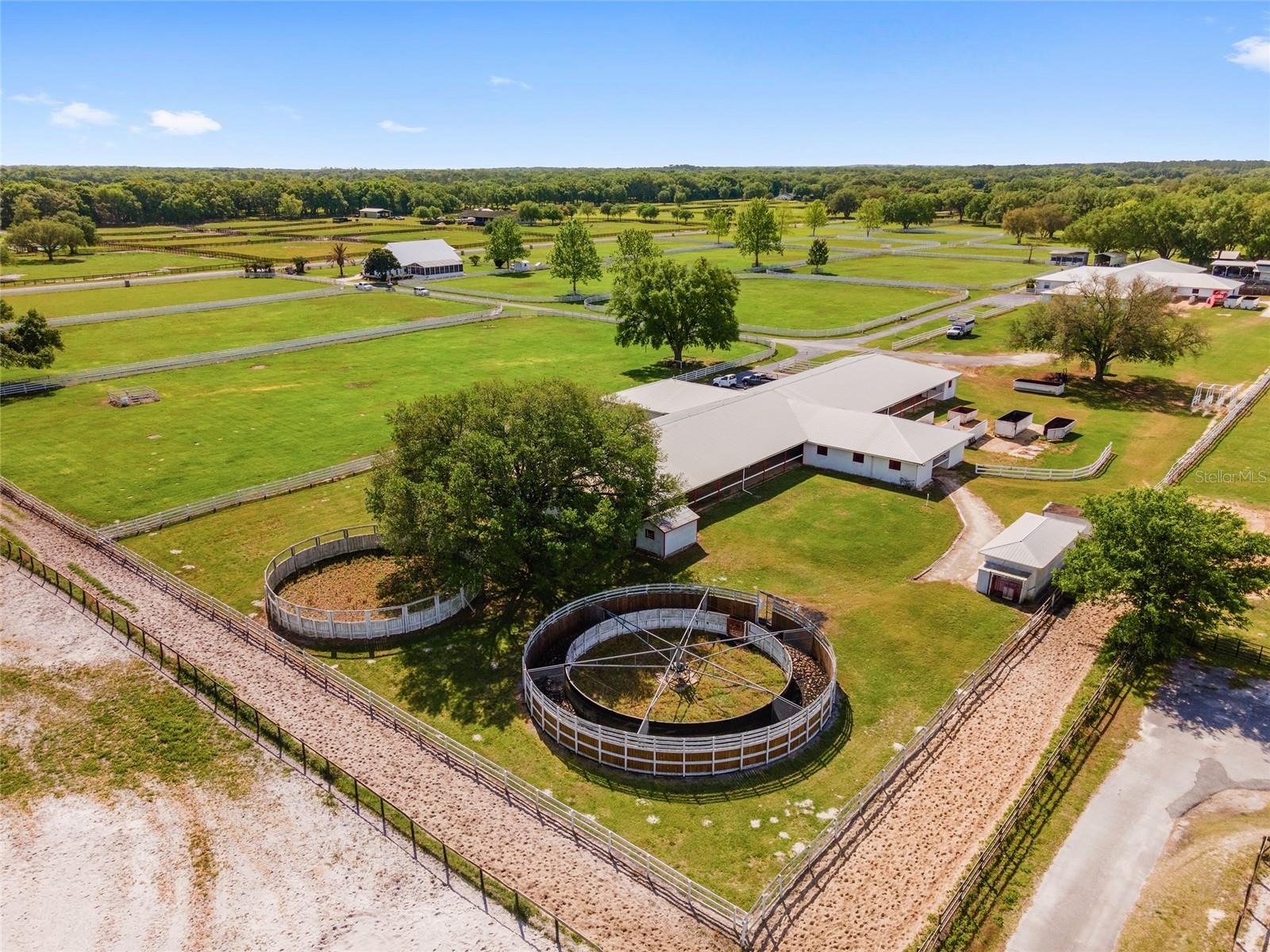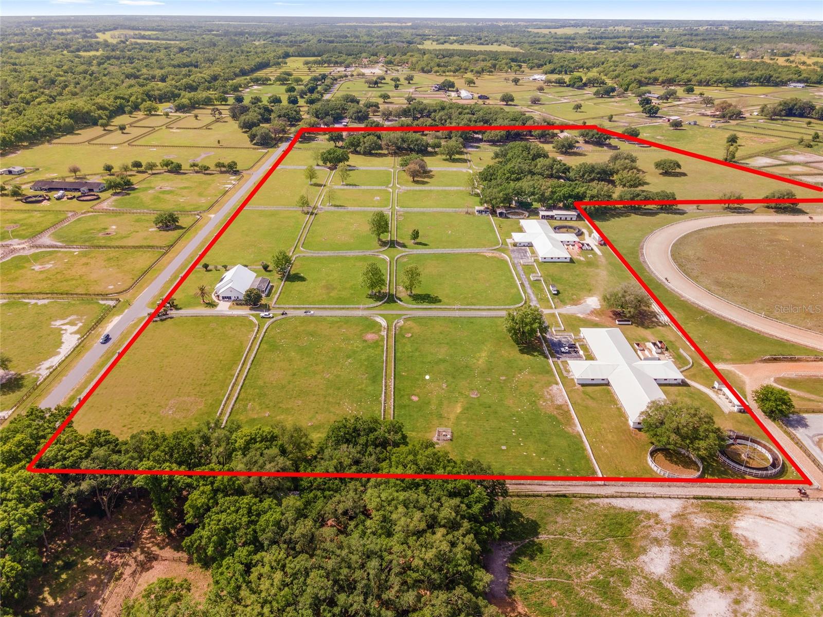 A remarkable opportunity to own this fantastic 41-acre farm located at the in-gate of a 5/8-mile irrigated community racetrack in the established equestrian community of Starting Point Training Complex. Includes deeded rights to the racetrack with starting gate, private viewing stand, and private deeded riding trails. Provide the best there is for horse conditioning and rehab with a chilled water Aqua Equine Treadmill inside a 3-stall barn. In addition there are two Eurocisers and two round pens. This private property is fenced & cross-fenced with waterlines to all paddocks. There is plenty of indoor and outdoor space for your horses with a 42-stall barn, 36-stall barn, 8-stall barn, a 3-stall barn, and 17 1-acre paddocks. 2 Residences: The home - with spanning views of the farm - has 5 bedrooms, 5 bath, and a pool. There is also a spacious 3-bedroom 2-baths barn apartment. Located less than 15 miles from the World Equestrian Center, and just under 6 miles to HITS! Convenient to main roads, dining, shopping, and all the unique amenities Ocala has to offer.