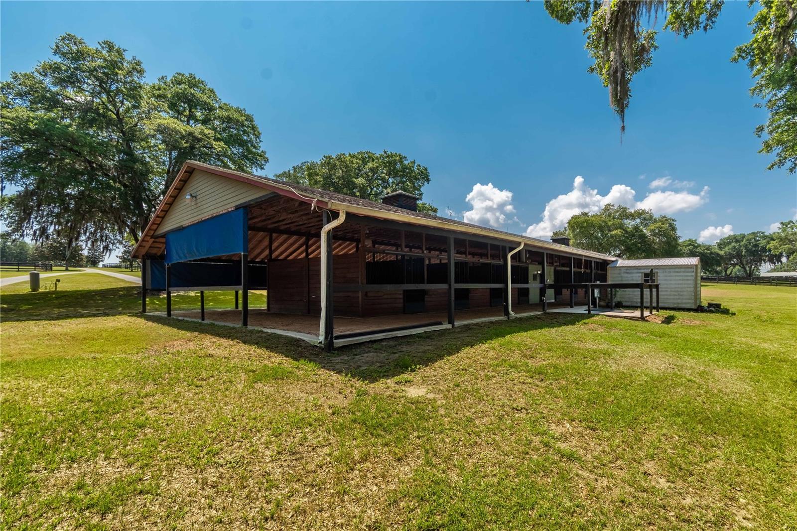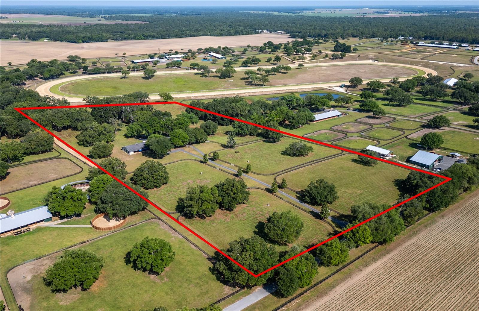 Seller says bring offers! Train your champions within a gated professional equine community! Situated within Oak Ridge Training Center, this exceptional farm offers a strong foundation perfect for those looking to take their thoroughbred operation to the next level. Designed by professionals for professionals, the 20+ acre farm features gently rolling land dotted by mature oaks providing the perfect amount of shade. At the heart of the property is the 20-stall shedrow style barn, which comes equipped with a wash rack with hot water and a barn apartment which could be used instead as a barn office. A total of 5 paddocks are currently established, each equipped with auto-waterers for added ease of care, as well as an additional round pen. An RV hookup is also in-place, adding additional options for short-term or longer term residency right on the property. Oak Ridge Training Center offers owners access to the 1-mile dirt track, which includes a 6-stall starting gate that meets current racing standard, and the more recently added 7/8 mile turf track. Both tracks are lighted and meticulously maintained using the highest industry standards and specifications, with daily maintenance of the track and yearly stripping, checking, and regrading to ensure quality. Located just outside of Ocala and a short drive to Gainesville, this facility offers easy access to a variety of feed and tack retailers, world-class veterinary care, farriers, and other specialty service providers throughout the area. In an area known as the Horse Capital of the World®, this farm is perfect for those looking to take advantage of the year-round warm climate and close proximity to Ocala Breeder’s Sales. Get ready to start your horses off on the right track with this exceptional property!