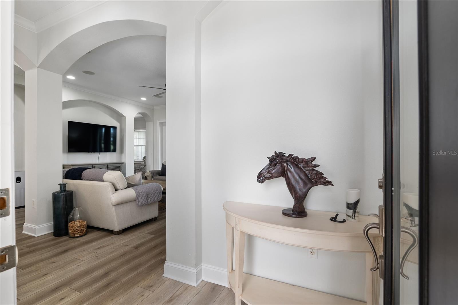 Fully furnished, Turnkey, 3.49 acre mini horse farm in the pristine, gated community Estates at Pleasant Hill located just a short 15 minutes drive from WEC and only 5 miles to Hits. The beautiful split plan custom home features 3 bedrooms with 3 full bathrooms and a 2 car garage. The home comes completely furnished as seen. (Ethan Allen & Pottery Barn etc) The Family Room, the Study and the Master Bedroom all have access through French doors to the fully insulated & air conditioned Florida room that offers the perfect spot for relaxation with great views of the property. The large eat in kitchen with top of-the-line Kitchenaid appliances features beautiful cherry cabinetry, a breakfast nook, bar seating at the kitchen island, and an oversized walk-in pantry. The home is equipped with a water softener and a 24Kw Generex full house generator guardian that is connected to a 500 gallon propane tank. The AC units have anti-allergen micro lights. The property is completely fenced with 4 board fencing & no climb wire. The large paddock with lush grass has a Run in shed with electric. Various Fruit Trees: Peach, Lime, Fig, Banana, Blackberry and Blueberry shrubs for your culinary pleasures. This community has an amazing 60 foot wide 1 1/2 mile Bridle Path to take your horse on a trail ride.