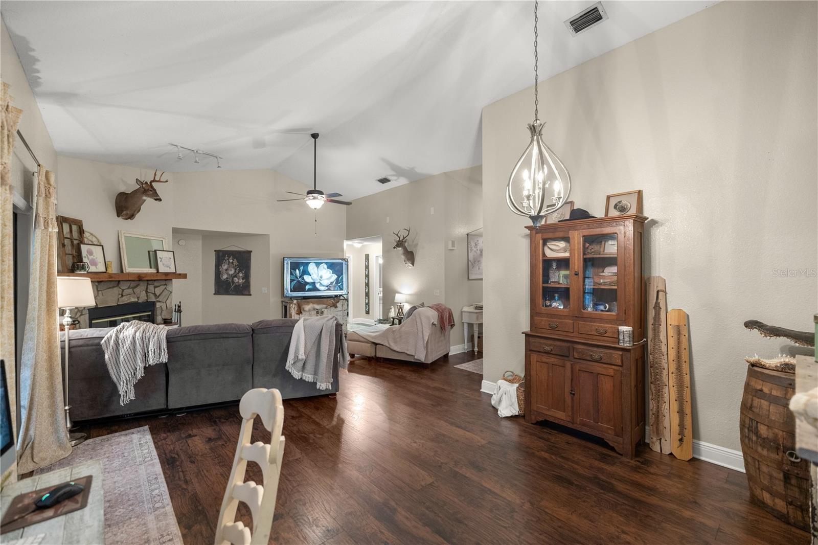 Nestled on 5.12 fully fenced acres in Fox Grove Farms, this charming 3-bedroom, 2-bath home with a 2-car attached garage offers 1,791 sq. ft. of living space. Recent updates include luxury vinyl plank (LVP) flooring throughout (2024), a freshly painted interior (2024), a new roof (2024), and a new AC (2022). The detached 40x24 workshop with loft is fully equipped with 220/120 electric hookups and plumbing. The property also features a water softener, a recently replaced well pressure regulator, a 2021 hot water heater, and RV hookups. Relax and enjoy your morning coffee or evening drink surrounded by the beauty of nature. Perfect for those who love space and convenience!