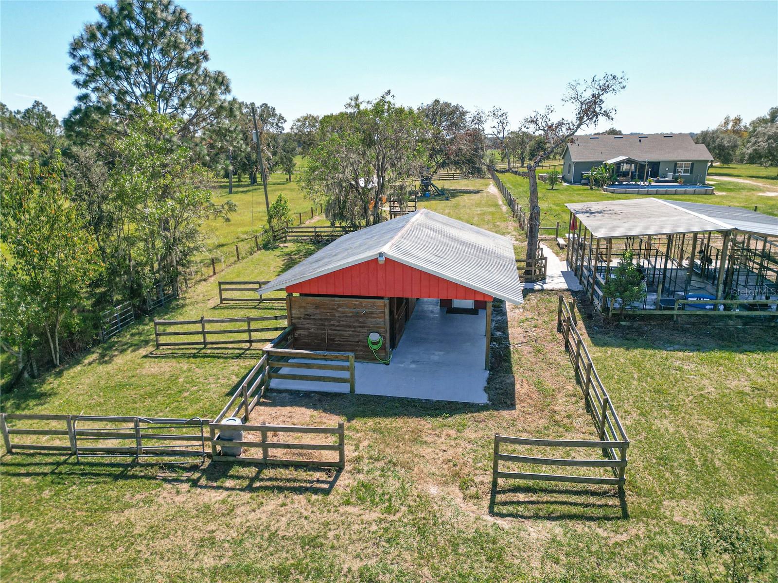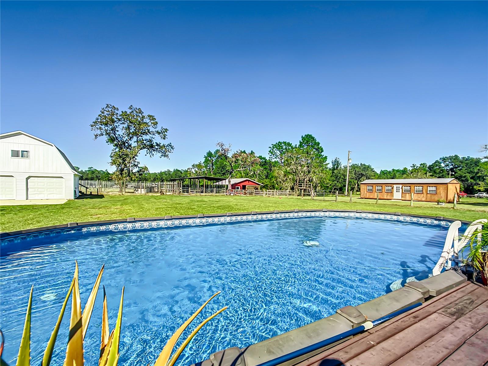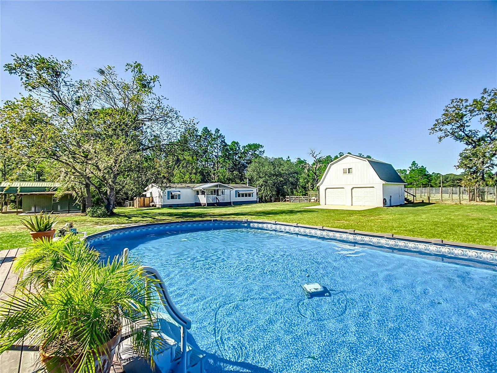 Discover your dream lifestyle with this incredible 7.63 ACRES WITH TWO HOMES, a 21X43 SPARKLING POOL with ozone system and pool cleaner; surrounding 29X29 raised wooden deck, 12X12 Pergola, summer kitchen, and relaxing whirlpool spa. Detached, custom, two story, double car garage with water/electric provides room for vehicles, storage, boats or hobbies. For the horse lover - there is a custom CONCRETE THREE STALL BARN with tack/feed room, grooming area, wash rack, electric and water, 12X12 stalls, MAIN HOME is a 2007 custom-built home featuring 3 bedrooms, 2.5 baths, 2345 SF, office with a separate entrance and hidden murphy-bed, two primary suites, HUGE tiled entertainment/great room designed for large gatherings, other thoughtful amenities include a scenic screened lanai, swimming pool, spa, pergola, outdoor summer kitchen and small zip-line for play! The kitchen has double GE convection ovens, walk-in pantry, Bosch dishwasher, Refrigerator, bar with barstools, and the view from the kitchen window overlooks the farm, paddocks, deck, pool area and pastures. This home has recessed lighting, ceiling fans, and a combination of wood floors, ceramic tile and a beautiful brick feature wall in the living room/entry. THE ROOF AND A/C ARE NEW - REPLACED IN 2024! Incredibly peaceful and comfortable large front porch overlooks the front pasture, electric gate entrance/winding driveway and neighboring farms across the way. SECOND HOME - For the large family or for the farm hands, there is a 2004 double-wide manufactured home for diversified living or rental potential. This VERY large 3 bedroom, 2 bath, plus bonus rooms has 1858 SF, a wood burning fireplace, spacious front and back screen porches to enjoy the outdoors and beautiful weather. Beautiful light and bright floor plan with lots of kitchen cabinets! 28X36 POLE BARN with concrete floors currently has 8 dog kennels- 6 kennels are 10X10 and 2 kennels are 5X5 with six ft high kennel wire. There are also six turf kennel runs 20ft X100 ft with seven ft tall non-climb wire. Kennels and runs can be removed by the owner if the new owner does not desire the kennels. PUPPY PALACE - There is a professionally designed - three-year-old (12X40) wooden, pre-engineered building that currently houses 6 large 5X5 wire dog kennels. The building is insulated and has water, electric, rubber mats, stainless steel sink/counter, and ceiling fans. The perfect set up for show dogs, breeding, or can easily be removed if the new owner prefers other hobbies or needs extra storage or a workshop. HORSE ENTHUSIASTS - There is a 50 ft (appx) wooden/three-board, lighted round pen for working your horses. Three pastures for horses/cattle with non-climb wire and water available. Property is cleared and in pasture. Relish in serene country views while maintaining easy access to Dunnellon’s shopping and vibrant river activities, making this a perfect blend of rural tranquility and convenience! A1/Agricultural zoning allows for so many uses with this property. Morriston is the official address - as SE 80th Street is the dividing line between Marion and Levy County. Easy drive to Dunnellon, Ocala, Tampa airport, and the World Equestrian Center. Make an appointment to see this INCREDIBLE OPPORTUNITY today!