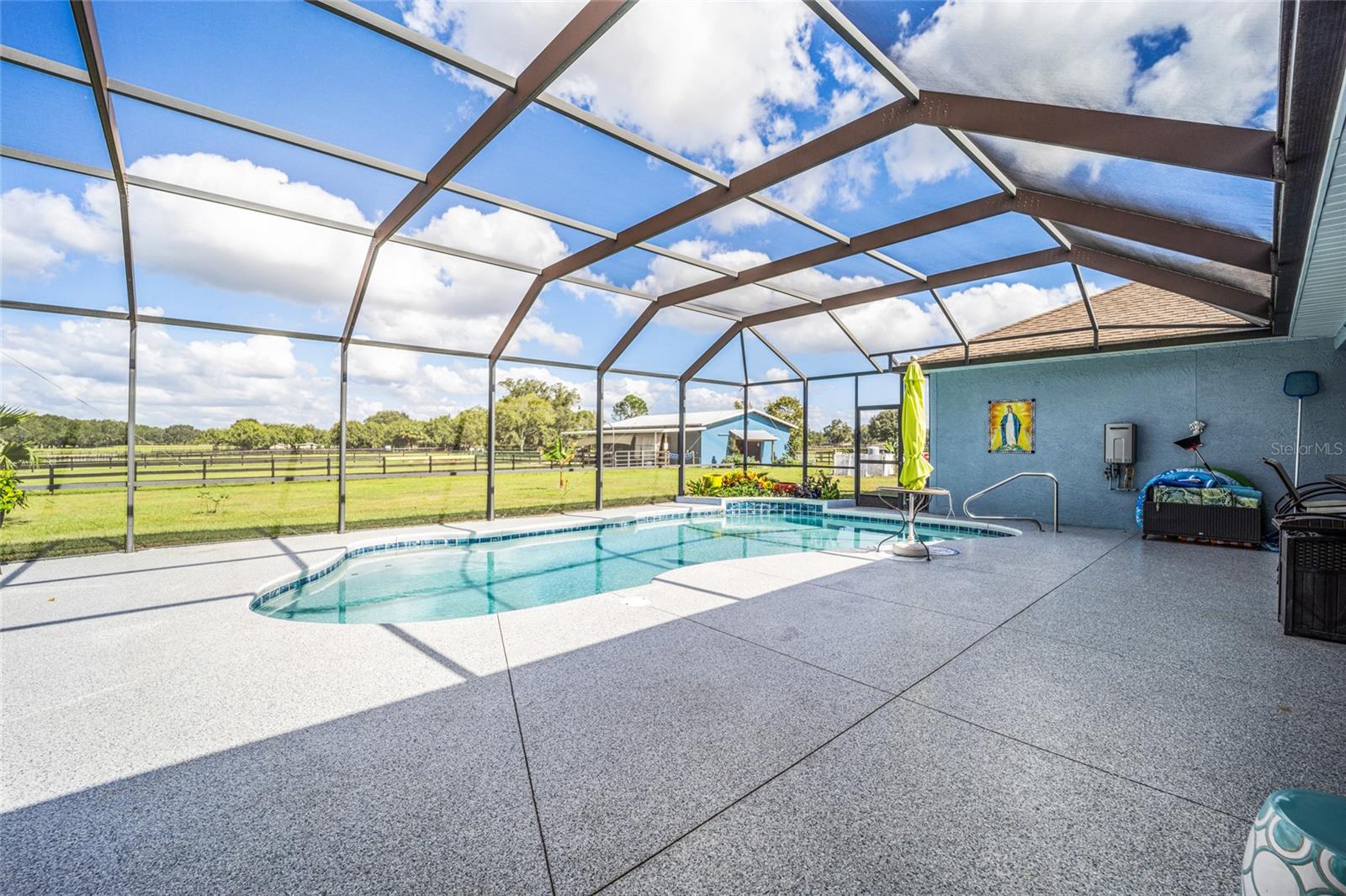 Welcome to your dream equestrian estate, nestled on 10 beautiful acres just 15 minutes from the World Equestrian Center (WEC). This stunning property features six meticulously maintained pastures, perfect for your horses, along with a brand new barn designed for both comfort and convenience. The home itself offers an inviting, open floor plan with a remodeled kitchen that boasts modern upgrades, sleek countertops, and ample cabinetry. Luxury vinyl plank flooring flows throughout, creating a cohesive, stylish look while offering durability. Step outside to your private oasis, where a heated and screened-in pool provides year-round enjoyment and relaxation. This property truly combines the best of country living with luxurious amenities, all in a prime location close to world-class equestrian facilities.