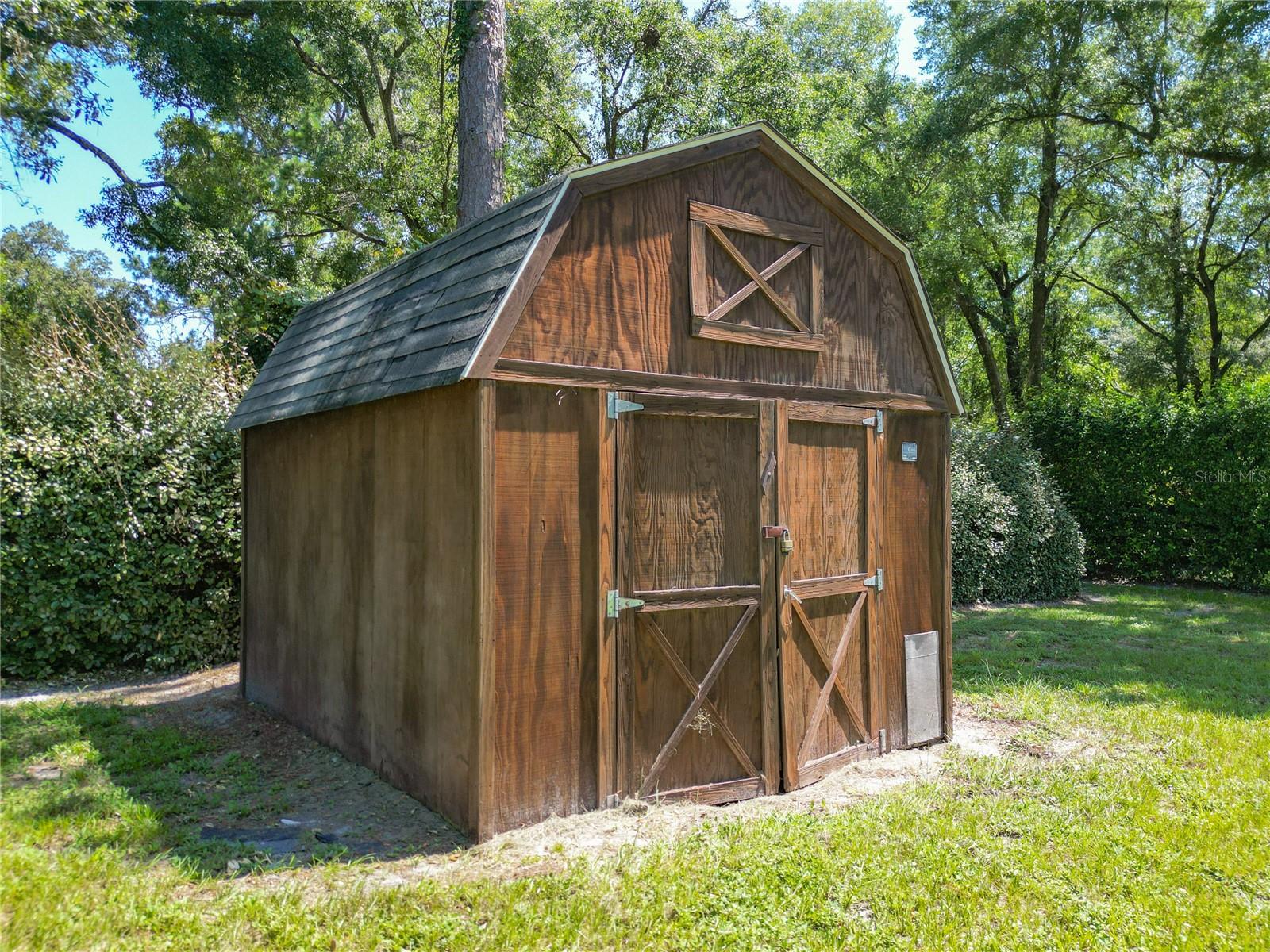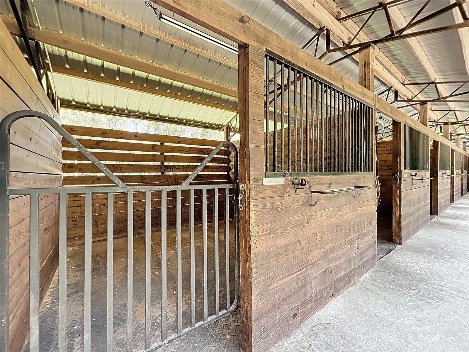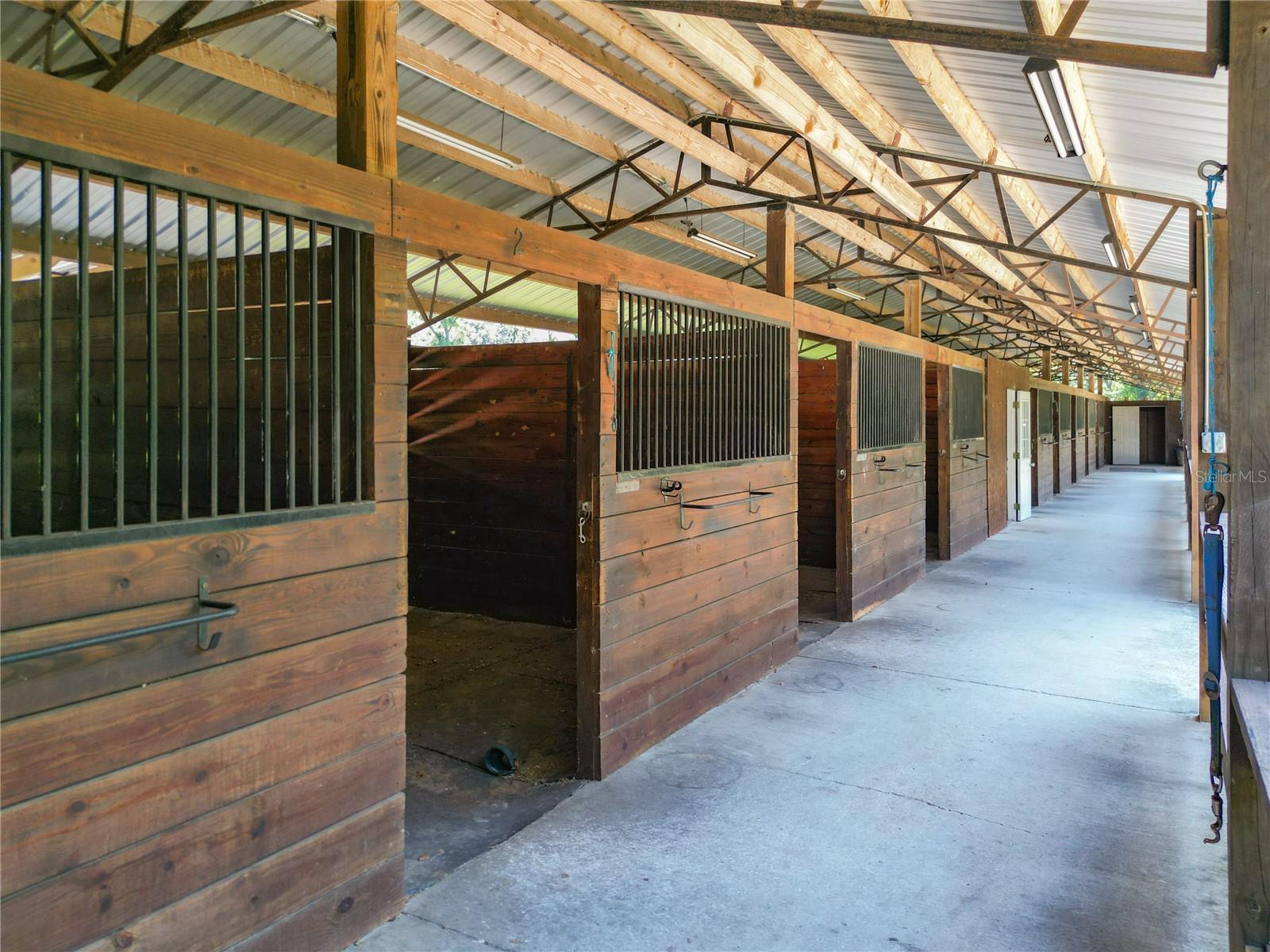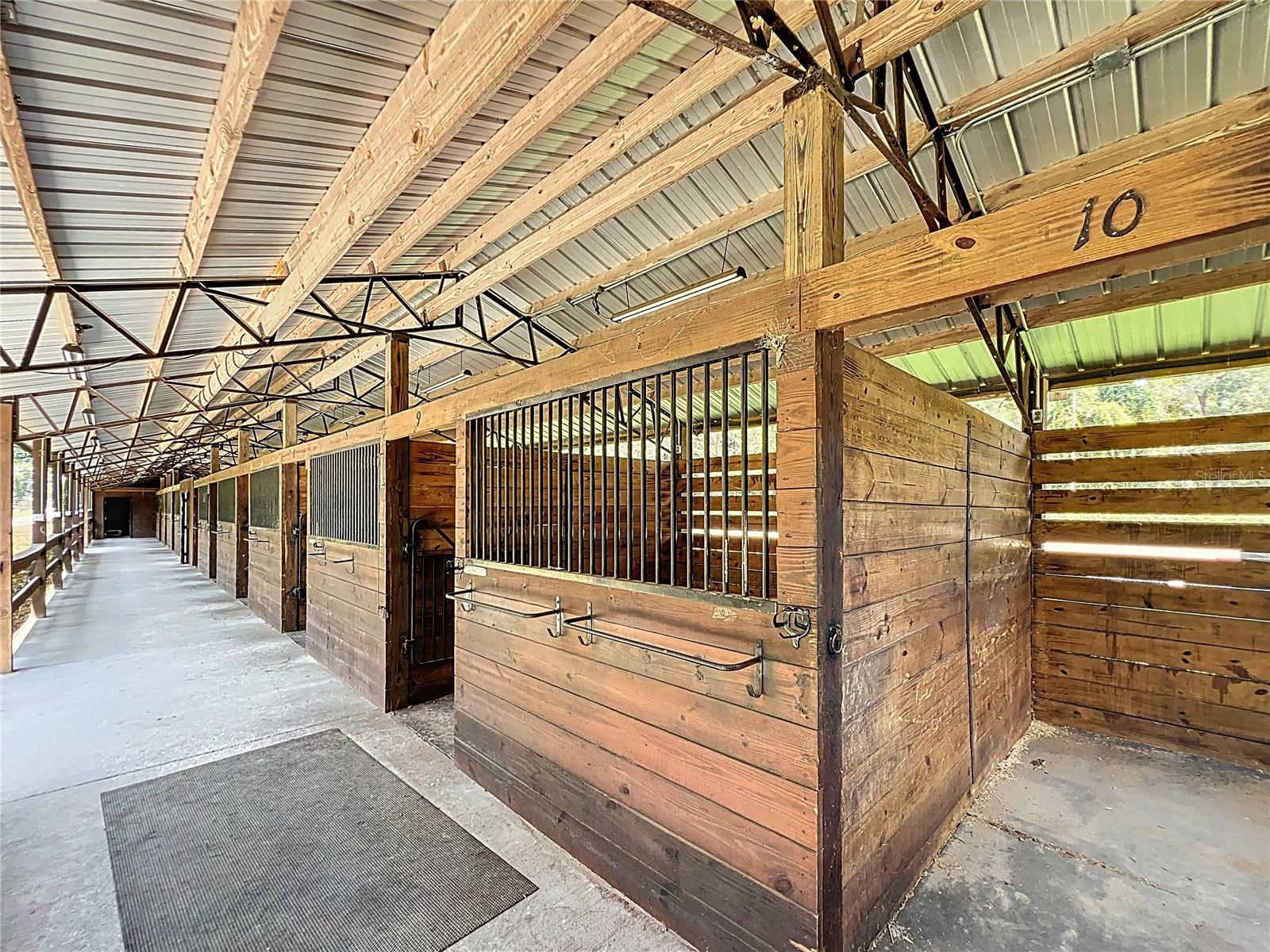 With huge income potential and a convenient location just 0.1 miles from HITS and a short drive from the World Equestrian Center, this beautifully maintained mini farm is purpose-built for equestrians looking to get the most out of Ocala’s Horse Country. Fenced and gated, the property features 3 acres that has been designed for ease of use by and for equestrians, all gently shaded by mature oaks. The 10-stall shedrow-style barn is thoughtfully outfitted with spacious feed and tack rooms, a covered wash rack, and a full bathroom and utility station complete with a refrigerator, microwave, and washer. Each stall is paired with its own paddock, while two covered grooming stalls and a tack room-adjacent lounge area provide added convenience and comfort for both horses and riders. A 100' x 175' arena is outfitted with clay fiber footing, providing plenty of space for training year-round. Those looking to accommodate long-term or seasonal renters will appreciate the four 50-amp RV hookups, each equipped with water, electric, and septic connections. A 24' x 16' equipment shed adds secure storage options for farm tools, large equipment, or tenant use. At the heart of the property sits a recently renovated 3-bedroom, 2-bathroom cottage offering approximately 1,080 square feet of light-filled living space. The open-concept great room flows effortlessly from the living area to the modern kitchen with stainless steel appliances, a breakfast bar, and a pantry. A convenient laundry area with a stacked washer and dryer sits just off the kitchen for everyday ease. The primary suite boasts a walk-in closet and a private en-suite bathroom with glass-door shower and generous counter space. For moments of rest and relaxation, a screen-enclosed patio with ceiling fans overlooks one of the nearby paddocks—perfect for quiet evenings after a full day in the barn. With a new roof installed in late 2020, this property offers peace of mind and immediate functionality, ready for horses, riders, and the season ahead!
