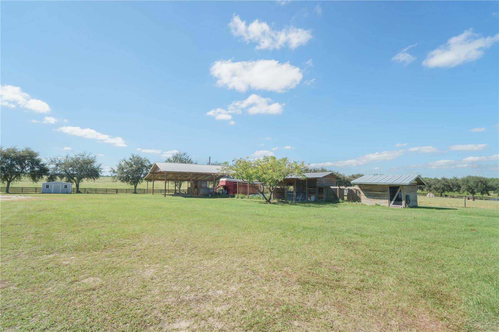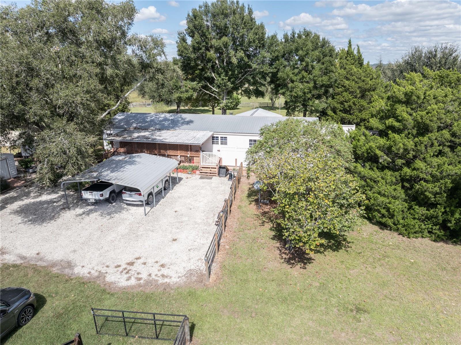 Escape to peace and serenity on this breathtaking 43.8-acre farm, tucked away at the end of a private half mile driveway lined with majestic live oaks. Located just 30 minutes from The World Equestrian Center. This property offers the perfect blend of privacy, functionality, and natural beauty—an ideal setting to live your best life surrounded by open pastures and endless skies. The spacious 4-bedroom, 2-bath home features an inviting open floor plan designed for comfort and convenience. The large kitchen includes an island, extensive counter and cabinet space, and flows into a bright dining area—perfect for family gatherings. An additional dining or bonus area provides flexible space for a home office, den, or hobby room. The huge primary suite offers a walk-in closet and an ensuite bath with a relaxing garden tub and separate shower. Three guest bedrooms—two with walk-in closets—ensure plenty of room for everyone. Outdoor living shines here with a covered front porch and an expansive back deck and porch that span the entire length of the home, ideal for taking in the tranquil views of the surrounding countryside. The entire property is fenced, with multiple functional structures and amenities for both hobby and working farms. There is a carport, three storage sheds, and a pole barn for equipment or feed. The horse barn features a large stall area suitable for several horses, along with three paddocks, each with water. There’s also a cow pen, a chicken coop, and a 35x38 enclosed barn/workshop equipped with electric and A/C—perfect for projects or storage. Whether you’re an equestrian enthusiast, hobby farmer, or simply seeking a private retreat, this property provides everything needed for a relaxed and purposeful lifestyle. Enjoy the peace, beauty, and freedom of country living at its finest.