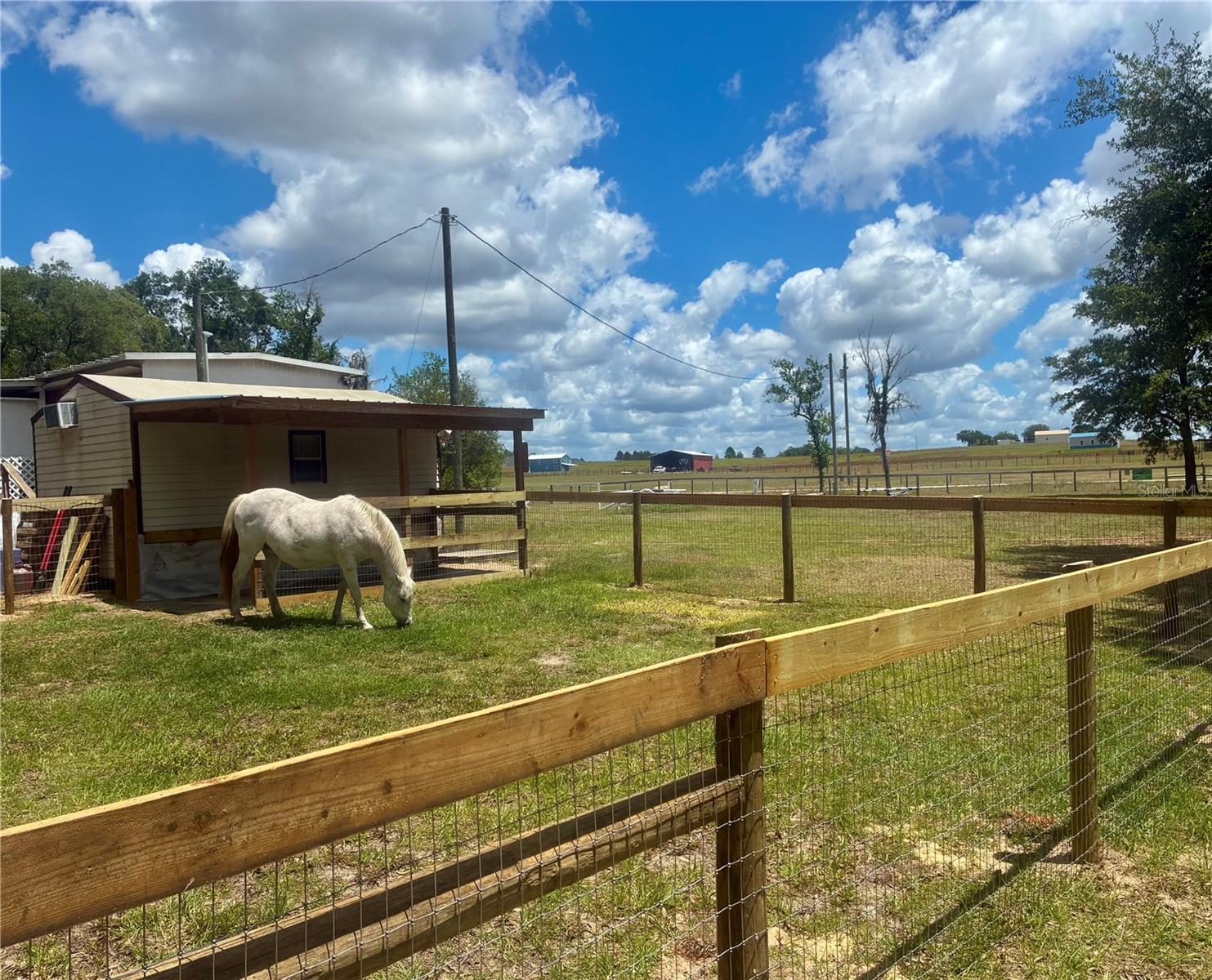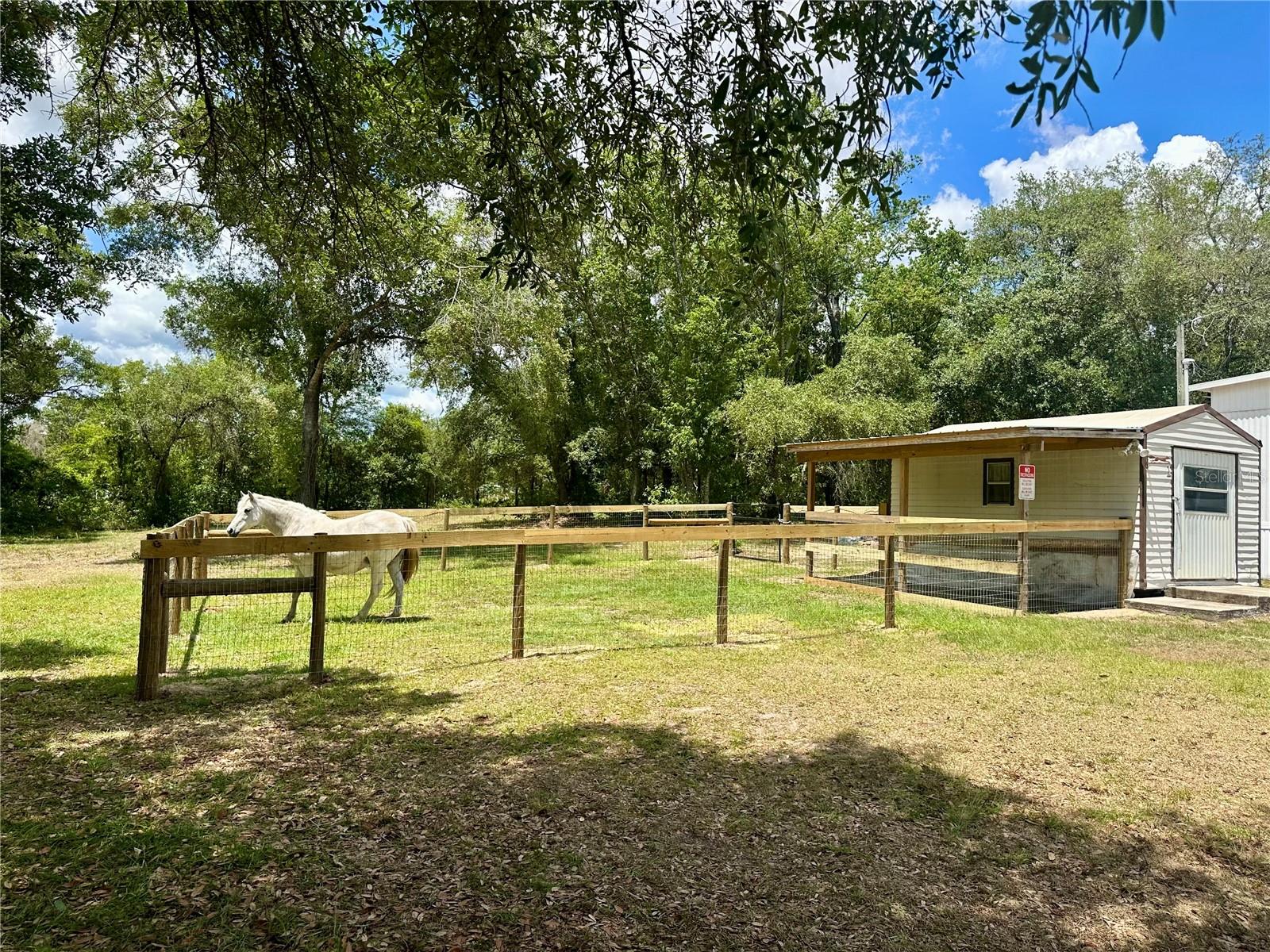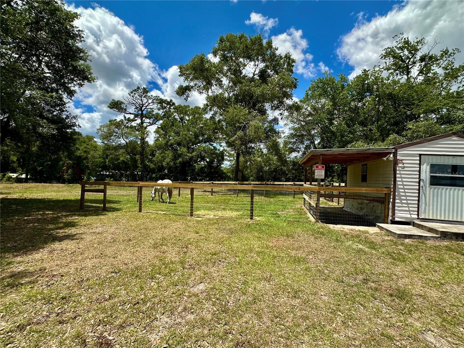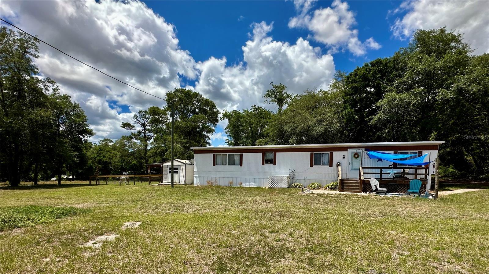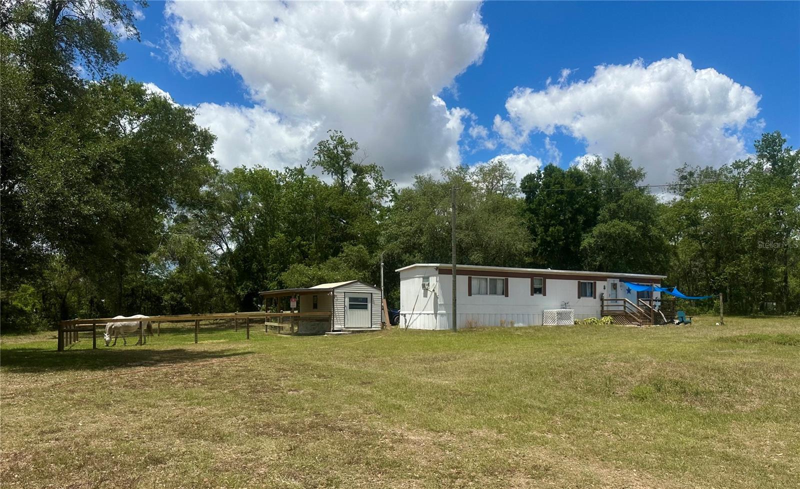 Enjoy peaceful country living just outside the city with this versatile mini farm set on 2.5 fenced, high & dry acres. With No HOA or deed restrictions, this offering allows true freedom of use and ownership. The land includes a solid 2 bedroom, 2 bath mobile home with approximately 840 Sq.Ft. of living space, making it well suited as a primary residence, weekend retreat, or income producing rental. For equestrian use, the acreage is thoughtfully arranged with a large paddock, run in shed, and a flat grassy riding area, offering practical space for horses. In addition, the land includes a chicken coop, fire pit, and a small pond, creating a peaceful outdoor setting for relaxation and enjoyment. The shed on the property equipped with water provides convenient storage for equipment, tack, or tools. Located just 5.7 miles from Goethe State Forest, owners enjoy easy access to miles of scenic horse and ATV trails. The location is approximately 18 miles from the World Equestrian Center and 15 miles from the HITS Horse Show Grounds, offering excellent proximity to major equestrian venues. Beyond its equestrian appeal, the area provides outstanding recreational opportunities, with Rainbow Springs and Devil’s Den just 15 miles away for swimming, kayaking, and outdoor adventure. The Gulf Coast is approximately 23 miles away, while the Atlantic Coast is within 105 miles, making day trips to the beach easily accessible. As an added bonus, this mini farm is currently income producing, with one side of the home operating as an Airbnb, a revenue producing farm stand, and an established Harvest Hosts location for RV renters, offering multiple income streams in a highly desirable Central Florida location. Schedule your private showing today!