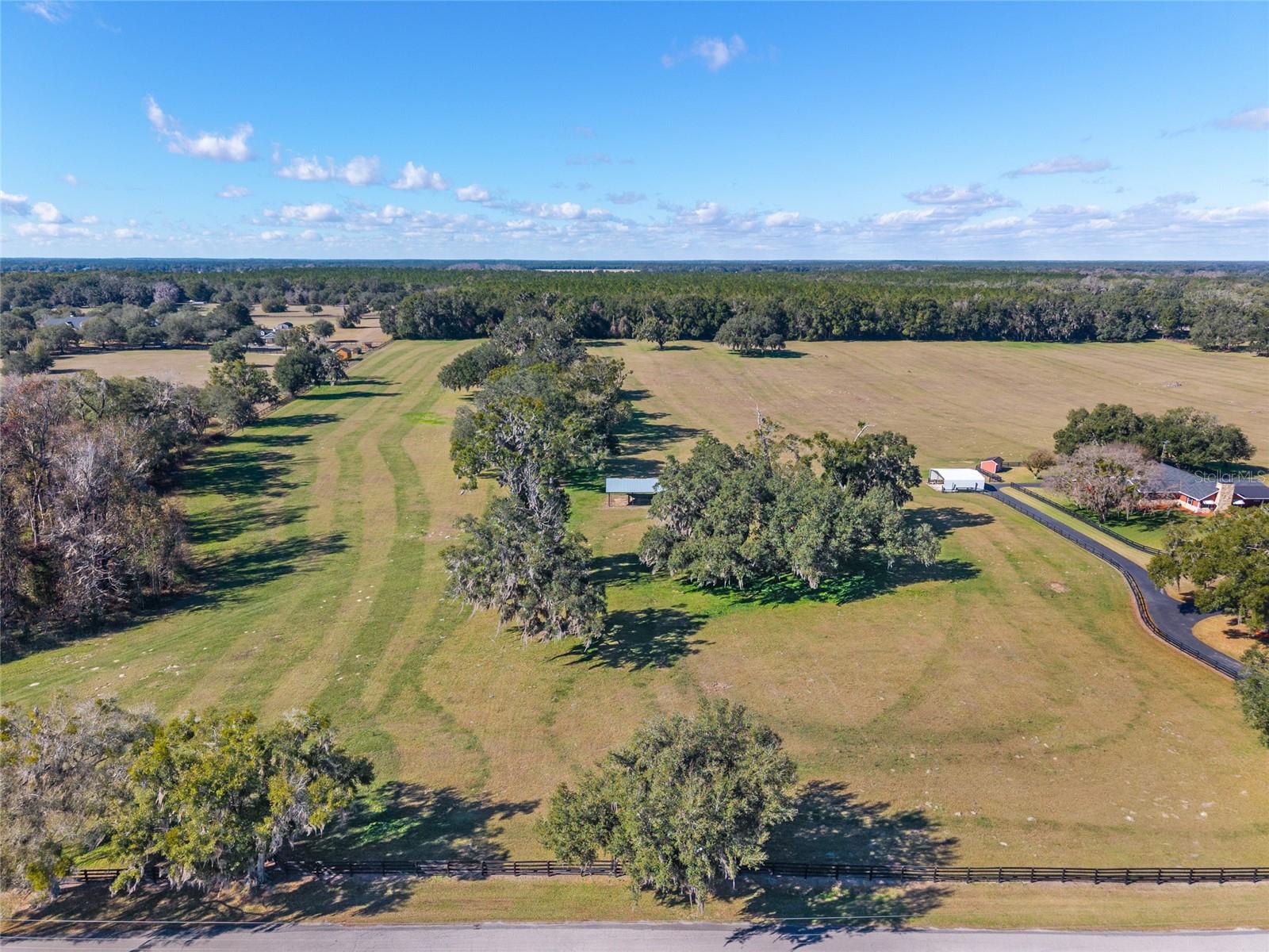 Rare opportunity to own 40 pristine acres in Morriston’s premier equestrian corridor, just minutes from the World Equestrian Center and HITS. This beautifully maintained, fully fenced farm offers lush established pasture and the ideal setting to create your dream equestrian estate, training facility, or private country retreat. The well-kept 3-bedroom, 2-bath home includes a split floor plan, Florida room, front and rear porches overlooking the pastures, and an attached two-car garage with an additional half bath and shower. The home was pressure washed and freshly painted in 2025 and features two water heaters and a full-house generator. Property improvements include a detached garage with power and water (pre-plumbed for a future kitchen and bath), pole barn, carport, storage shed, and additional storage room. Serviced by one well and one septic system (cleaned in 2021). A turnkey farm in a prime location with endless potential, this is a must-see for equestrian buyers, investors, and those seeking space, privacy, and proximity to Ocala’s world-class venues!