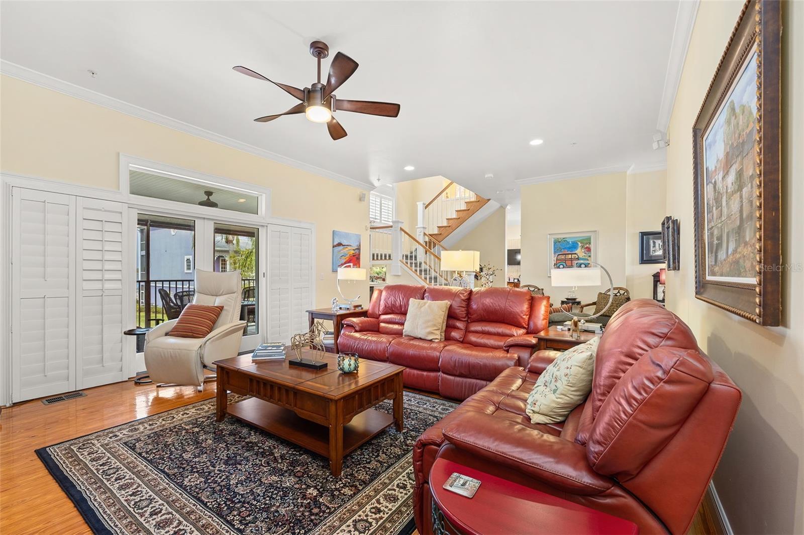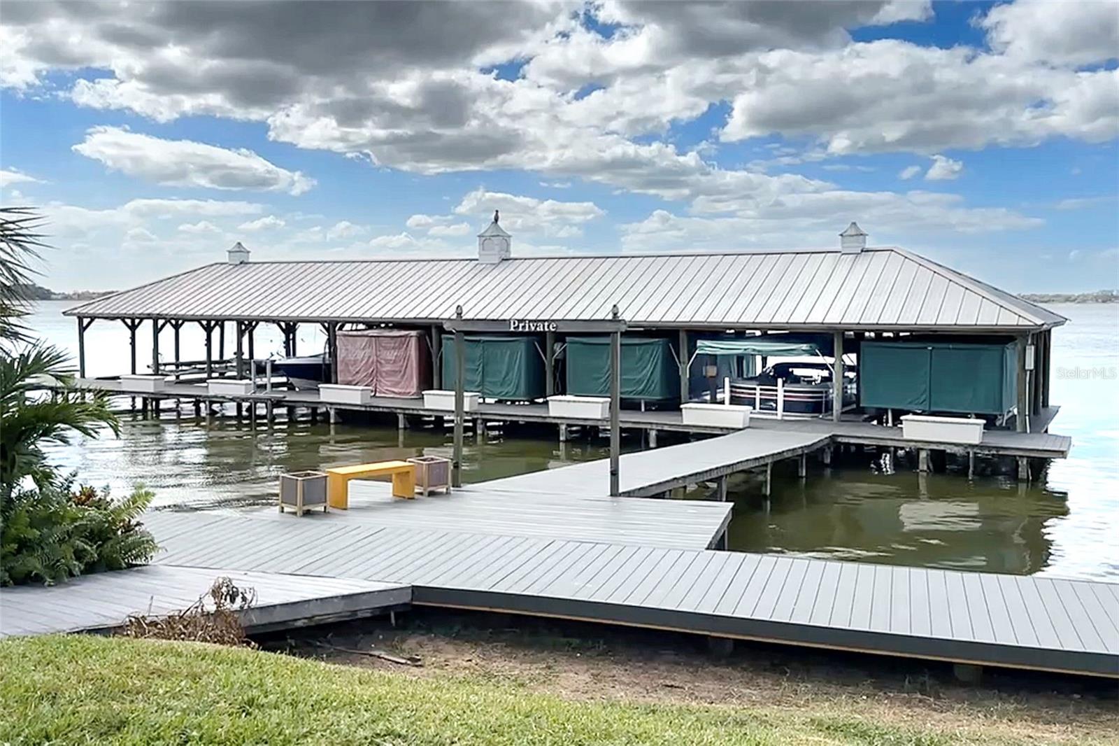 Welcome to luxury living in the heart of downtown Mount Dora Florida. This amazing single family home provides some of the best sunsets on Lake Dora. Bring your boat, this home includes a covered slip with a 5,000 lb electric lift in your private covered slip. Water and electric at your slip! You're only steps from restaurants, shopping, and a weekly farmers market. 3 stories, no problem take the elevator. The ground floor, accessible from the garage and a rear exterior entry, is set up as an ADA compatible in-law suite. The 3rd floor is set up as an office and huge master suite, featuring a double vanity, double closets, luxurious shower and separate tub. The second floor is street level. It includes the formal dining room, the kitchen, breakfast nook, the living room, a bedroom and bathroom, French doors leading out to the balconies, the fireplace, built in wine fridge and bar. The primary balcony and the breakfast balcony offer spectacular views of sky, palm trees and water. Both are screened in and have natural gas available for a grill, hot tub or firepit table. The home features include: Pine wood floors, Gas fireplace, Central vacuum, Oversized 2 car garage, Built ins throughout the home, An abundance of natural light, Lots of closets and storage areas, 2 laundries, security system, and more.