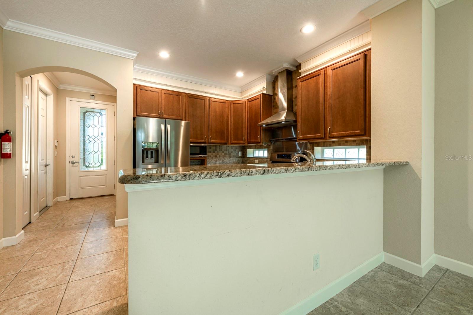 Beautifully designed home situated in sought after Lakes of Mt Dora a 55+ gated community. The entire house has beautiful tile flooring and crown moldings. Immediately upon entering is the great room consisting of the living room/kitchen concept. The kitchen is well equipped with stainless steel appliances – gas range with double oven - granite countertops and a breakfast bar. Designer cabinets have top and bottom lighting. Laundry room has a convenient deep sink and Electro Lux HE front load w/d each with their own pedestal. Original floor plan modifications provide an additional two feet in both the master bedroom and utility room! Besides the huge main bedroom suite, two additional rooms with full bath provide ample room for kids, company or an office. Oversized 21x24 garage also has a 800cf floored & insulated attic space. 440 SqFt screen lanai is the perfect entertainment spot with stainless steel shelving, marble counter, prep sink, stainless steel propane grill and commercial beverage cooler. This community has many amenities for your use, including a 18,000 sq ft club house that offers a large library room, billiard room, arts/craft room, card/game room, and fitness center along with the social hall where many events and activities are held… Plenty of clubs for those who like to be social. Home is under annual termite bond, has in-wall bug system and tankless hot water heater.