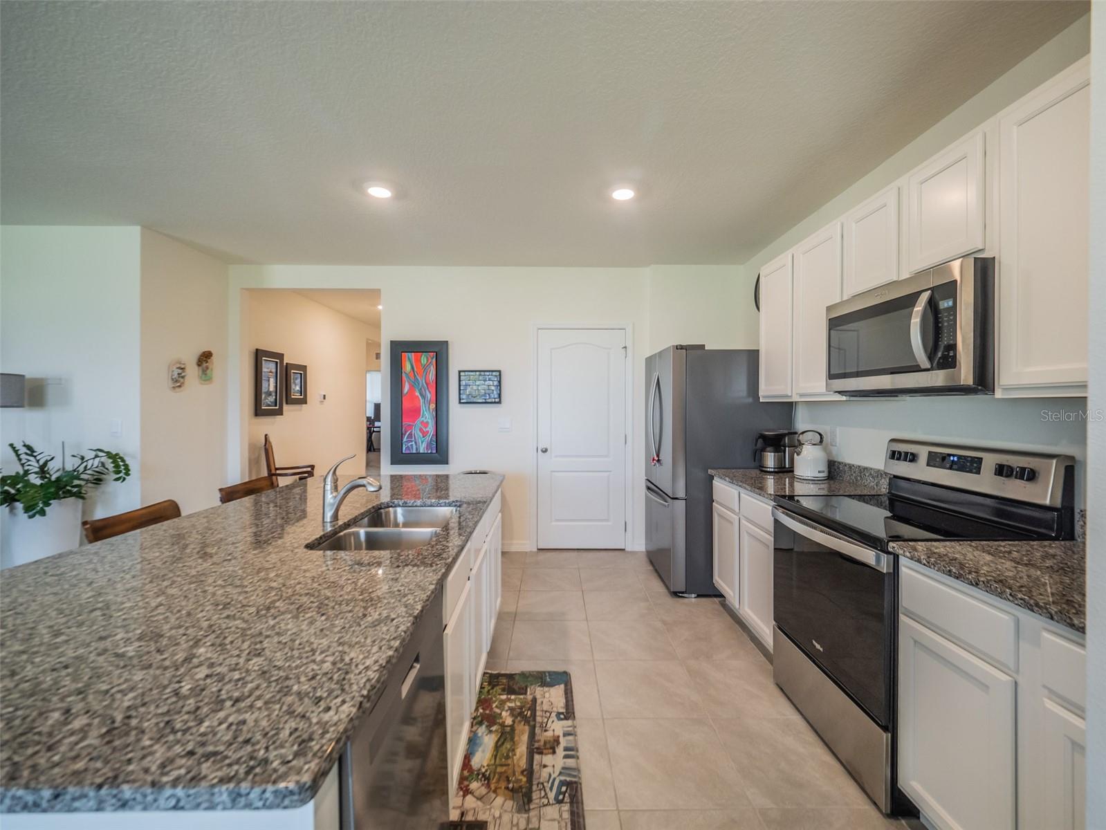 *PRICE REDUCED & Seller's willing to offer $5,000.00 towards Buyer's closing costs.* This beautiful home offers peaceful views of a community pond and walking trail right behind the backyard, with no close back neighbors. Located just minutes from Historic Downtown Mt. Dora, you'll enjoy easy access to charming shops and delightful restaurants. The spacious open floor plan is perfect for modern living, featuring both a welcoming front porch and a back porch for outdoor relaxation. Inside, the home boasts elegant details, including granite countertops, 18" ceramic tile, 36" white cabinetry, stainless steel appliances, and stylish ceiling lighting. This home is equipped with Ring video doorbell Pro 2 and Blink cameras, offering convenience and security with driveway photocell lamp and porch light switch, front door keyless lock, thermostat, all included. With a 15 SEER AC system and dual pane low-E windows, this property is as energy-efficient as it is beautiful. The community also features a refreshing pool, a playground area, and an outdoor exercise area, perfect for staying active and enjoying family fun.