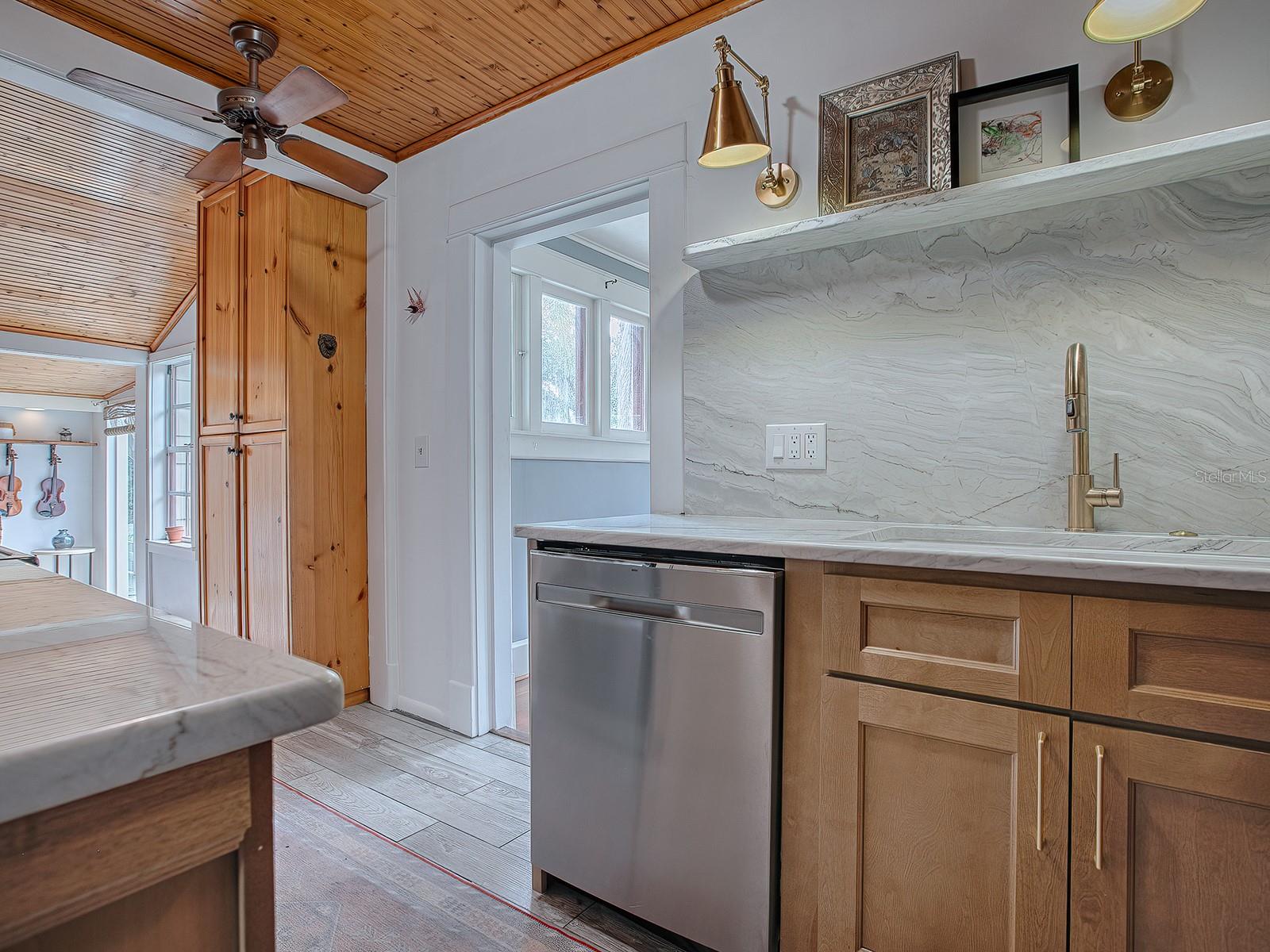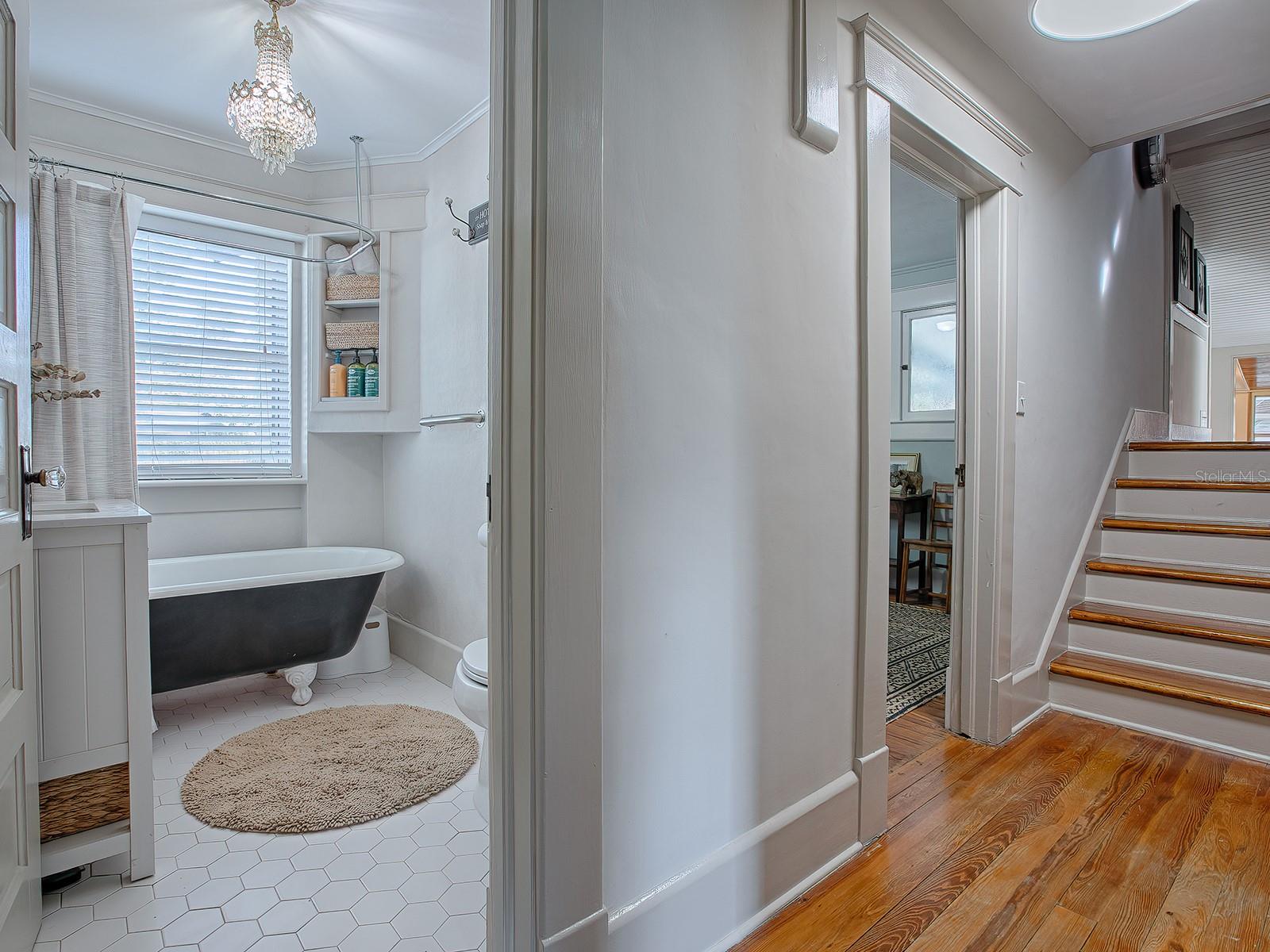 Currently a SUCCESSFUL AirBnB...your opportunity awaits!! Nestled in the heart of Mount Dora, the Kirby House, a charming, historic home, over 100 years old with a freshly painted exterior captures the timeless beauty and rich heritage of the area. Perfectly located WALKABLE TO DOWNTOWN, this two-story residence offers an inviting blend of historical charm and modern conveniences. Step inside to discover the elegance of original hardwood floors and classic tile, beautifully preserved to highlight the home’s craftsmanship. The fully wood-encased doorways and windows frame each room, filling them with natural light and showcasing the spaciousness and character of a bygone era. The updated kitchen is thoughtfully designed with dolomite countertops, stainless steel appliances, dual entry points, and seamless access to the dining room, creating a perfect setting for entertaining and everyday living. Each floor offers a meticulously remodeled bathroom, both exuding charm and style. The first-floor bath features a vintage-inspired clawfoot shower tub combo, while the second-floor bath includes a generously sized, modern shower. The primary bedroom, located upstairs, is a private retreat with its own access to a covered patio. The flexible floor plan allows for a primary bedroom setup on either floor, accommodating various lifestyle needs. This home is rich in functional spaces, including an interior laundry room with ample storage, and an additional area adjacent to the kitchen ideal for a cozy breakfast nook, reading corner, or serene yoga space. Outdoor living is a delight, with an oversized screened pool patio that overlooks a lush, private backyard. A detached garage and a separate detached outbuilding - with some renovation would be perfect for an office, art studio, or workshop providing excellent additional space. There’s also an oversized, covered two-car carport for ample parking, as well as an access gate in the backyard for boat or motorhome parking. The roof, updated in 2018, provides peace of mind. A new HVAC and smart thermostat have been installed this year as well. This historic gem offers an extraordinary lifestyle with modern updates, all while preserving the timeless charm that defines Mount Dora.