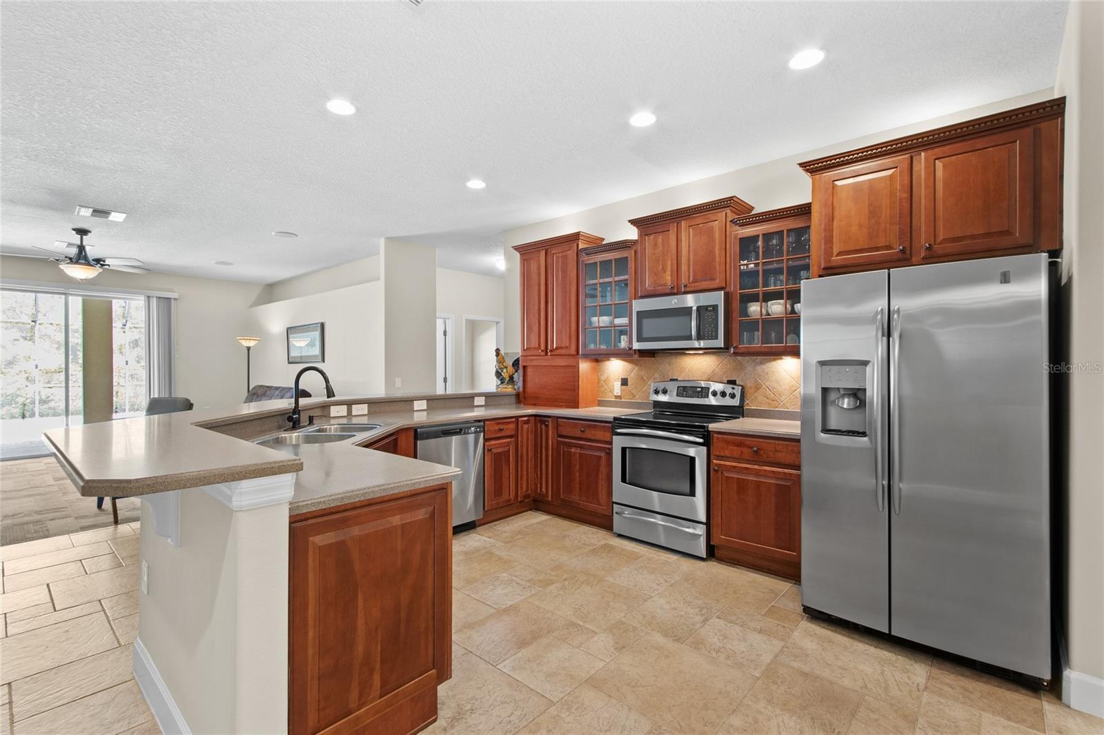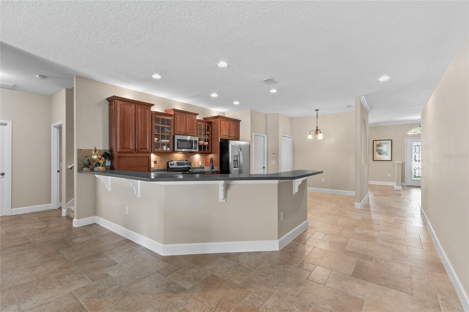 Serenity Meets Space in Stoneybrook Hills! Welcome to this beautifully maintained 5-bedroom, 3-bath home offering over 3,000 square feet of living space and ultimate backyard privacy—no rear neighbors, just tranquil views of a picturesque conservation area. Nestled on a quiet street in the gated community of Stoneybrook Hills, this spacious home boasts an open split floor plan with soaring ceilings, a gourmet kitchen featuring stone counters and a breakfast bar, and a luxurious primary suite with dual vanities, a garden tub, and a separate shower. Step outside to your private screened-in pool area and covered lanai—perfect for relaxing while enjoying the peaceful nature views. With a newer roof (2022), spacious 2-car garage, and access to resort-style amenities including a clubhouse, pool, and fitness center, this home combines comfort, beauty, and location. Conveniently located near downtown Mount Dora, shops, dining, and major highways. Zoned for top-rated schools and ready to welcome you home. Schedule your showing today!