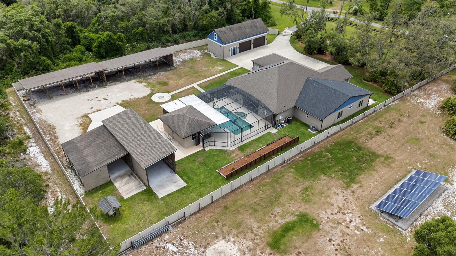 Your Dream Retreat Awaits in Mount Dora! Prepare to be captivated by this stunning 2017-built estate now available UNDER APPRAISED VALUE!!!! This isn't just a home; it's a private sanctuary designed for both ultimate relaxation and endless entertainment. Located on over two acres of lush, fully fenced land, your private oasis begins the moment you pass through the private electronic gate. The heart of the home immediately welcomes you with a breathtaking view of the sparkling, heated saltwater pool and spa. Inside, the spacious family room flows seamlessly into a luxurious kitchen, where you'll find top-of-the-line stainless steel appliances, gorgeous granite counters, and a massive island perfect for casual gatherings. This home offers incredible flexibility with four bedrooms, three-and-a-half baths, and a versatile multi-use wing. Imagine your new home office, a dedicated craft space, or a home gym—the possibilities are endless! Need more space? This wing could easily be converted into three additional bedrooms, bringing the total to a remarkable six. The primary suite is a peaceful haven, featuring elegant farm doors leading to the luxury ensuite bath and a walk-in closet so magnificent it's a room in itself. True magic extends beyond the main house. A massive 1,320 sq ft detached workshop, with AC, offers a loft bedroom and a full bathroom, presenting endless opportunities for hobbies, guests, or a home business. Car collectors will delight in the garage space for up to four vehicles in the workshop AND 4 car garage attached to the main home, YES, 8 CAR Potential. The property also includes covered RV and boat parking with a 50-AMP hookup and eight pole barns, all powered by a Generac system with two 250-gallon propane tanks. Adding exceptional value, the solar panels on the property are completely paid off, giving you incredible energy savings and peace of mind. Indulge in a life of ease and sophistication just minutes from Mount Dora's charming downtown, vibrant cultural scene, excellent schools, and top-rated hospitals. This is more than a home—it's a lifestyle you deserve. Don't miss this opportunity to own your private paradise!