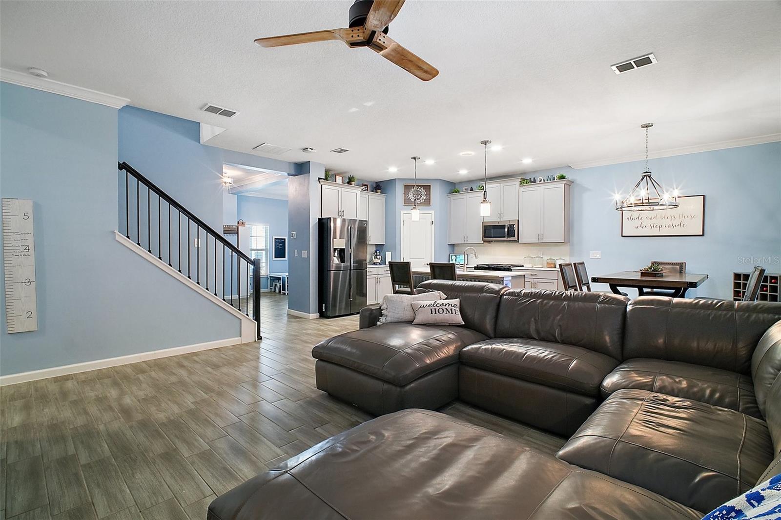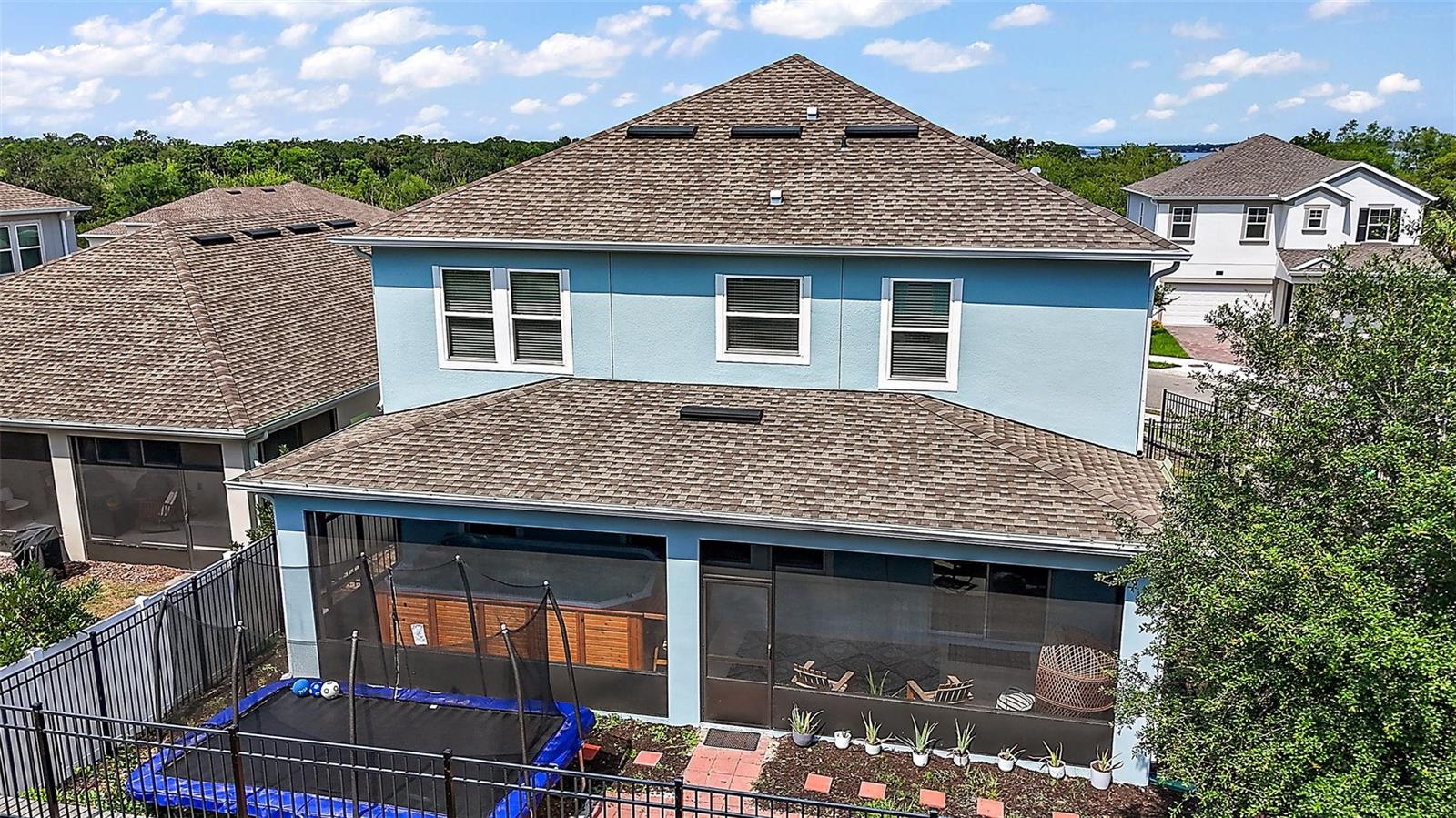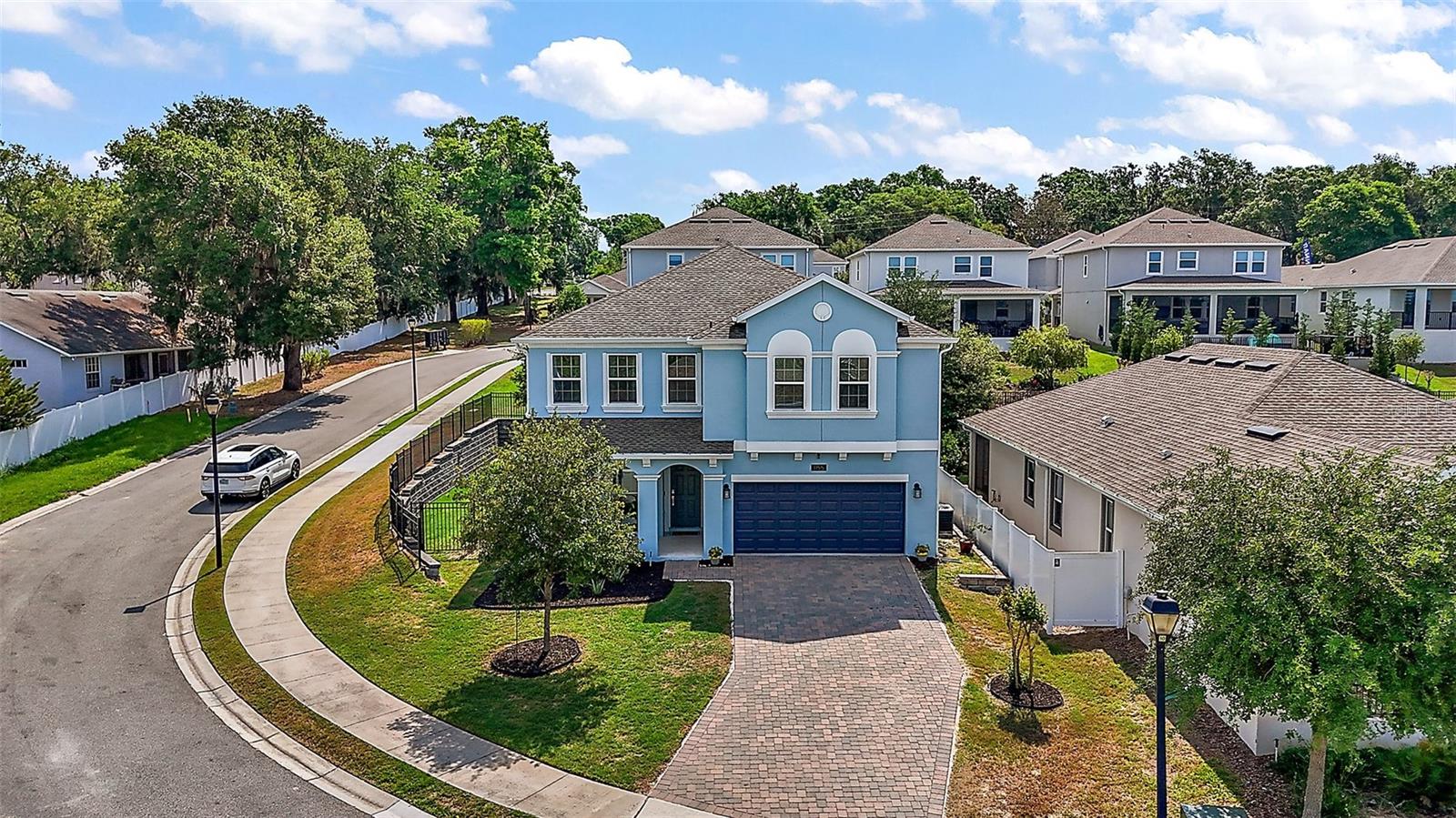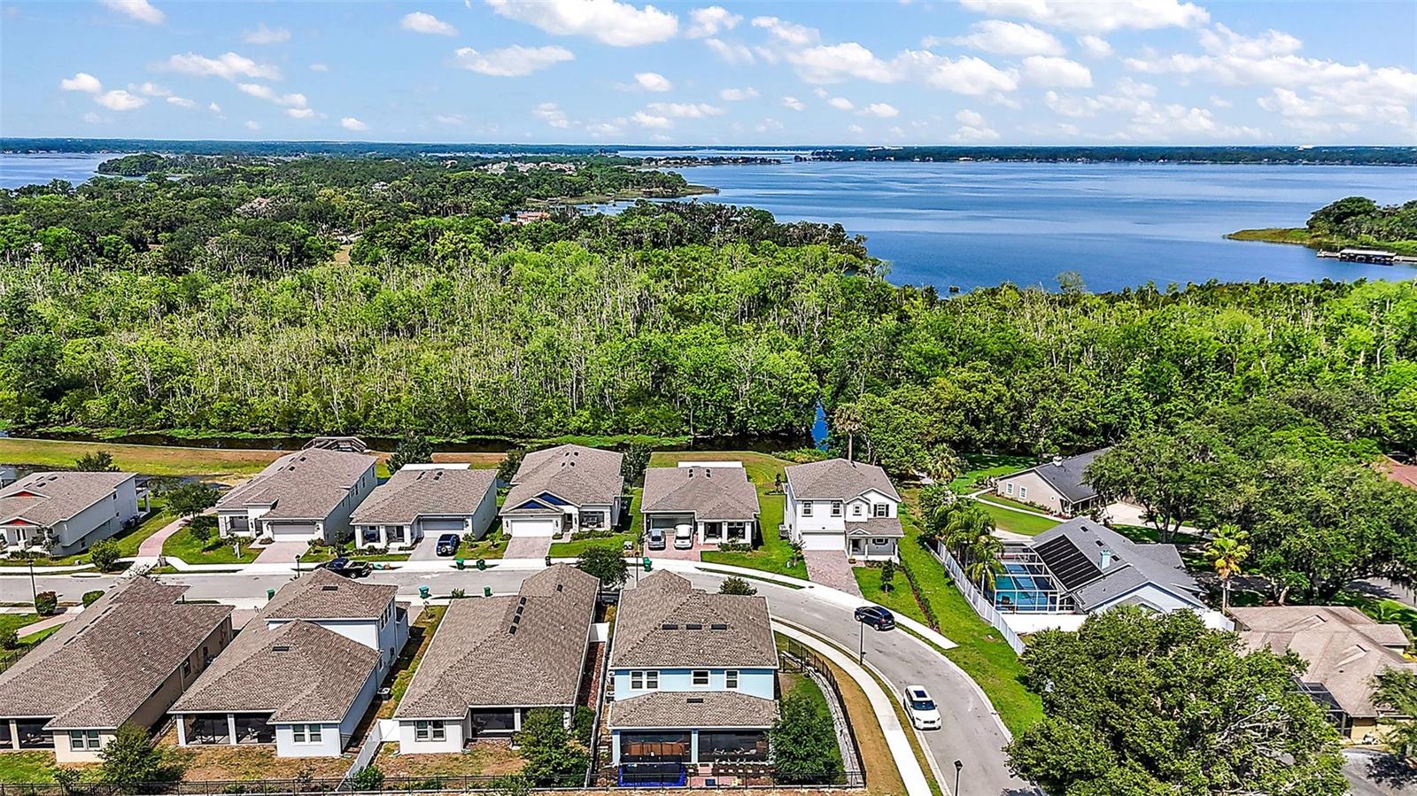 NEW PRICE + MOTIVATED SELLER The sellers are relocating for a job opportunity, which means an incredible chance for you! Welcome to this beautifully appointed two-story home nestled in the exclusive, gated community of Dora Parc in Mount Dora, Florida. This residence offers the perfect blend of modern comfort and lakeside living with private canal access to Lake Dora. The freshly painted exterior invites you to the covered front porch and entry foyer where wood look plank tile flooring, crown molding and volume ceilings flow throughout the main level. The Open-concept design features a spacious living room, dining area, and a well-appointed kitchen with black stainless-steel appliances, gas range, tile backsplash, center island with breakfast bar, and closet pantry. The first floor includes a versatile flex room perfect for office/den/library a bedroom, and a full bath. Upstairs, you'll find the spacious primary suite and ensuite bathroom with separate soaking tub and separate shower, double sinks and custom walk-in closet. Additionally, there are three bedrooms, another full bath with double sinks & tub with shower, a family room, and a convenient laundry room with built in cabinets & plumbed for electric or gas dryer. Equipped with Lennar’s Everything’s Included® and smart home package, this home boasts quartz countertops throughout, natural gas tankless hot water heater, 2 car garage with electric car charger and advanced home automation features like Wi-Fi CERTIFIED™ connectivity, keyless door locks, and ring video doorbell & 2 cameras. Relax year-round on the spacious screened-in back porch, overlooking the private fenced backyard on a corner lot. Dora Parc is a serene, gated community offering residents private canal access to Lake Dora, part of the expansive Harris Chain of Lakes. Enjoy sunsets, boating, fishing, and water sports right from your neighborhood. Located less than a mile from historic, golf cart friendly, downtown Mount Dora, you'll have easy access to charming boutiques, award-winning restaurants, parks, boat ramp and cultural events. The community's proximity to major highways ensures a convenient commute to Orlando and surrounding areas. The Swim spa (valued at Approx $22K), trampoline, refrigerator in garage, washer and dryer combo are negotiable. Sellers assistance with Buyers closing costs is negotiable with acceptable offer!!