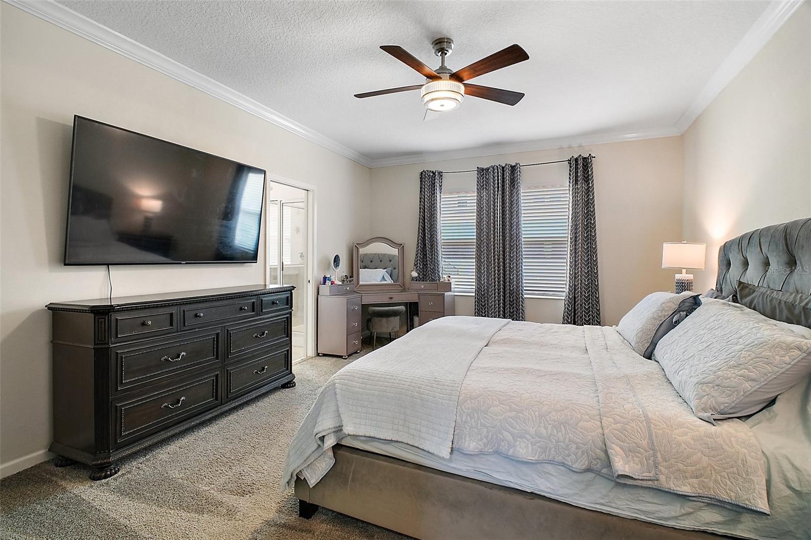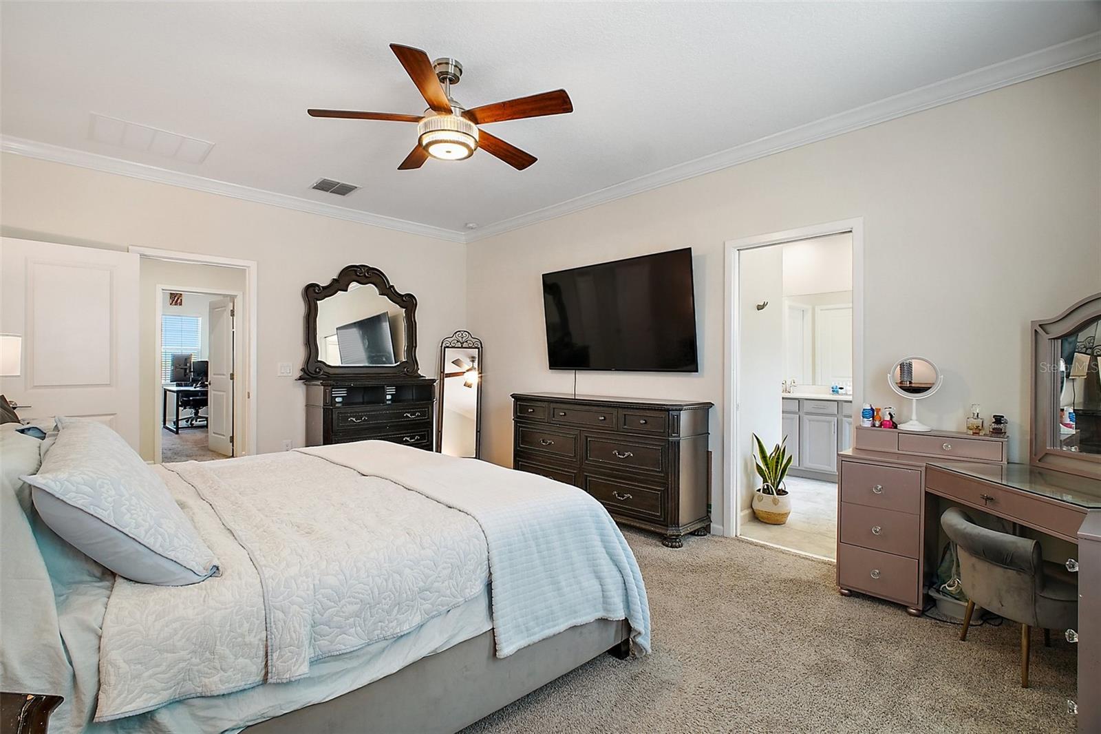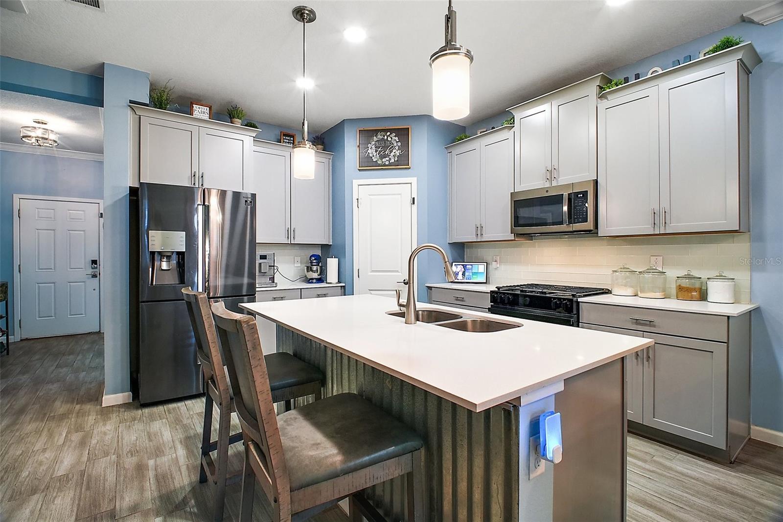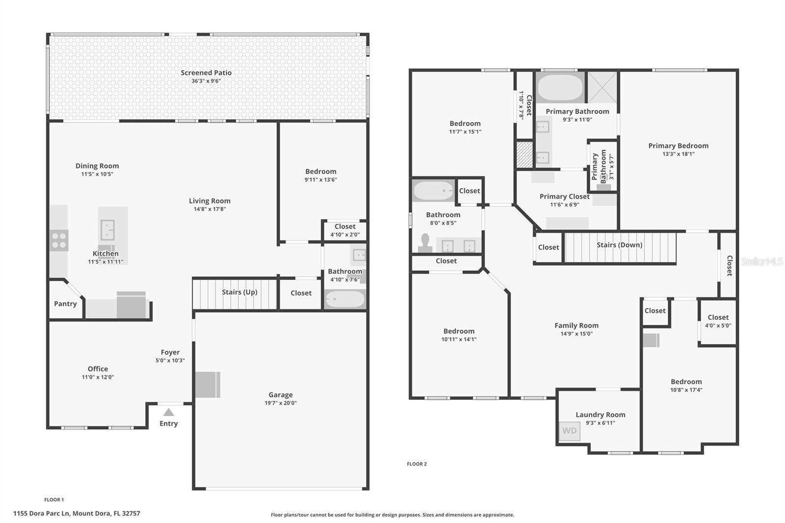 NEW PRICE + MOTIVATED SELLER The sellers are relocating for a job opportunity, which means an incredible chance for you! Welcome to this beautifully appointed two-story home nestled in the exclusive, gated community of Dora Parc in Mount Dora, Florida. This residence offers the perfect blend of modern comfort and lakeside living with private canal access to Lake Dora. The freshly painted exterior invites you to the covered front porch and entry foyer where wood look plank tile flooring, crown molding and volume ceilings flow throughout the main level. The Open-concept design features a spacious living room, dining area, and a well-appointed kitchen with black stainless-steel appliances, gas range, tile backsplash, center island with breakfast bar, and closet pantry. The first floor includes a versatile flex room perfect for office/den/library a bedroom, and a full bath. Upstairs, you'll find the spacious primary suite and ensuite bathroom with separate soaking tub and separate shower, double sinks and custom walk-in closet. Additionally, there are three bedrooms, another full bath with double sinks & tub with shower, a family room, and a convenient laundry room with built in cabinets & plumbed for electric or gas dryer. Equipped with Lennar’s Everything’s Included® and smart home package, this home boasts quartz countertops throughout, natural gas tankless hot water heater, 2 car garage with electric car charger and advanced home automation features like Wi-Fi CERTIFIED™ connectivity, keyless door locks, and ring video doorbell & 2 cameras. Relax year-round on the spacious screened-in back porch, overlooking the private fenced backyard on a corner lot. Dora Parc is a serene, gated community offering residents private canal access to Lake Dora, part of the expansive Harris Chain of Lakes. Enjoy sunsets, boating, fishing, and water sports right from your neighborhood. Located less than a mile from historic, golf cart friendly, downtown Mount Dora, you'll have easy access to charming boutiques, award-winning restaurants, parks, boat ramp and cultural events. The community's proximity to major highways ensures a convenient commute to Orlando and surrounding areas. The Swim spa (valued at Approx $22K), trampoline, refrigerator in garage, washer and dryer combo are negotiable. Sellers assistance with Buyers closing costs is negotiable with acceptable offer!!
