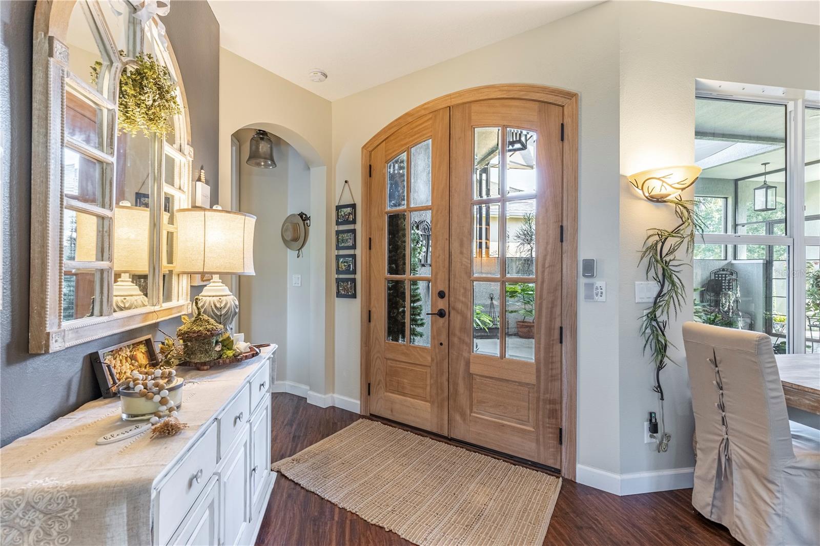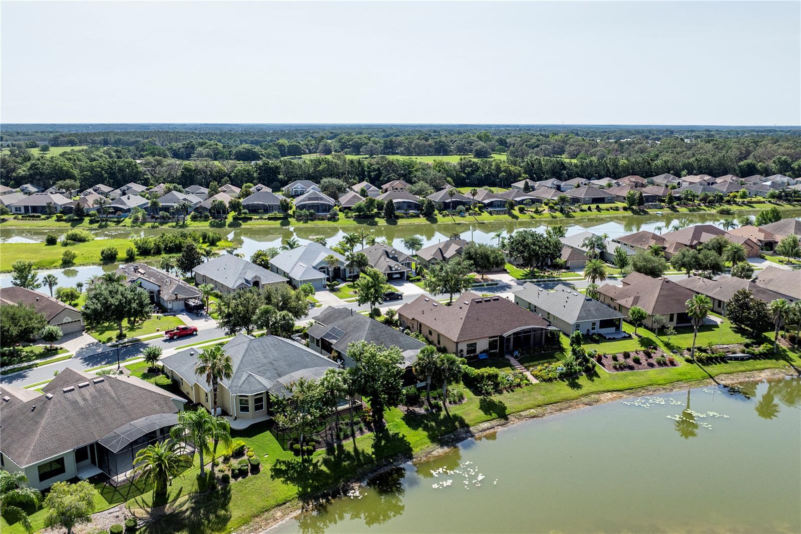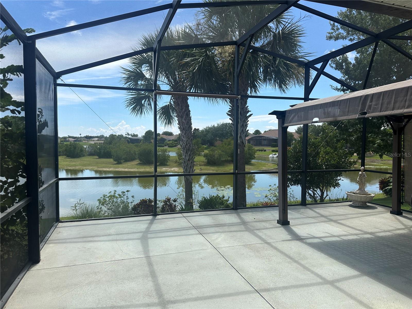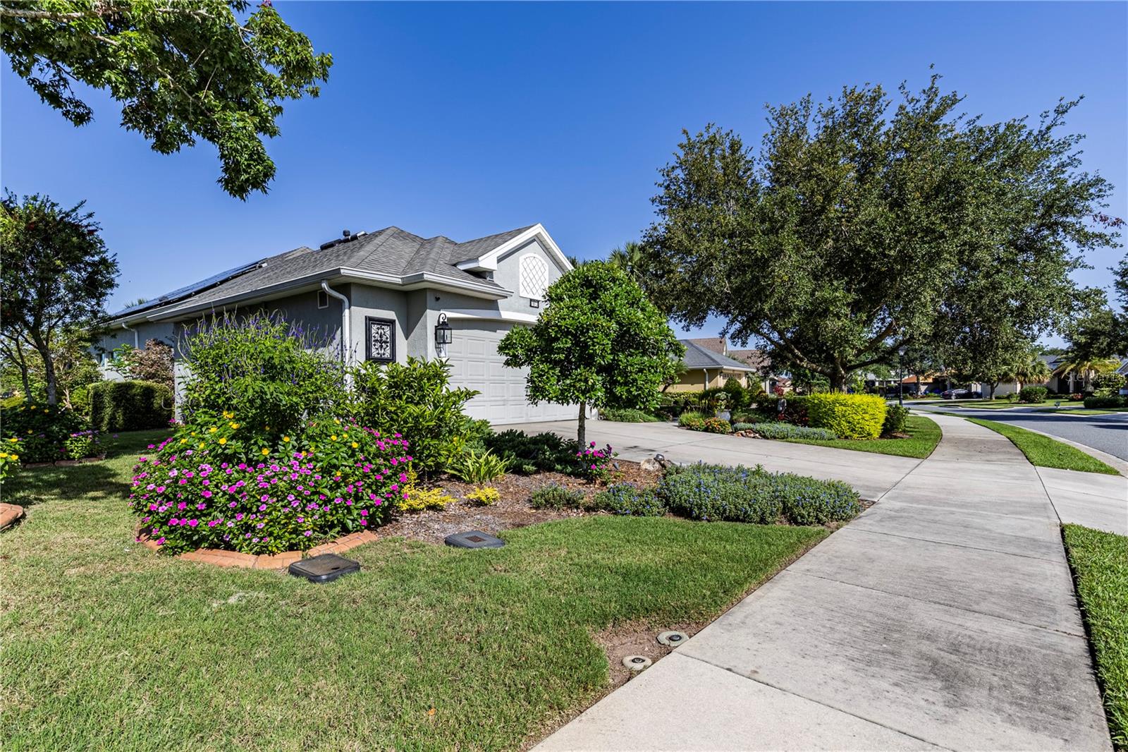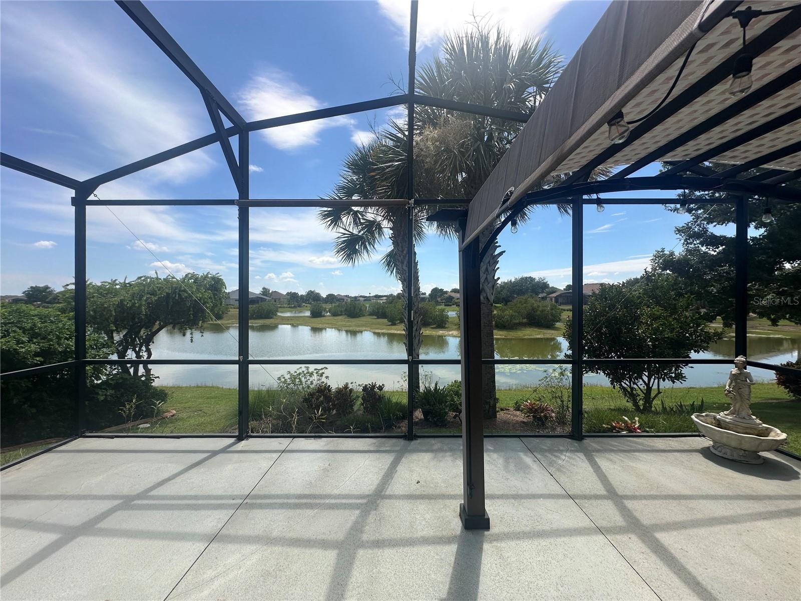 Now available is a truly stunning waterfront home in the highly desirable Lakes of Mount Dora community. This home has undergone an extensive transformation over the past six years, resulting in a thoughtfully designed and meticulously executed floor plan. This beautiful home features two comfortable bedrooms, two full bathrooms, a cozy home office with extra storage (perfect for a remote worker or crafter), and an exceptionally spacious 650 SF garage with 4x16 overhead storage. The paid-off solar panel system keeps the average monthly electric bill remarkably low at just $21. Approaching the residence, you will immediately appreciate the beautifully manicured landscaping. A uniquely designed screened-in courtyard has a security gate and offers a wonderful private area for seating and relaxation. The arched solid mahogany front door creates a striking first impression, hinting at the beauty within. Upon entering, you will be greeted by an open floor plan enhanced by luxury vinyl flooring throughout and an expansive kitchen. The high ceilings and abundant windows flood the home with natural light. The kitchen is truly a highlight, boasting abundant storage with convenient pullouts in every cabinet, stainless steel appliances, and a gorgeous, oversized island perfect for entertaining and providing even more storage. The storage theme continues into the 4x10 walk-in pantry with custom shelving. The perfect place for your coffee bar! The primary suite is a delightful retreat, offering water views, more luxury vinyl flooring, an en-suite bathroom and an oversized walk-in closet. The en-suite bathroom features tile floors, dual sinks, and a step-free shower. The walk-in closet has been thoughtfully designed with built-in organizers and conveniently houses a stackable washer and dryer. The second well-sized bedroom and updated second bathroom are ideal for family and guests. From the living room, sliding doors lead out to the rear screened-in lanai, where you can enjoy breathtaking sunsets over the water – the perfect spot for evening relaxation. The 10x10 pergola will remain with the home, offering a lovely, shaded space even during afternoon showers. The Lakes of Mount Dora has so much to offer to its Residents! This community offers 4.5 miles of interconnecting waterways, RV and boat storage, state of the art Clubhouse, pickleball, tennis, a fitness center, card room, billiard room, craft room, a Grand Ballroom for social gatherings and is close to downtown Mount Dora and all that Mount Dora and Lake County has to offer. You are located just a short distance to Restaurants, Shopping and major highways. This isn't just a home; it's a lifestyle. It's the tranquility of waterfront living, the convenience of a thoughtfully renovated space, and the pride of ownership in a highly sought-after community. Don't miss the opportunity to make this exceptional Lakes of Mount Dora residence your own, You do not want to miss out on this Opportunity! All information recorded in the MLS is intended to be accurate; however, it should be independently verified by buyer and their agent.