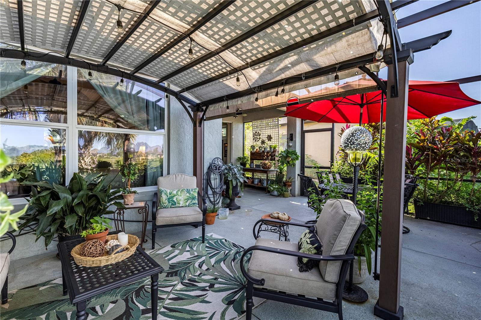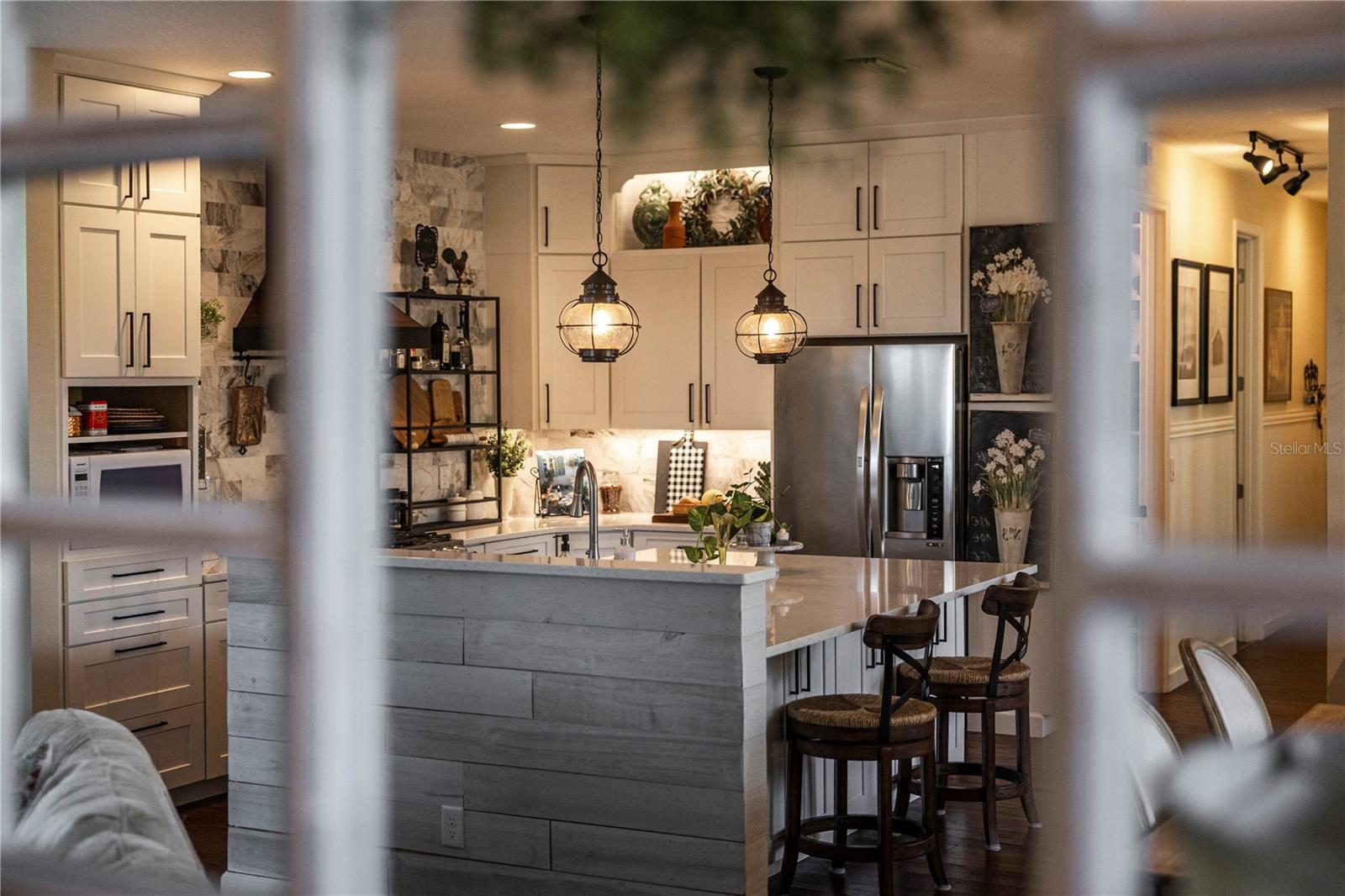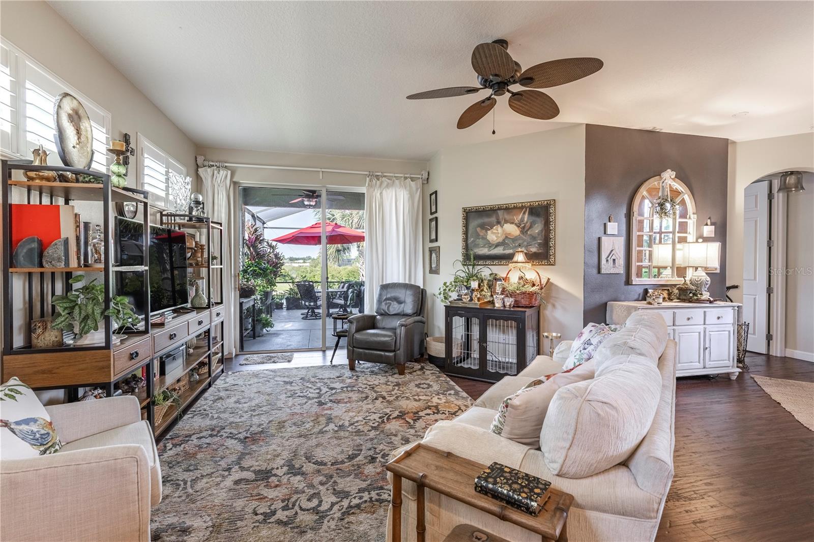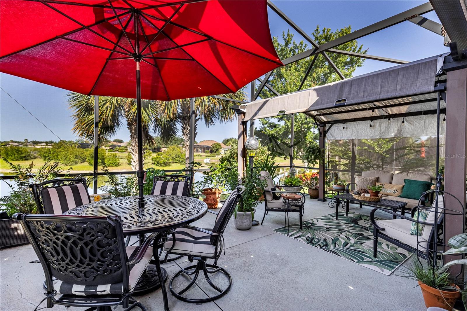 Now available is a truly stunning waterfront home in the highly desirable Lakes of Mount Dora community. This home has undergone an extensive transformation over the past six years, resulting in a thoughtfully designed and meticulously executed floor plan. This beautiful home features two comfortable bedrooms, two full bathrooms, a cozy home office with extra storage (perfect for a remote worker or crafter), and an exceptionally spacious 650 SF garage with 4x16 overhead storage. The paid-off solar panel system keeps the average monthly electric bill remarkably low at just $21. Approaching the residence, you will immediately appreciate the beautifully manicured landscaping. A uniquely designed screened-in courtyard has a security gate and offers a wonderful private area for seating and relaxation. The arched solid mahogany front door creates a striking first impression, hinting at the beauty within. Upon entering, you will be greeted by an open floor plan enhanced by luxury vinyl flooring throughout and an expansive kitchen. The high ceilings and abundant windows flood the home with natural light. The kitchen is truly a highlight, boasting abundant storage with convenient pullouts in every cabinet, stainless steel appliances, and a gorgeous, oversized island perfect for entertaining and providing even more storage. The storage theme continues into the 4x10 walk-in pantry with custom shelving. The perfect place for your coffee bar! The primary suite is a delightful retreat, offering water views, more luxury vinyl flooring, an en-suite bathroom and an oversized walk-in closet. The en-suite bathroom features tile floors, dual sinks, and a step-free shower. The walk-in closet has been thoughtfully designed with built-in organizers and conveniently houses a stackable washer and dryer. The second well-sized bedroom and updated second bathroom are ideal for family and guests. From the living room, sliding doors lead out to the rear screened-in lanai, where you can enjoy breathtaking sunsets over the water – the perfect spot for evening relaxation. The 10x10 pergola will remain with the home, offering a lovely, shaded space even during afternoon showers. The Lakes of Mount Dora has so much to offer to its Residents! This community offers 4.5 miles of interconnecting waterways, RV and boat storage, state of the art Clubhouse, pickleball, tennis, a fitness center, card room, billiard room, craft room, a Grand Ballroom for social gatherings and is close to downtown Mount Dora and all that Mount Dora and Lake County has to offer. You are located just a short distance to Restaurants, Shopping and major highways. This isn't just a home; it's a lifestyle. It's the tranquility of waterfront living, the convenience of a thoughtfully renovated space, and the pride of ownership in a highly sought-after community. Don't miss the opportunity to make this exceptional Lakes of Mount Dora residence your own, You do not want to miss out on this Opportunity! All information recorded in the MLS is intended to be accurate; however, it should be independently verified by buyer and their agent.