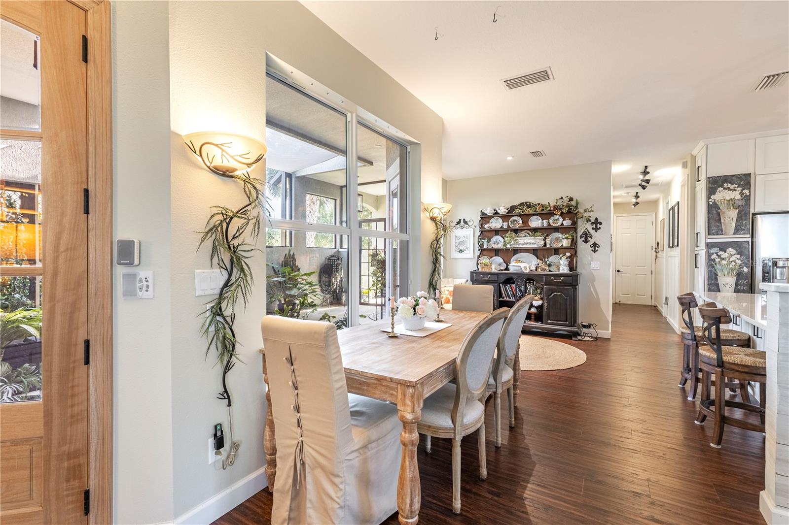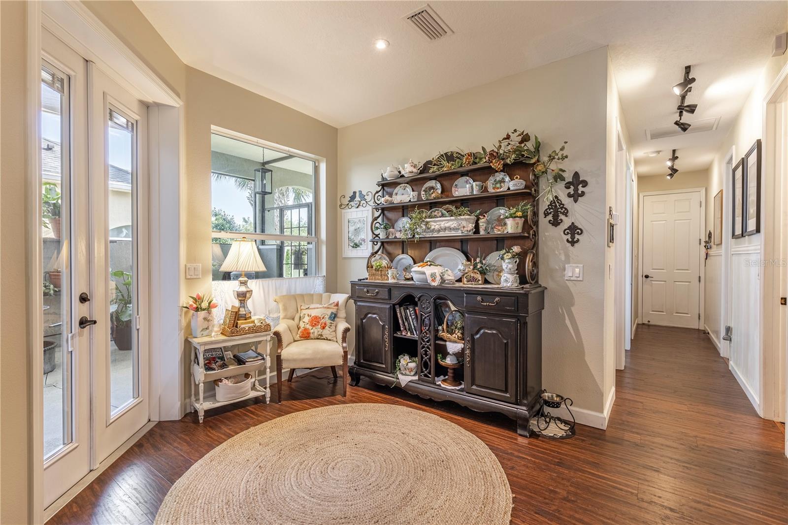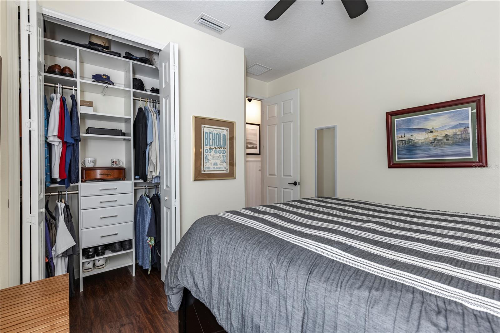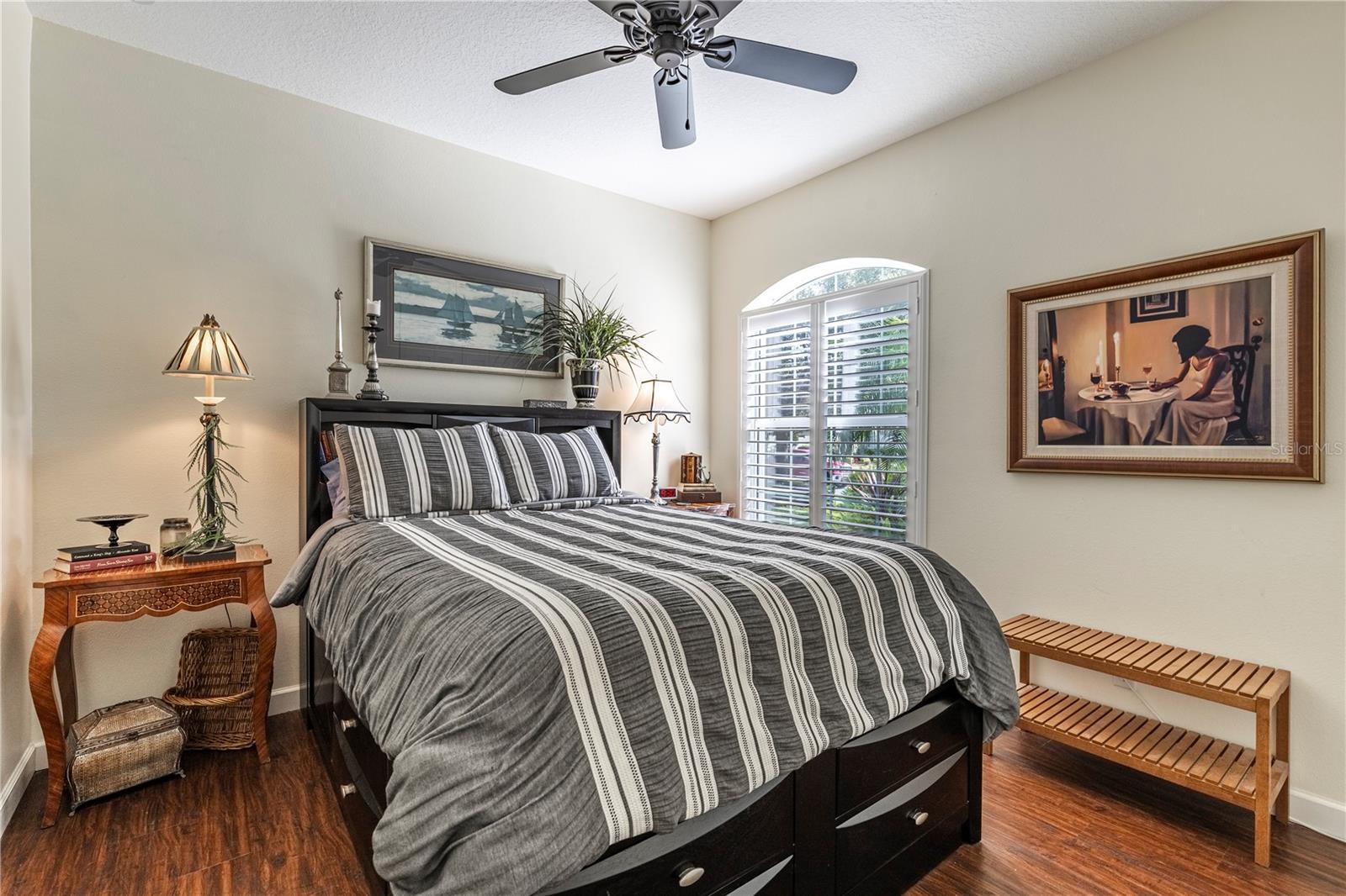 Now available is a truly stunning waterfront home in the highly desirable Lakes of Mount Dora community. This home has undergone an extensive transformation over the past six years, resulting in a thoughtfully designed and meticulously executed floor plan. This beautiful home features two comfortable bedrooms, two full bathrooms, a cozy home office with extra storage (perfect for a remote worker or crafter), and an exceptionally spacious 650 SF garage with 4x16 overhead storage. The paid-off solar panel system keeps the average monthly electric bill remarkably low at just $21. Approaching the residence, you will immediately appreciate the beautifully manicured landscaping. A uniquely designed screened-in courtyard has a security gate and offers a wonderful private area for seating and relaxation. The arched solid mahogany front door creates a striking first impression, hinting at the beauty within. Upon entering, you will be greeted by an open floor plan enhanced by luxury vinyl flooring throughout and an expansive kitchen. The high ceilings and abundant windows flood the home with natural light. The kitchen is truly a highlight, boasting abundant storage with convenient pullouts in every cabinet, stainless steel appliances, and a gorgeous, oversized island perfect for entertaining and providing even more storage. The storage theme continues into the 4x10 walk-in pantry with custom shelving. The perfect place for your coffee bar! The primary suite is a delightful retreat, offering water views, more luxury vinyl flooring, an en-suite bathroom and an oversized walk-in closet. The en-suite bathroom features tile floors, dual sinks, and a step-free shower. The walk-in closet has been thoughtfully designed with built-in organizers and conveniently houses a stackable washer and dryer. The second well-sized bedroom and updated second bathroom are ideal for family and guests. From the living room, sliding doors lead out to the rear screened-in lanai, where you can enjoy breathtaking sunsets over the water – the perfect spot for evening relaxation. The 10x10 pergola will remain with the home, offering a lovely, shaded space even during afternoon showers. The Lakes of Mount Dora has so much to offer to its Residents! This community offers 4.5 miles of interconnecting waterways, RV and boat storage, state of the art Clubhouse, pickleball, tennis, a fitness center, card room, billiard room, craft room, a Grand Ballroom for social gatherings and is close to downtown Mount Dora and all that Mount Dora and Lake County has to offer. You are located just a short distance to Restaurants, Shopping and major highways. This isn't just a home; it's a lifestyle. It's the tranquility of waterfront living, the convenience of a thoughtfully renovated space, and the pride of ownership in a highly sought-after community. Don't miss the opportunity to make this exceptional Lakes of Mount Dora residence your own, You do not want to miss out on this Opportunity! All information recorded in the MLS is intended to be accurate; however, it should be independently verified by buyer and their agent.