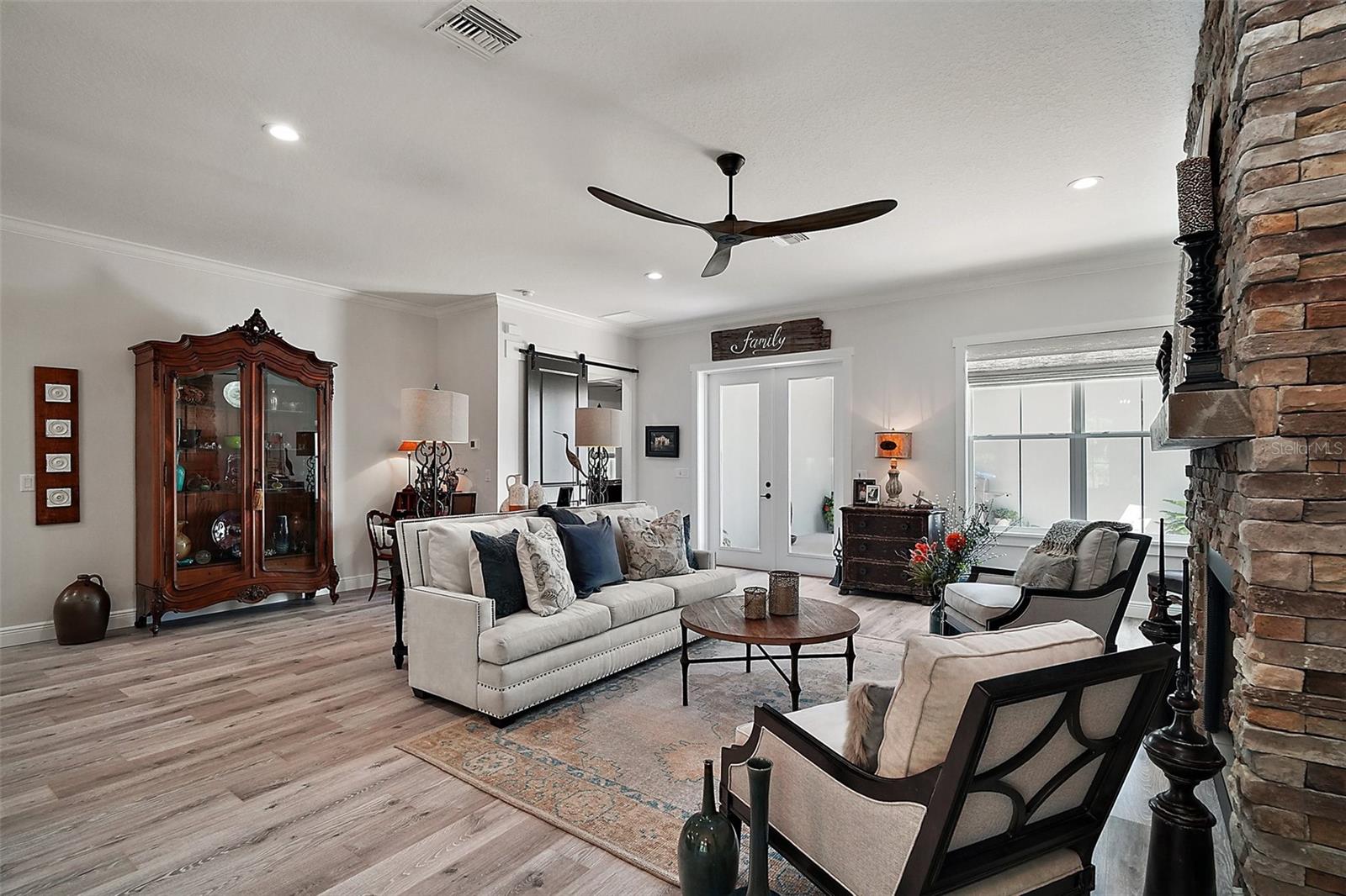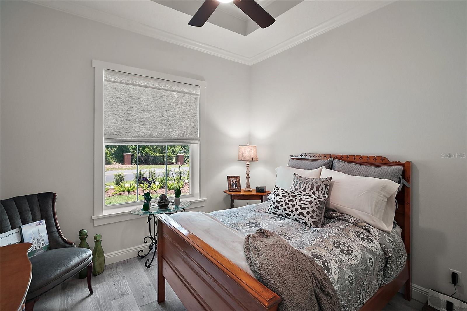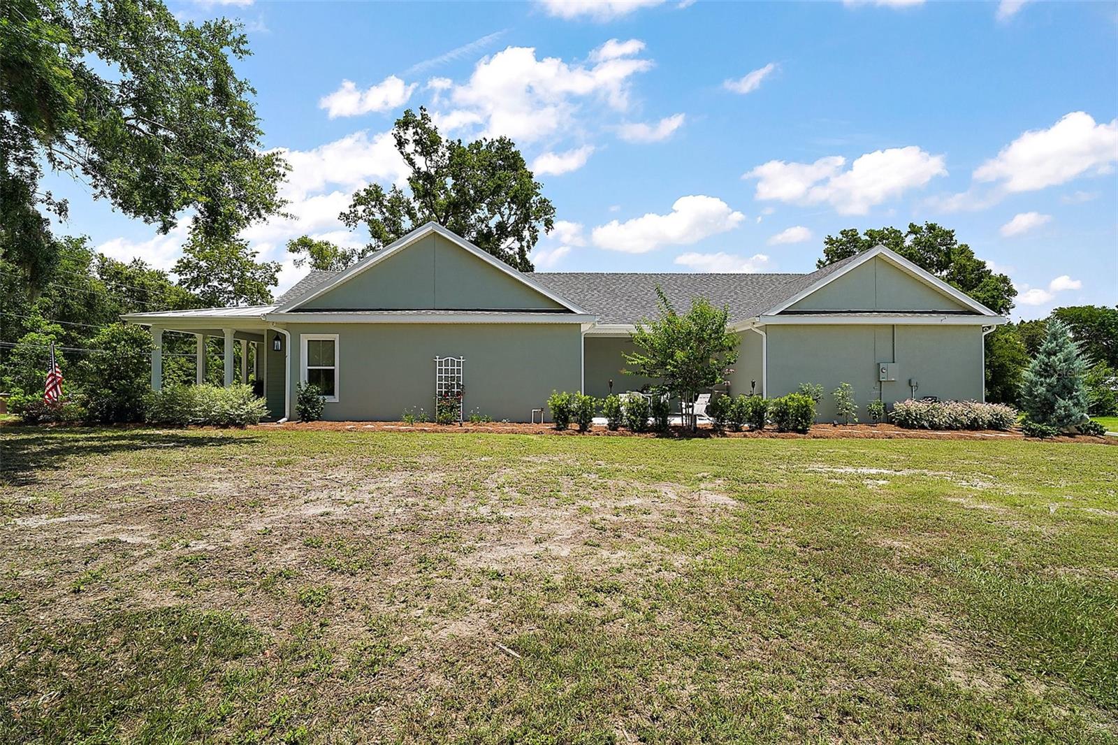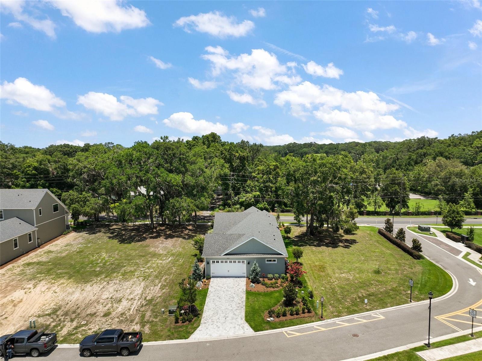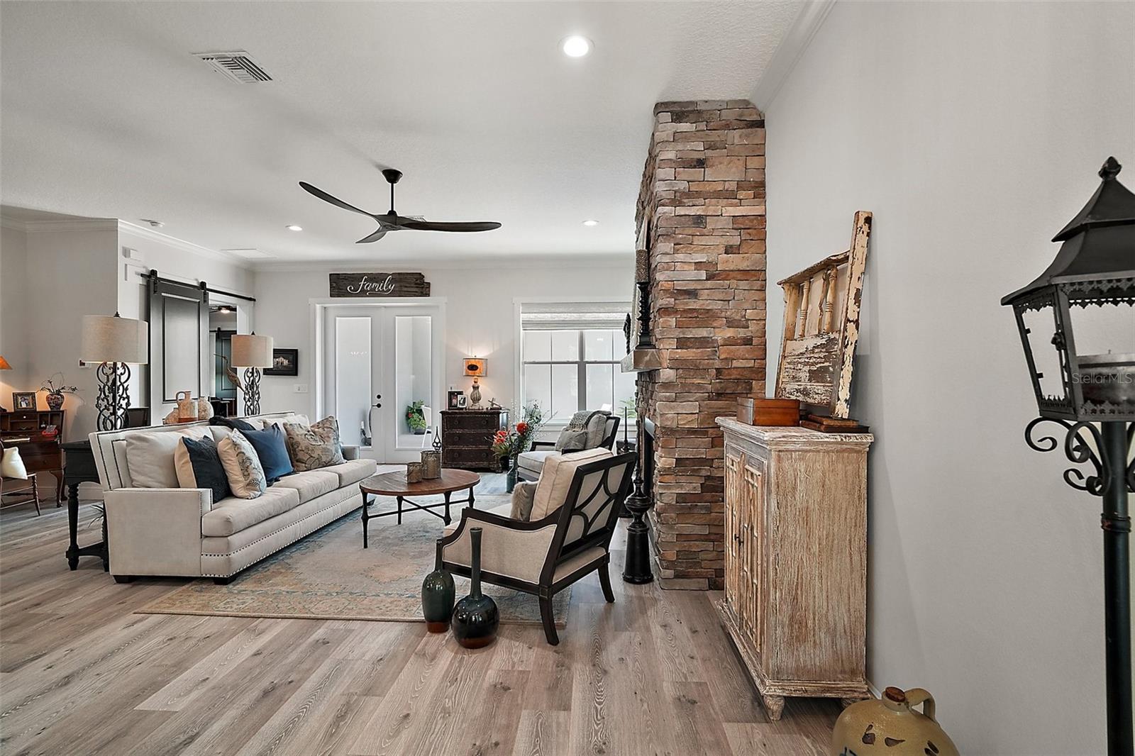 Welcome to 622 W 11th Avenue, a stunning 2024 custom-built home by Kevco Builders located in the highly desirable Cottages on 11th neighborhood in historic Mount Dora. This thoughtfully designed residence combines timeless charm with modern luxury and is just blocks from downtown shops, restaurants, parks, and the Lake Dora waterfront. From the moment you arrive, you'll be captivated by the home’s inviting curb appeal, accent metal roof, shutters, flagstone walkway, professional landscaping, and peaceful lake views beyond. Step inside to discover a beautifully appointed interior featuring crown molding throughout, solid core doors, 3" trim and return molding on all windows, and laminate wood flooring throughout. The open concept living area is anchored by a custom stone fireplace with gas logs and barn doors add a touch of farmhouse elegance to both the living room and owner’s suite. The gourmet kitchen showcases custom cabinetry, quartz countertops, a subway tile backsplash in a herringbone pattern, Thermador stainless steel appliances, gas cooktop, farmhouse sink, center island and decorator lighting. The owner's suite is a peaceful retreat with shiplap detailing, a spa-style bath with glass barn door shower enclosure, garden tub, double vanity with custom cabinets & custom mirrors and large walk in closet. The second bath is equally stylish with additional shiplap, walk in shower and high-end finishes. Designer-selected woven wood blinds are installed throughout the home, and the laundry area includes a full-size LG washer and dryer combination unit for added convenience. Exterior features include energy-efficient spray foam attic insulation, MI Energy Efficient Impact Windows, gas tankless hot water heater, seamless gutters, paver driveway and walkways, an acrylic-finished front porch and rear lanai, and an epoxy-coated garage floor. The garage also comes equipped with a Gladiator cabinet and tool organization system. Irrigation and professional landscaping complete this move-in-ready home. Whether you’re enjoying a quiet morning on the porch or entertaining friends on the covered lanai, this home offers the perfect blend of comfort, efficiency, and style in one of Mount Dora’s most walkable and charming communities.