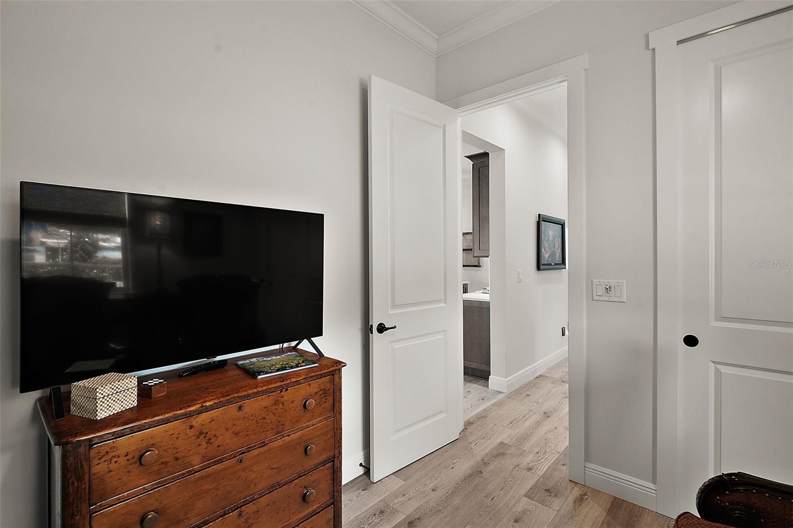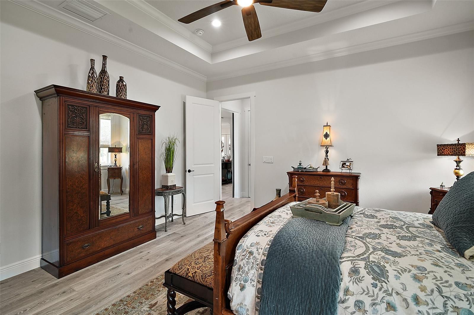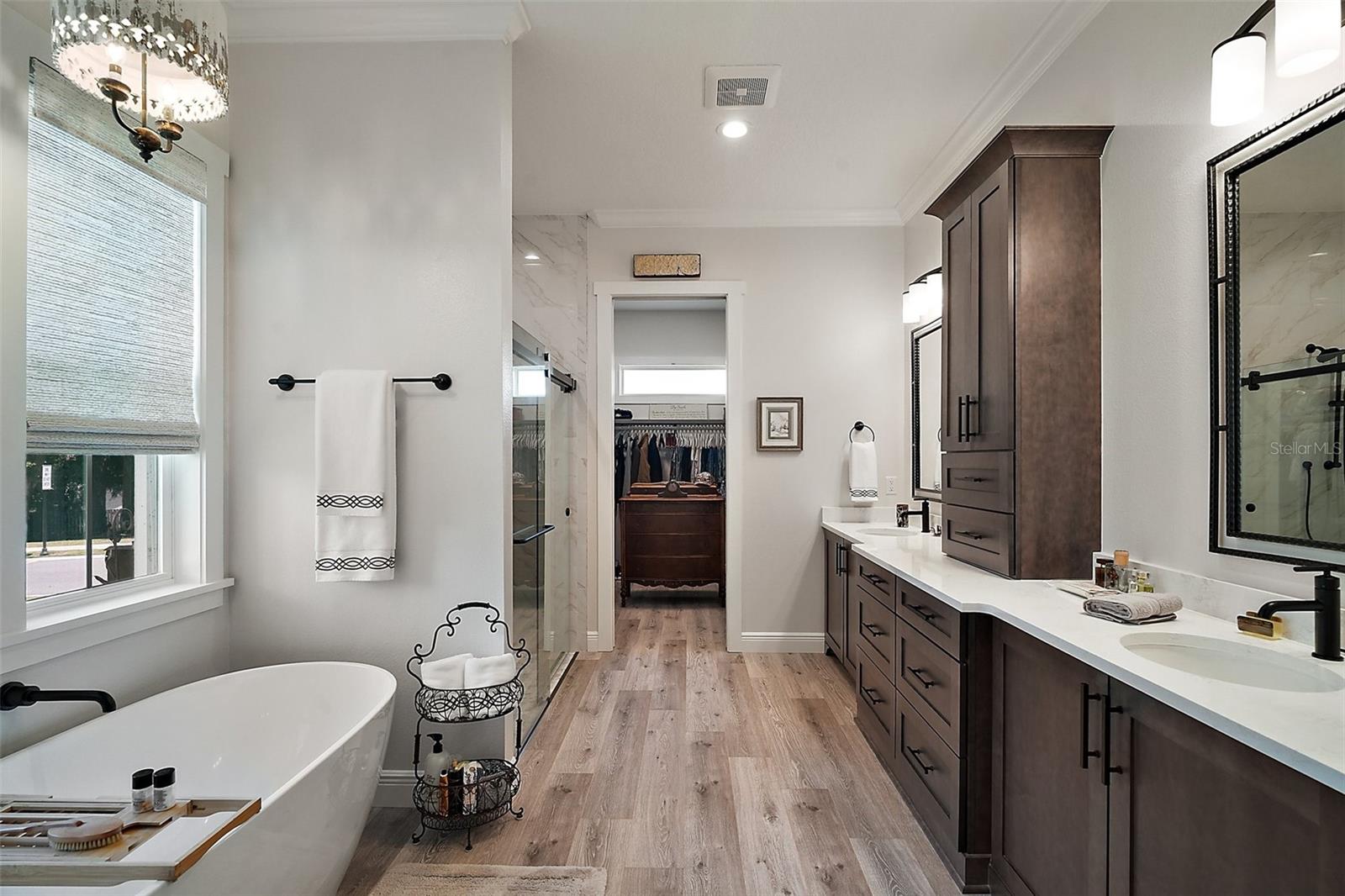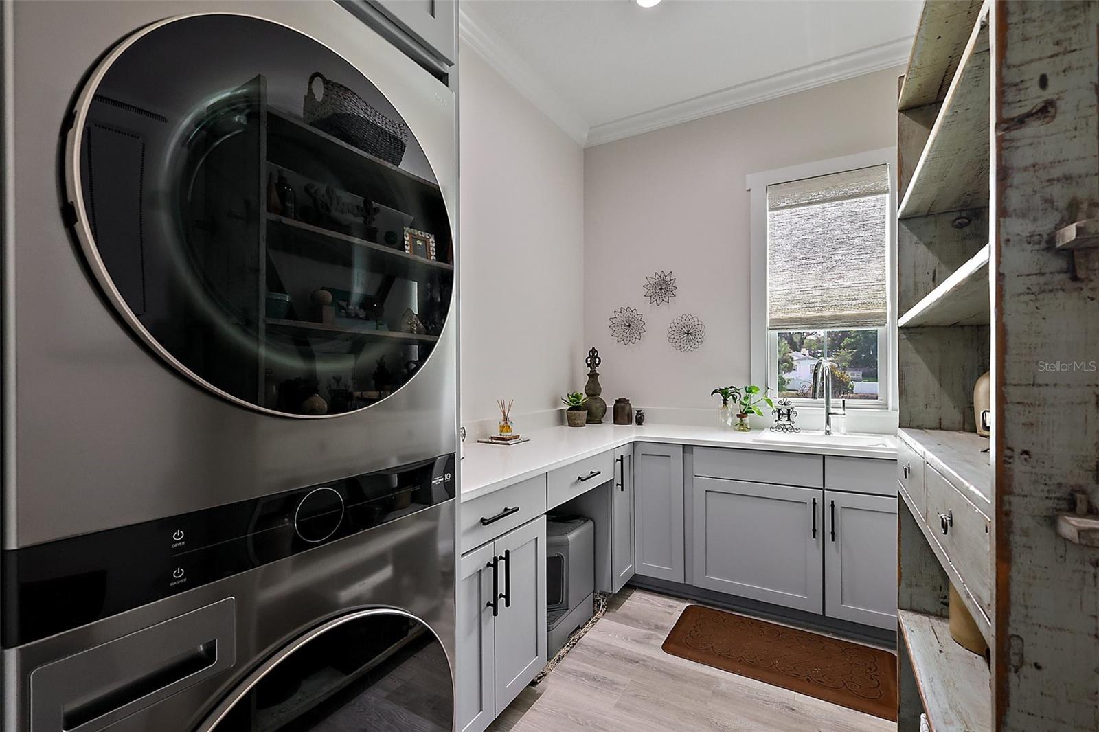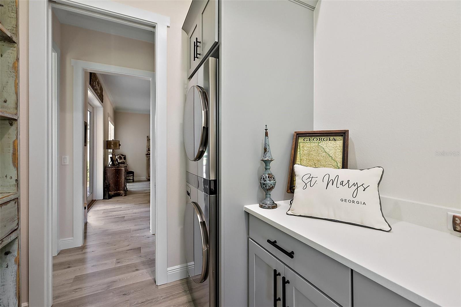 Welcome to 622 W 11th Avenue, a stunning 2024 custom-built home by Kevco Builders located in the highly desirable Cottages on 11th neighborhood in historic Mount Dora. This thoughtfully designed residence combines timeless charm with modern luxury and is just blocks from downtown shops, restaurants, parks, and the Lake Dora waterfront. From the moment you arrive, you'll be captivated by the home’s inviting curb appeal, accent metal roof, shutters, flagstone walkway, professional landscaping, and peaceful lake views beyond. Step inside to discover a beautifully appointed interior featuring crown molding throughout, solid core doors, 3" trim and return molding on all windows, and laminate wood flooring throughout. The open concept living area is anchored by a custom stone fireplace with gas logs and barn doors add a touch of farmhouse elegance to both the living room and owner’s suite. The gourmet kitchen showcases custom cabinetry, quartz countertops, a subway tile backsplash in a herringbone pattern, Thermador stainless steel appliances, gas cooktop, farmhouse sink, center island and decorator lighting. The owner's suite is a peaceful retreat with shiplap detailing, a spa-style bath with glass barn door shower enclosure, garden tub, double vanity with custom cabinets & custom mirrors and large walk in closet. The second bath is equally stylish with additional shiplap, walk in shower and high-end finishes. Designer-selected woven wood blinds are installed throughout the home, and the laundry area includes a full-size LG washer and dryer combination unit for added convenience. Exterior features include energy-efficient spray foam attic insulation, MI Energy Efficient Impact Windows, gas tankless hot water heater, seamless gutters, paver driveway and walkways, an acrylic-finished front porch and rear lanai, and an epoxy-coated garage floor. The garage also comes equipped with a Gladiator cabinet and tool organization system. Irrigation and professional landscaping complete this move-in-ready home. Whether you’re enjoying a quiet morning on the porch or entertaining friends on the covered lanai, this home offers the perfect blend of comfort, efficiency, and style in one of Mount Dora’s most walkable and charming communities.