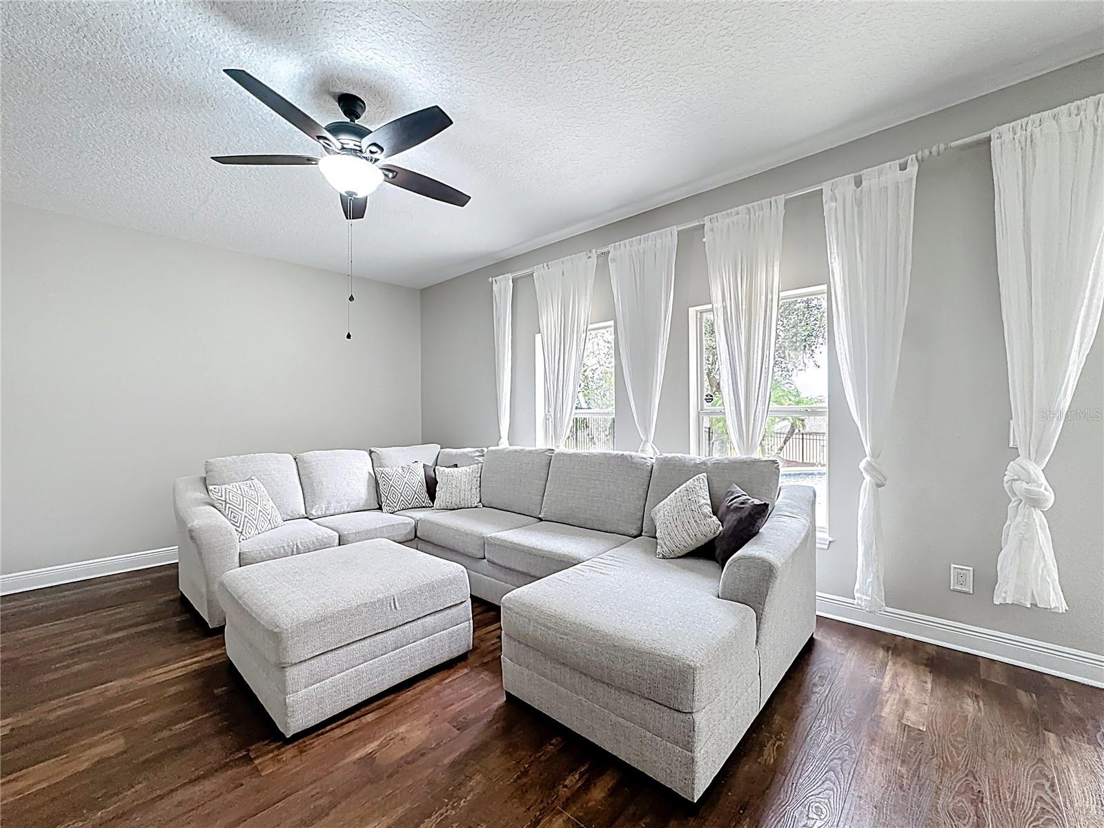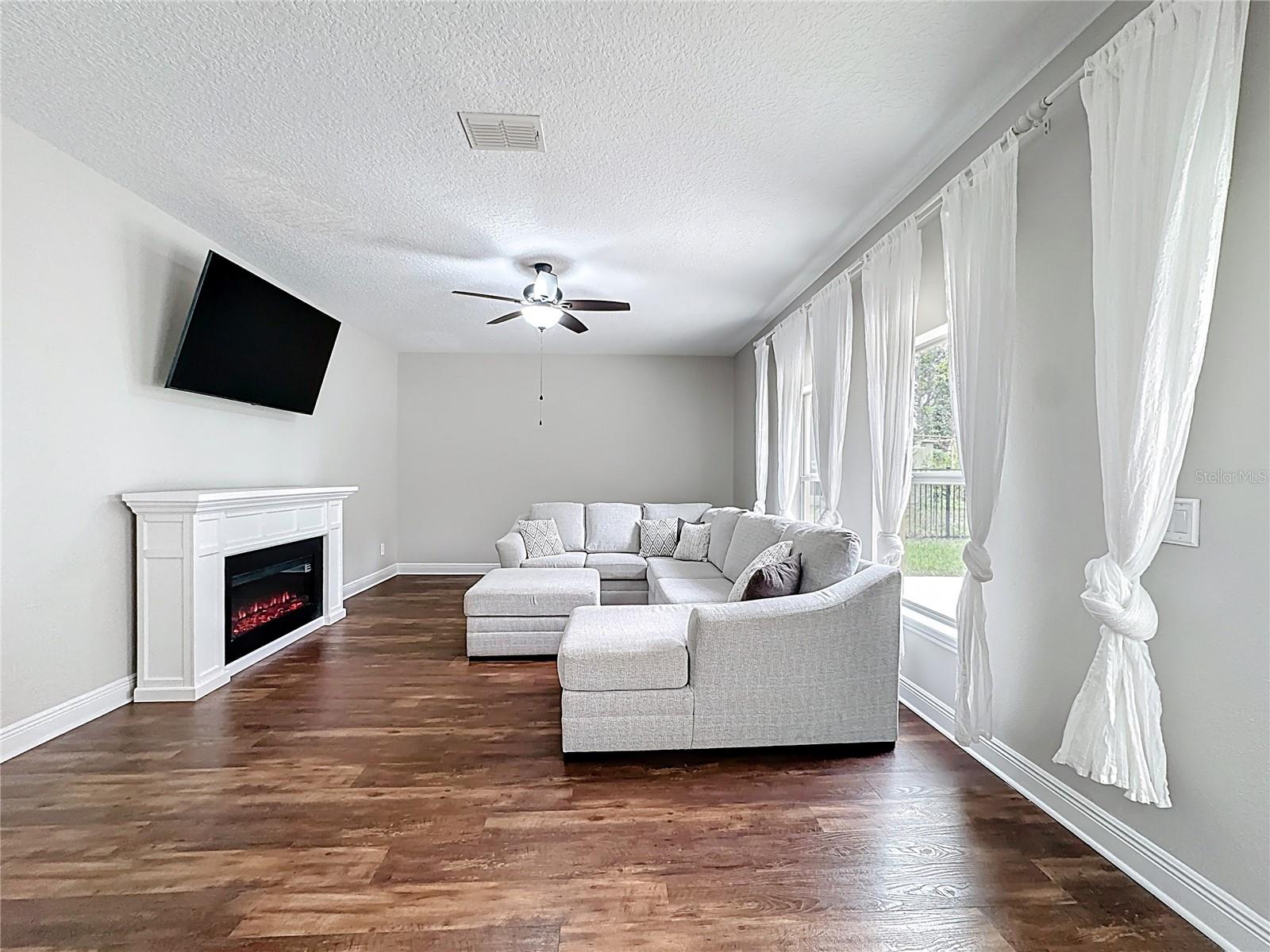 Stunning Pool Home, Start the New Year with This Beauty! Open and bright floorplan featuring 4 bedrooms and 2.5 baths with large room sizes throughout. Enjoy covered front and rear porches, a fenced backyard, gorgeous sunset views, and a saltwater pebble-finish pool, perfect for Florida living. Major upgrades include a new roof, HVAC system, and hot water heater (2023), whole-home water filtration system, whole-home water shut-off valves (2024), and a radiant barrier in the roof and garage for energy efficiency. Interior updates include a Samsung washer & dryer (2023), Bosch dishwasher, recessed lighting in the kitchen and primary bath (2023), new ceiling fans (2023), all light fixtures and downstairs outlets/covers updated (2024), resurfaced kitchen cabinets (2025), and freshly repainted downstairs interior (2025). Outdoor features include a self-cleaning saltwater pool (2021) with pool heater (2024) and LED pool light (2025), widened driveway with brick extensions (2023), fresh exterior paint on doors, shutters, porch, and pool deck (2025), and new irrigation control panel (2024). Additional features include a SimpliSafe alarm system and garage ceiling storage racks (2024). Located in the highly sought-after Sullivan Ranch community, minutes from historic Mount Dora with its boutiques, cafés, restaurants, and festivals on Lake Dora. Community amenities include walking trails, playground, splash pad, dog park, clubhouse, and resort-style pool. Easy access to the Wekiva Parkway provides a convenient commute to downtown Orlando (40 min), airports (45 min), shopping, and theme parks (40 min). Don't miss this great deal! Call today for your private showing!