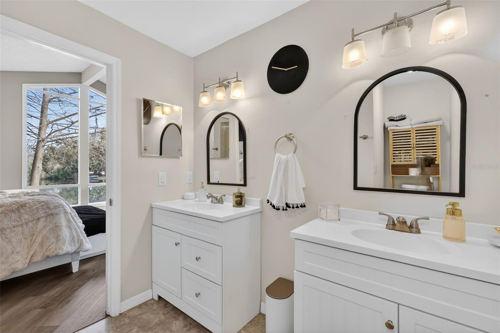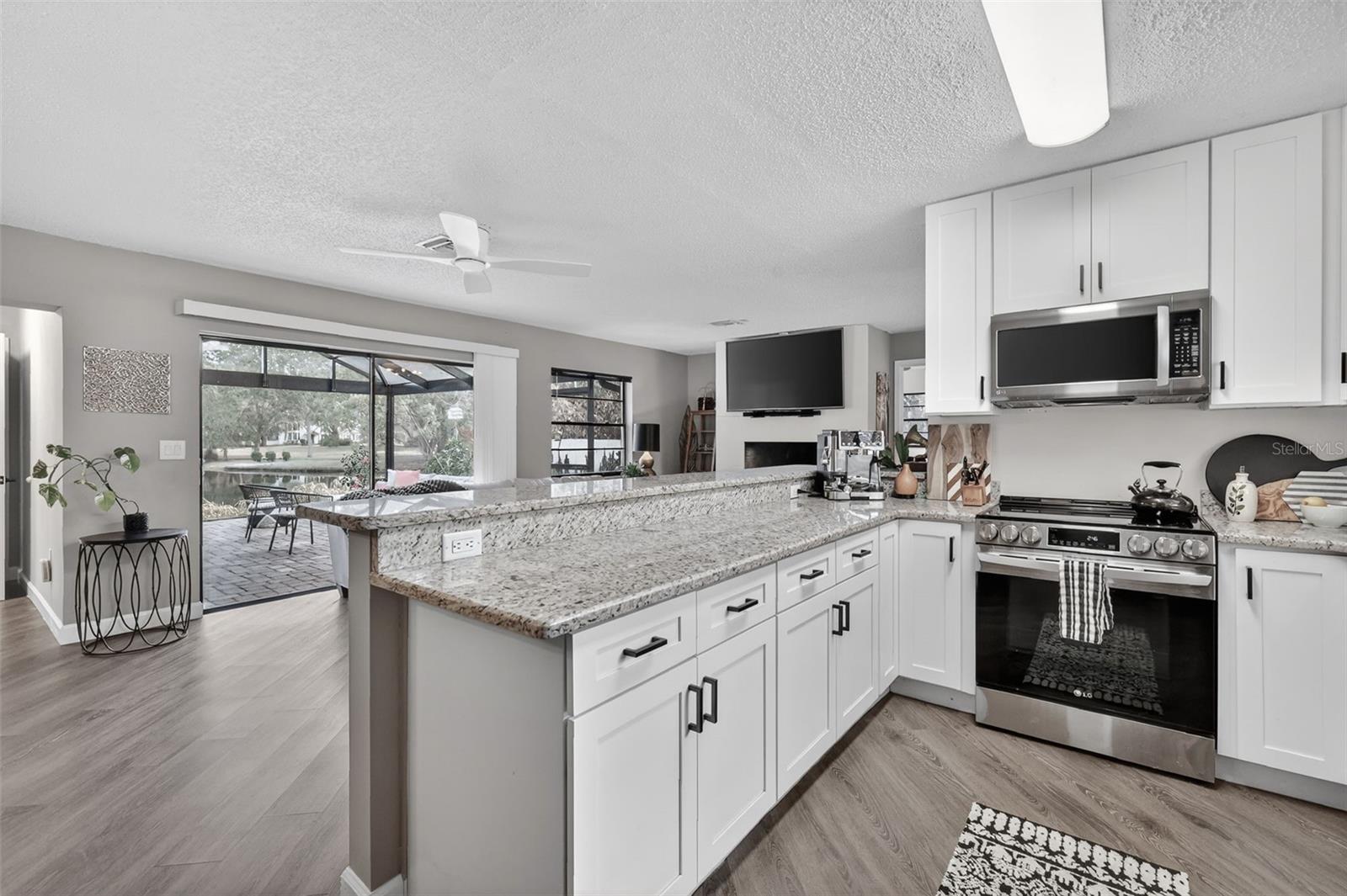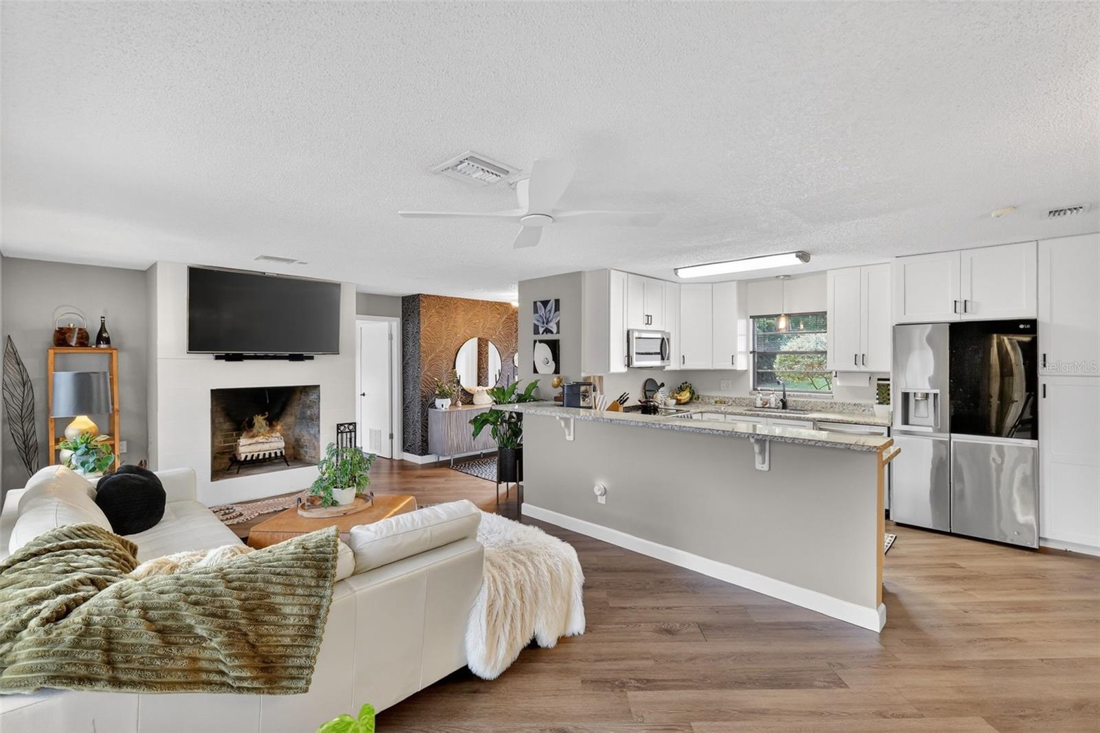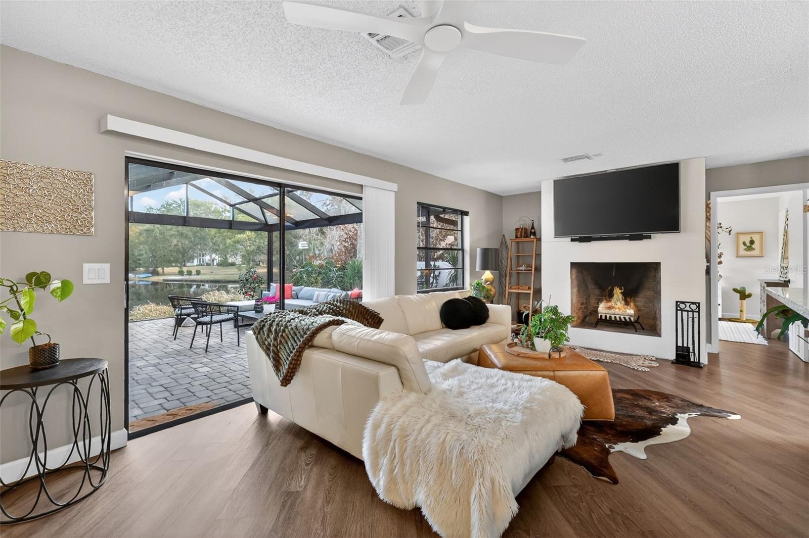 Welcome to your charming Mount Dora retreat! This beautiful move-in ready home offers 3 bedrooms and 3 full bathrooms in a thoughtful and functional floor plan that maximizes comfort and style. Set on a generous .26-acre lot overlooking a serene private lake and NO HOA, this property delivers both privacy and convenience just minutes from historic downtown Mount Dora and scenic Lakeshore Drive. The brick paver sidewalk welcomes you into the entry foyer of this comfortable home, where laminate flooring flows throughout. The inviting open floor plan connects the living , dining areas & kitchen, highlighted by a cozy wood-burning fireplace and sliding glass doors that open to a screened patio with tranquil lake views for seamless indoor-outdoor living. The kitchen is thoughtfully appointed with granite countertops, new appliances, a breakfast bar, and timeless finishes well suited for both casual living and elegant gatherings. The primary suite is a private sanctuary featuring vaulted ceilings, tranquil lake views, a walk-in closet, en suite bathroom with dual vanities & walk in shower - sliding glass doors open directly to the screened patio, creating a true retreat-like experience. A split-bedroom floor plan enhances privacy, while all three bedrooms offer en suite bathrooms, providing exceptional comfort and flexibility for guests, family, or home office use. Outdoor living is a standout feature, with a screened patio overlooking the lake and a charming fenced front yard that adds curb appeal and privacy. Additional updates include a 2021 roof and a water softener and purification system. Located close to local shops, dining, parks, vibrant waterfront and all the amenities that make Mount Dora one of Central Florida’s most beloved communities, this home combines classic charm with thoughtful upgrades and exceptional value.