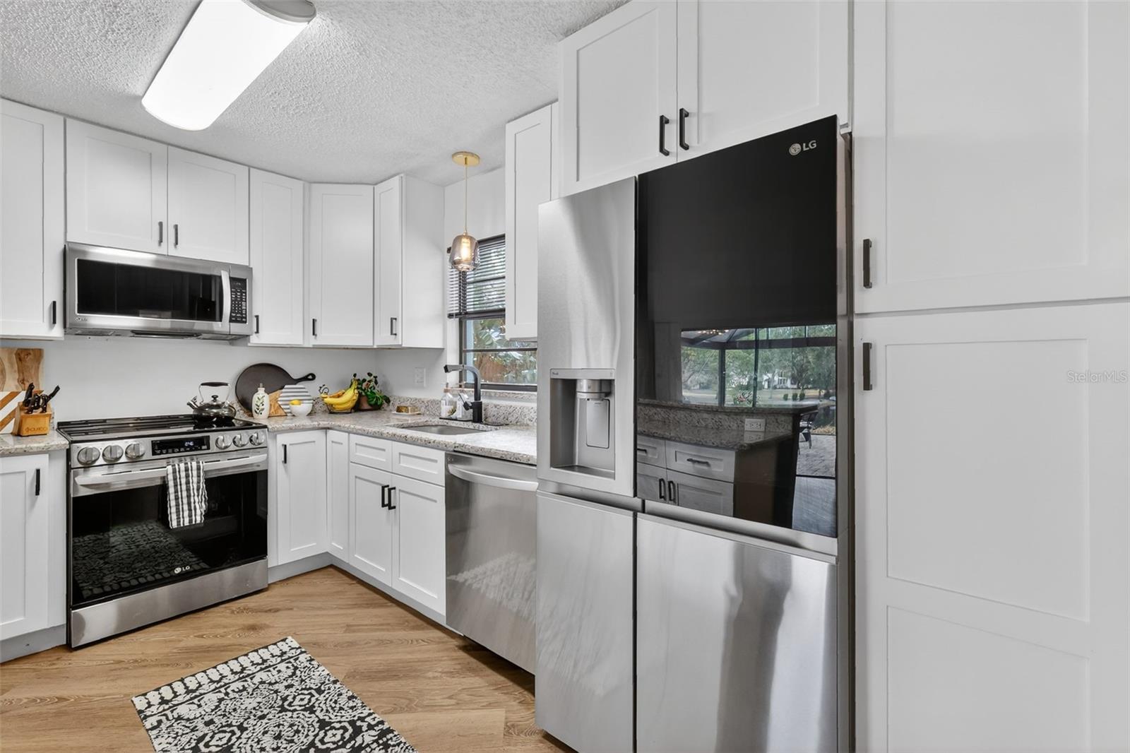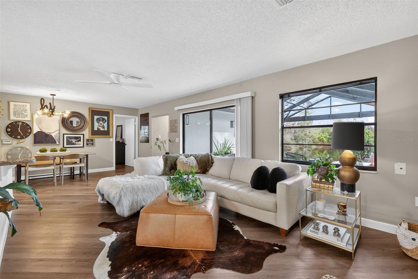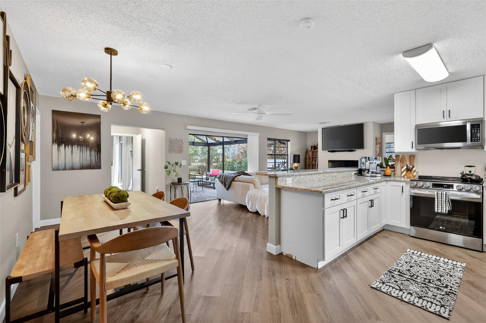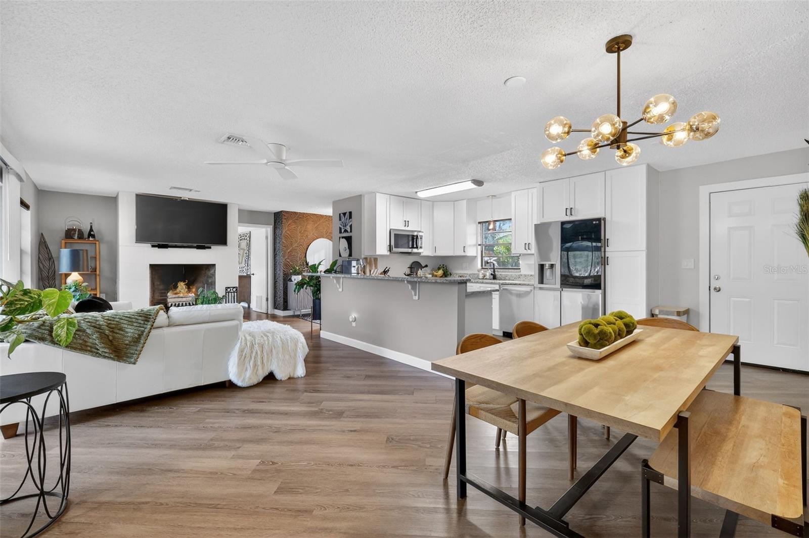 Welcome to your charming Mount Dora retreat! This beautiful move-in ready home offers 3 bedrooms and 3 full bathrooms in a thoughtful and functional floor plan that maximizes comfort and style. Set on a generous .26-acre lot overlooking a serene private lake and NO HOA, this property delivers both privacy and convenience just minutes from historic downtown Mount Dora and scenic Lakeshore Drive. The brick paver sidewalk welcomes you into the entry foyer of this comfortable home, where laminate flooring flows throughout. The inviting open floor plan connects the living , dining areas & kitchen, highlighted by a cozy wood-burning fireplace and sliding glass doors that open to a screened patio with tranquil lake views for seamless indoor-outdoor living. The kitchen is thoughtfully appointed with granite countertops, new appliances, a breakfast bar, and timeless finishes well suited for both casual living and elegant gatherings. The primary suite is a private sanctuary featuring vaulted ceilings, tranquil lake views, a walk-in closet, en suite bathroom with dual vanities & walk in shower - sliding glass doors open directly to the screened patio, creating a true retreat-like experience. A split-bedroom floor plan enhances privacy, while all three bedrooms offer en suite bathrooms, providing exceptional comfort and flexibility for guests, family, or home office use. Outdoor living is a standout feature, with a screened patio overlooking the lake and a charming fenced front yard that adds curb appeal and privacy. Additional updates include a 2021 roof and a water softener and purification system. Located close to local shops, dining, parks, vibrant waterfront and all the amenities that make Mount Dora one of Central Florida’s most beloved communities, this home combines classic charm with thoughtful upgrades and exceptional value.
