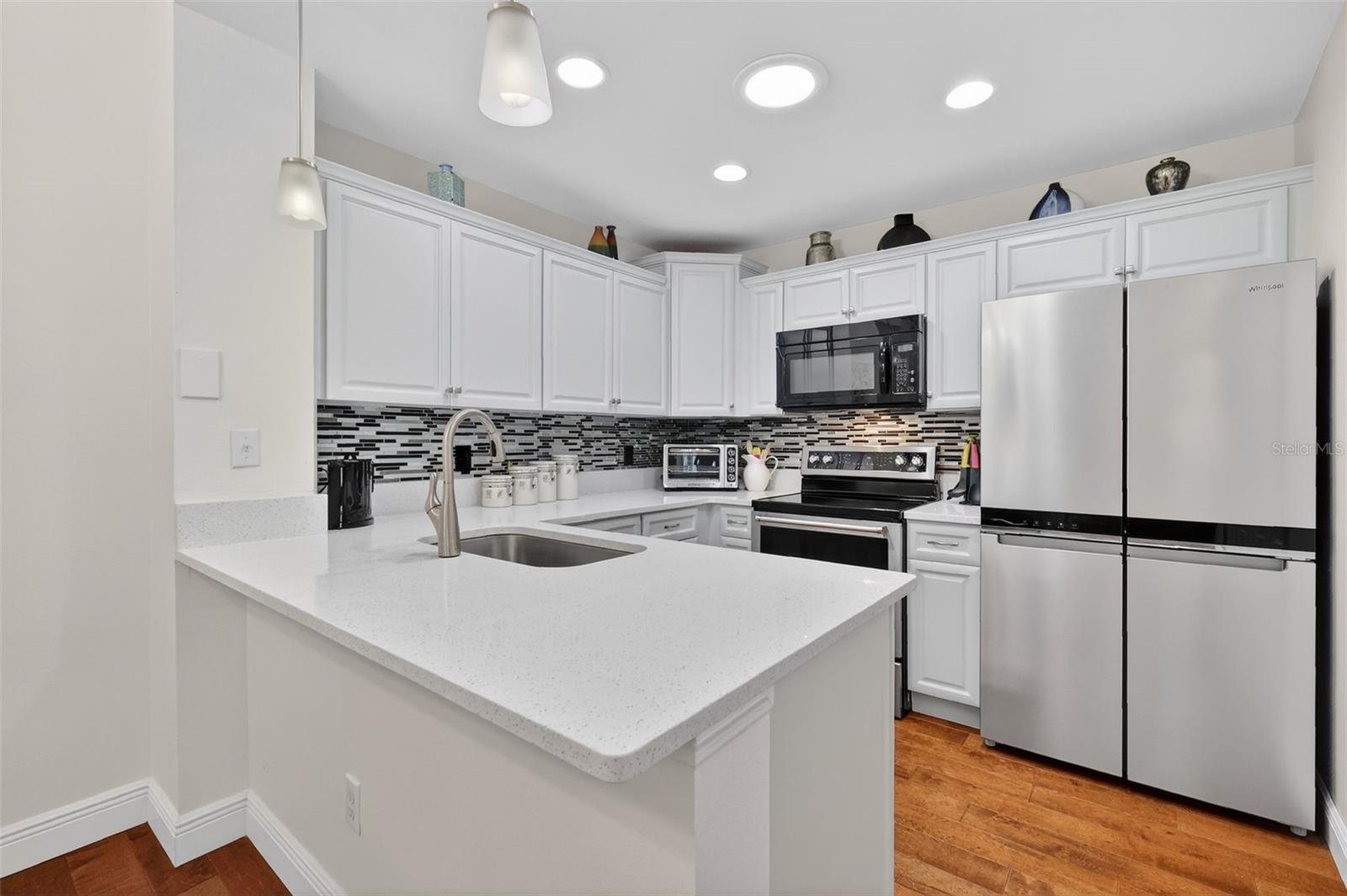 Welcome to this one-of-a-kind villa located in the premier golf community of The Country Club of Mount Dora. This beautifully maintained two bedroom/two bath home features an expanded floor plan of 1421 square feet with thoughtful upgrades throughout. Step inside to discover rich engineered wood flooring that flows seamlessly through the main living areas and bedrooms, creating a warm and inviting atmosphere. The updated kitchen is a true highlight, showcasing sleek quartz countertops, newer appliances and modern finishes. The spacious primary suite serves as a private retreat, complete with two walk-in closets and a well-appointed en suite bath designed for comfort and convenience. The villa is located across the street from the clubhouse and pool, which along with pickleball, tennis, golf and member events and dinners, can be enjoyed with club membership. The roof was replaced in 2023, the HVAC system in 2020 and the AC splitter in 2022. Furnishings and accessories are available, offering an easy move-in opportunity for the new owner. Enjoy the relaxed Florida lifestyle in this exceptional golf community setting—perfect for seasonal or full-time living. The Country Club of Mount Dora offers golf, pickleball, tennis, pool and member dinners and events with club membership and is located just a few minutes away from historic downtown Mount Dora, filled with charming shops, restaurants and waterfront activities Schedule your private showing today and experience the charm and lifestyle this special villa and community have to offer!