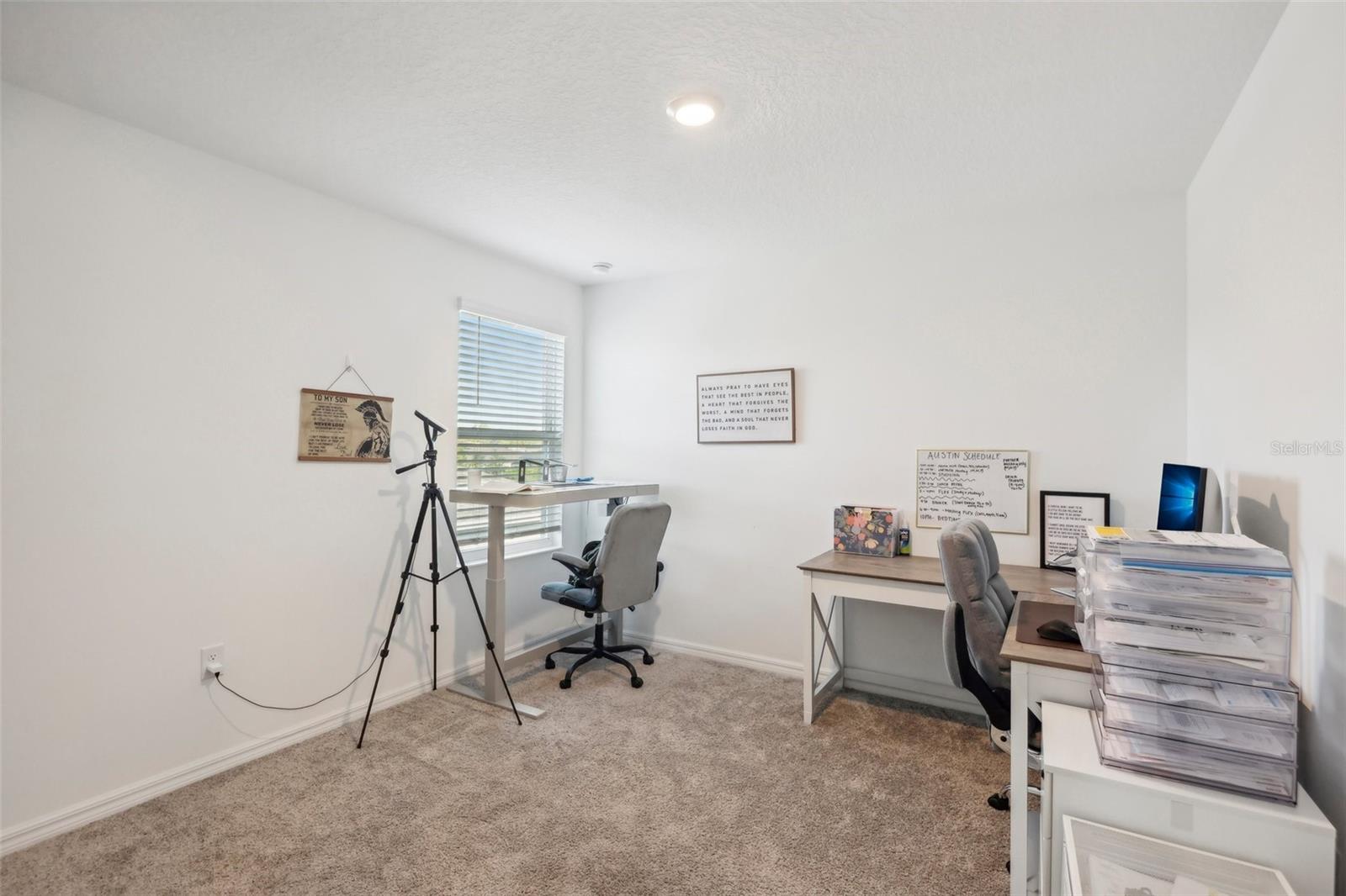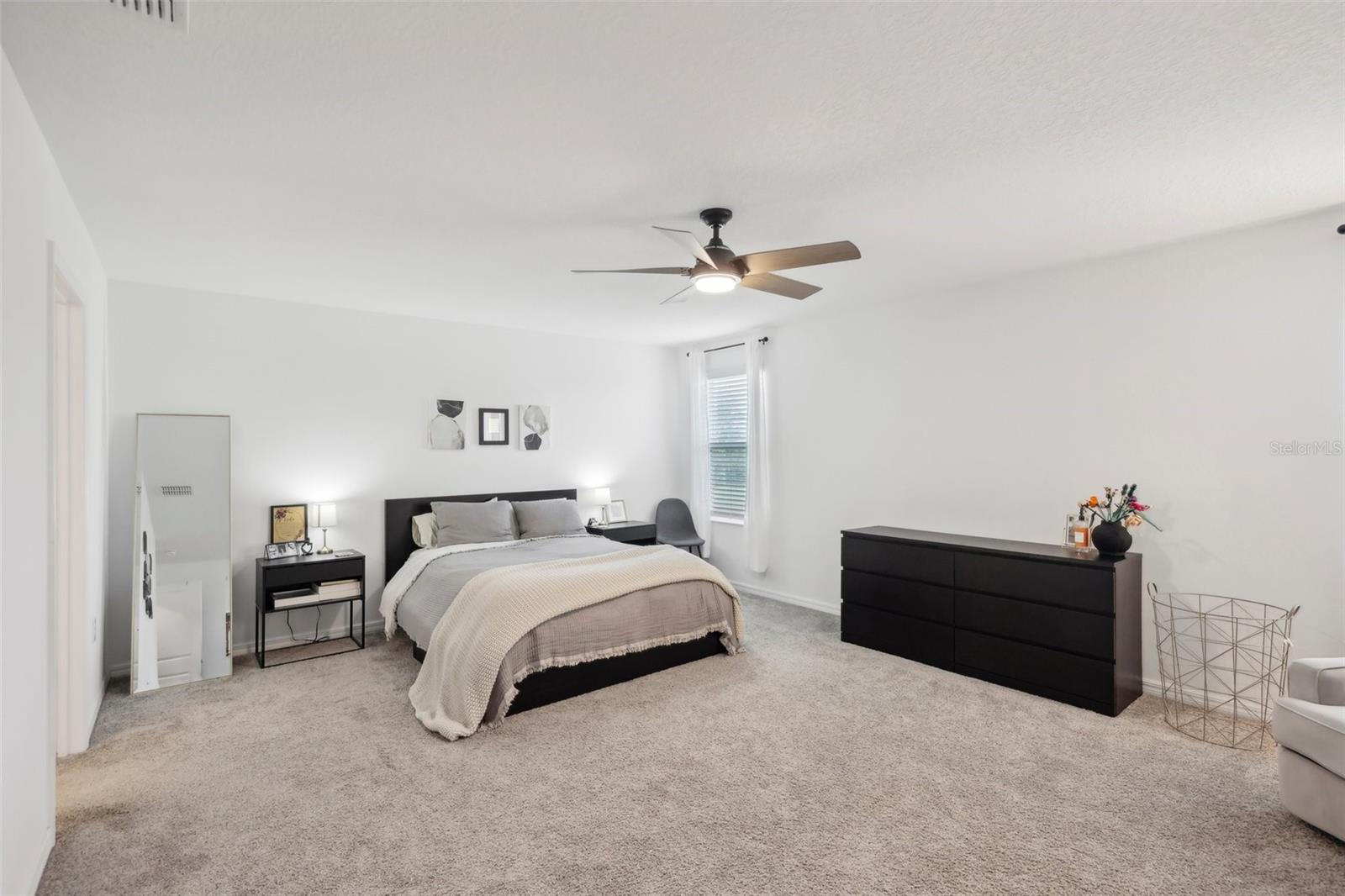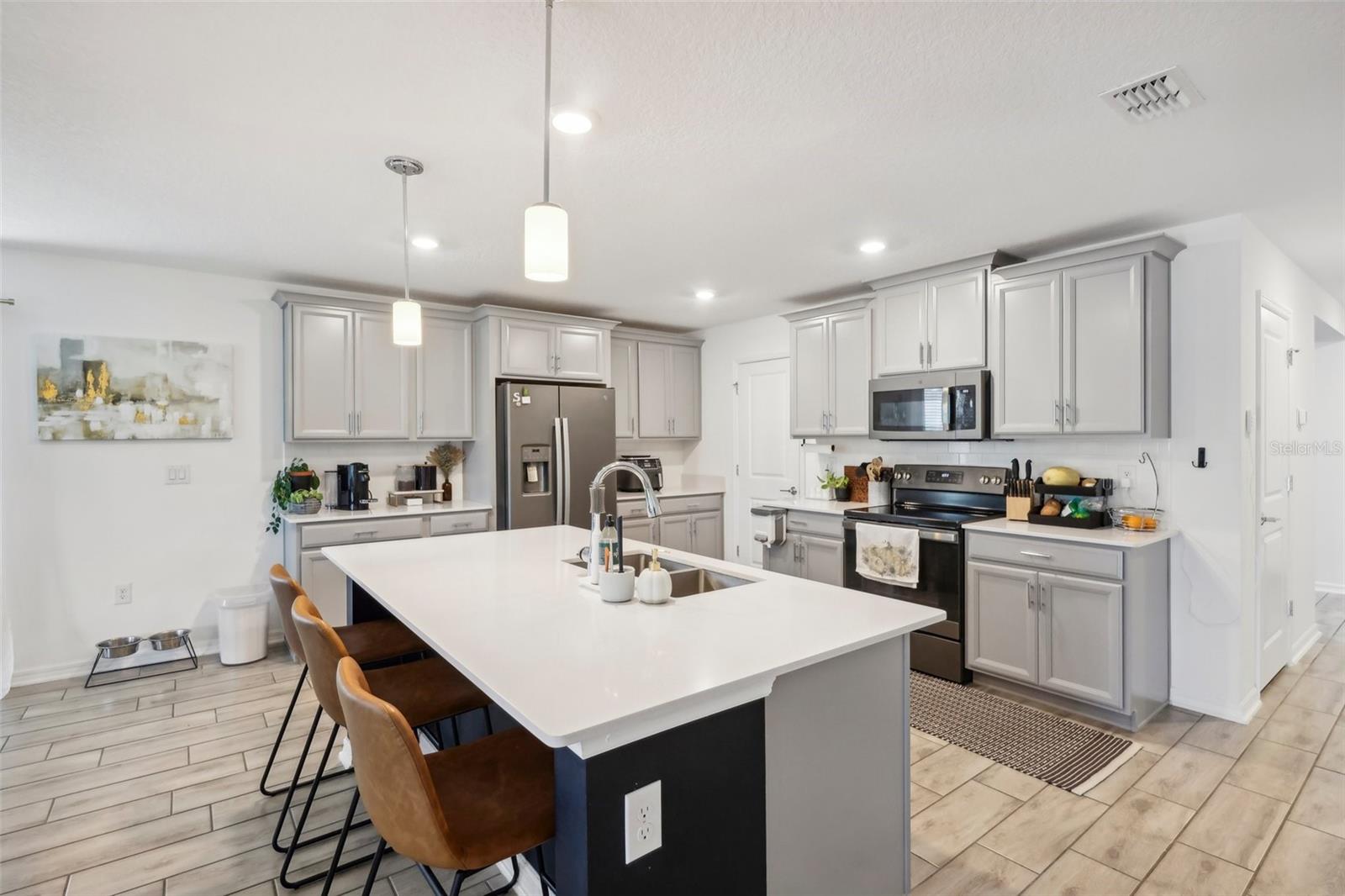Seller has an assumable loan at 2.98% This dream home is eligible for USDA financing. Situated in the Stoneybrook Hills community, located just 45 minutes from the lively city of Orlando. This remarkable 5-bedroom, 2.5-bathroom residence provides 2,898 sq ft of living space. Upon entering, you’ll be greeted by a bright and airy open floor plan, enhanced by modern ceramic plank tile and abundant natural light. A private office with a striking custom modern wall sits just off the foyer, providing a stylish and functional space for work or study. The heart of this home is the gourmet kitchen, designed with taupe cabinets adorned with crown molding, sleek stainless steel appliances, and elegant quartz countertops. A spacious eat-in island connects seamlessly to the dining and living areas, making it an entertainer’s dream. A sliding glass door leads to the backyard, extending your living space outdoors for gatherings and relaxation. The first-floor Primary Suite is a luxurious retreat, featuring new carpet, a generous walk-in closet, and a beautifully appointed ensuite bathroom. The ensuite includes dual vanities, ample storage, and a large walk-in shower for added convenience. Upstairs, a versatile loft area complements four additional bedrooms, providing ample space for family and guests. As part of the Stoneybrook Hills community, you’ll enjoy exclusive amenities including a park, playground, community pool, and tennis courts, all within a secure, gated environment. This home combines modern elegance with natural beauty, providing the perfect setting for both relaxation and entertaining. Don’t miss the opportunity to make this stunning property your own—schedule a visit today and experience all that this exceptional home has to provide.