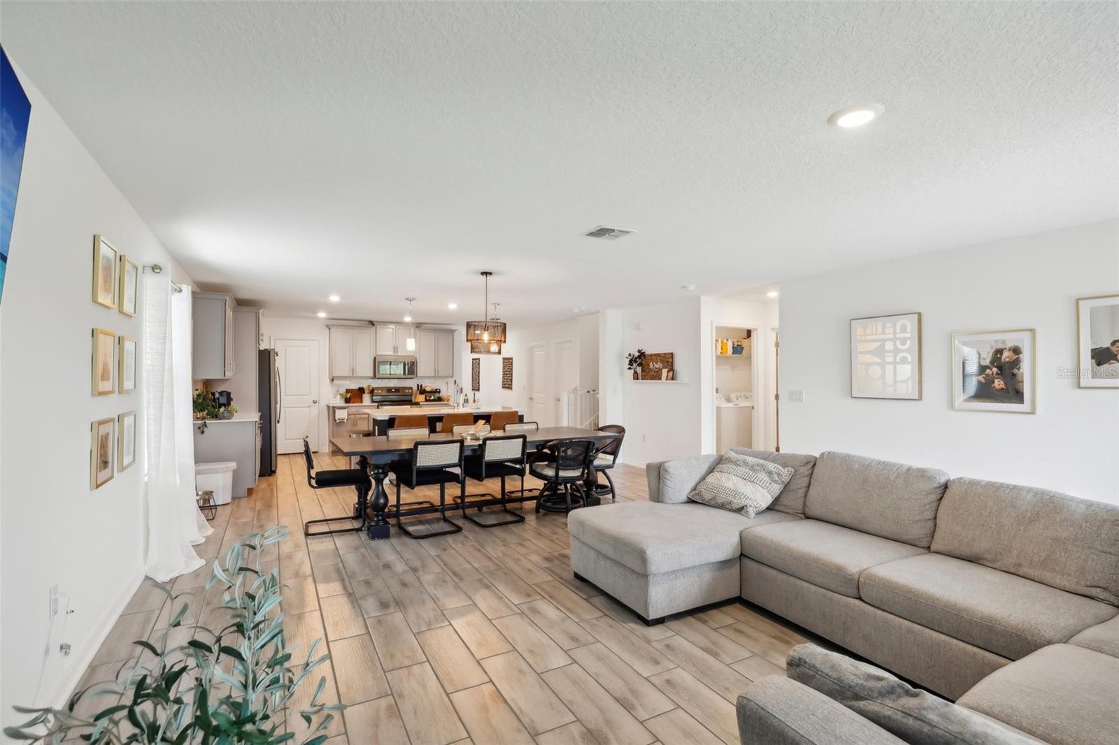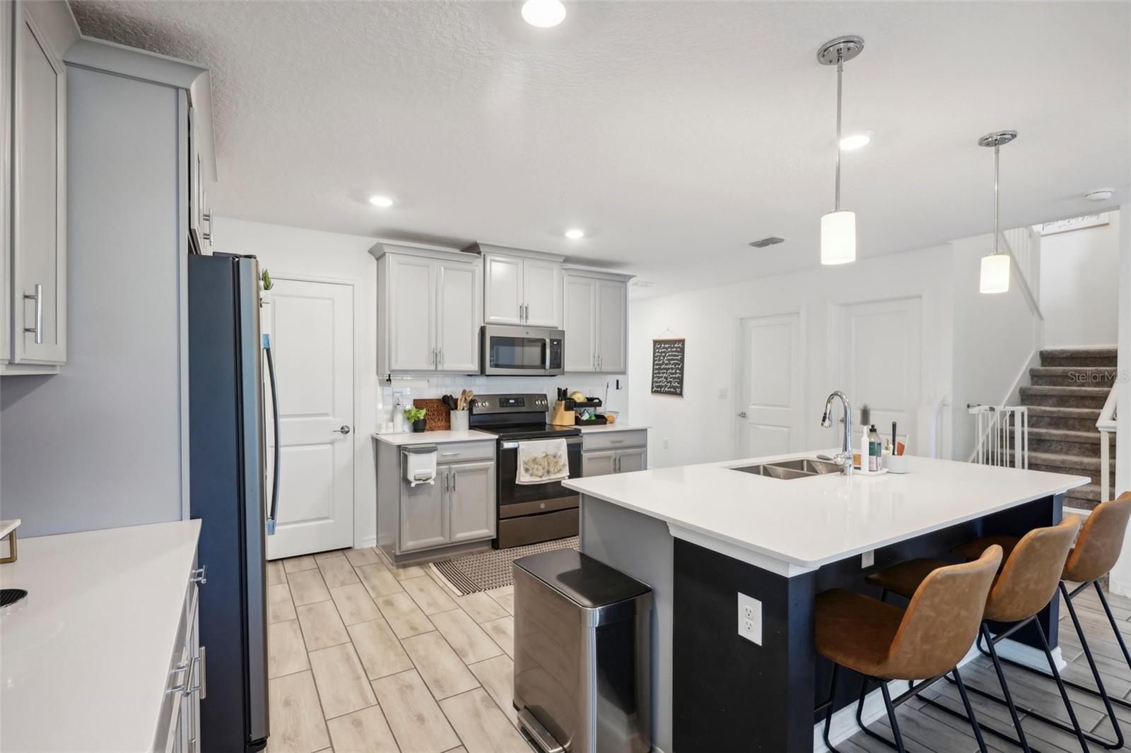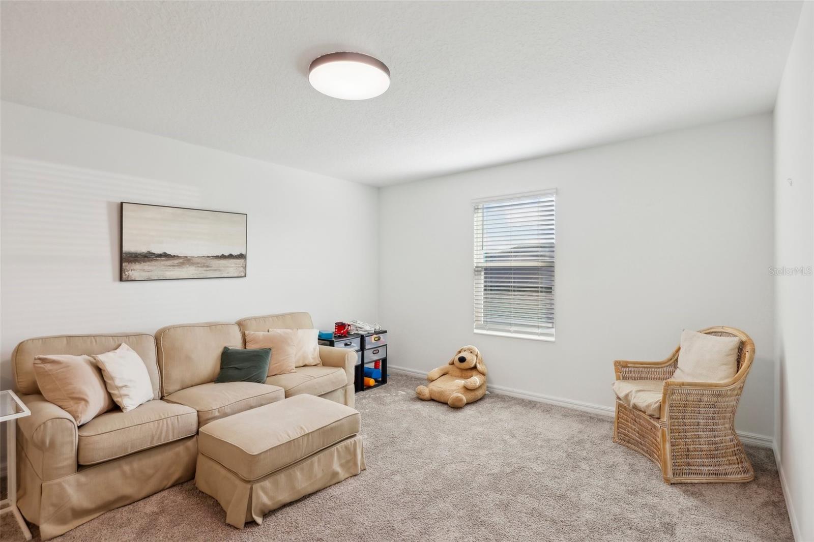 Seller has an assumable loan at 2.98% This dream home is eligible for USDA financing. Situated in the Stoneybrook Hills community, located just 45 minutes from the lively city of Orlando. This remarkable 5-bedroom, 2.5-bathroom residence provides 2,898 sq ft of living space. Upon entering, you’ll be greeted by a bright and airy open floor plan, enhanced by modern ceramic plank tile and abundant natural light. A private office with a striking custom modern wall sits just off the foyer, providing a stylish and functional space for work or study. The heart of this home is the gourmet kitchen, designed with taupe cabinets adorned with crown molding, sleek stainless steel appliances, and elegant quartz countertops. A spacious eat-in island connects seamlessly to the dining and living areas, making it an entertainer’s dream. A sliding glass door leads to the backyard, extending your living space outdoors for gatherings and relaxation. The first-floor Primary Suite is a luxurious retreat, featuring new carpet, a generous walk-in closet, and a beautifully appointed ensuite bathroom. The ensuite includes dual vanities, ample storage, and a large walk-in shower for added convenience. Upstairs, a versatile loft area complements four additional bedrooms, providing ample space for family and guests. As part of the Stoneybrook Hills community, you’ll enjoy exclusive amenities including a park, playground, community pool, and tennis courts, all within a secure, gated environment. This home combines modern elegance with natural beauty, providing the perfect setting for both relaxation and entertaining. Don’t miss the opportunity to make this stunning property your own—schedule a visit today and experience all that this exceptional home has to provide.