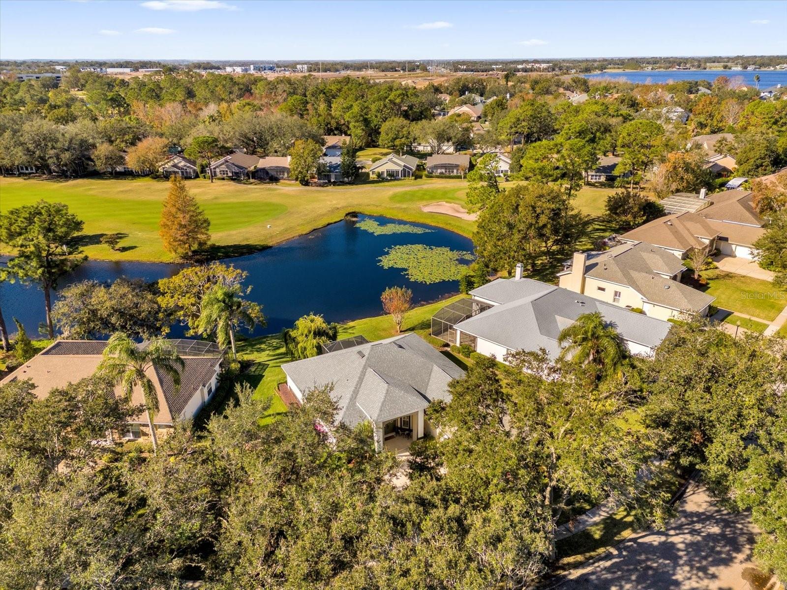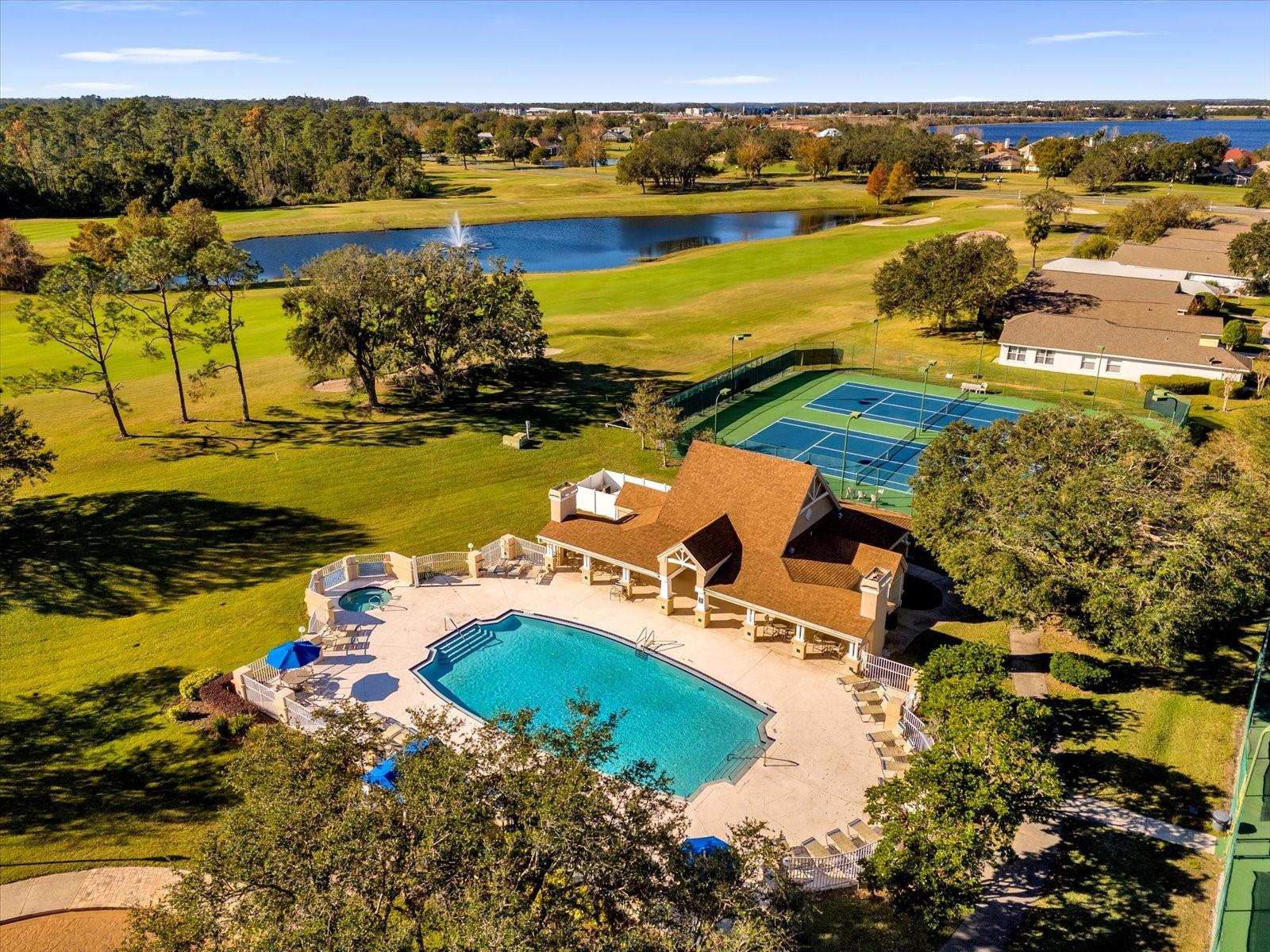 Modern Elegance with Stunning Pond Views in Mount Dora! This beautifully updated 2-bedroom, 2-bathroom (and a flexible office/third bedroom option) home. This gorgeous property offers over 2,058 sq. ft. of thoughtfully designed living space, combining modern updates, serene views, and a prime location in The Country Club of Mount Dora. Highlight Points: Unbeatable Views: Enjoy peaceful pond vistas from the brand-new screened lanai, the master suite, and the family room. A perfect retreat for relaxing mornings and sunsets. Stylish Modern Kitchen: Recently remodeled with granite countertops, sleek cabinetry, a spacious island, and premium appliances. Pullout pantry shelves and deep drawers add practicality and style. Luxurious Master Suite: Spacious bedroom with a view, a walk-in closet with custom organization, and a spa-like bathroom featuring a garden tub, double sinks, and a separate shower. Move-In Ready Updates: Fresh paint in a modern palette, high ceilings with crown molding, new laminate floors, and plush carpeting. Every detail has been carefully chosen. Prime Location: Nestled on a beautiful tree-lined street in The Country Club of Mount Dora, just minutes from downtown’s art festivals, quaint shops, and top-notch dining. Bonus Features: Flexible office or 3rd bedroom option. Oversized garage with attic access and overhead storage. Light-filled interiors with plantation shutters throughout. Community Amenities: Optional club membership provides access to an 18-hole golf course, pickleball and tennis courts, a swimming pool, and a lively clubhouse. This home offers everything you need: style, comfort, and location. Don’t wait—schedule your private showing today and make this dream home yours!