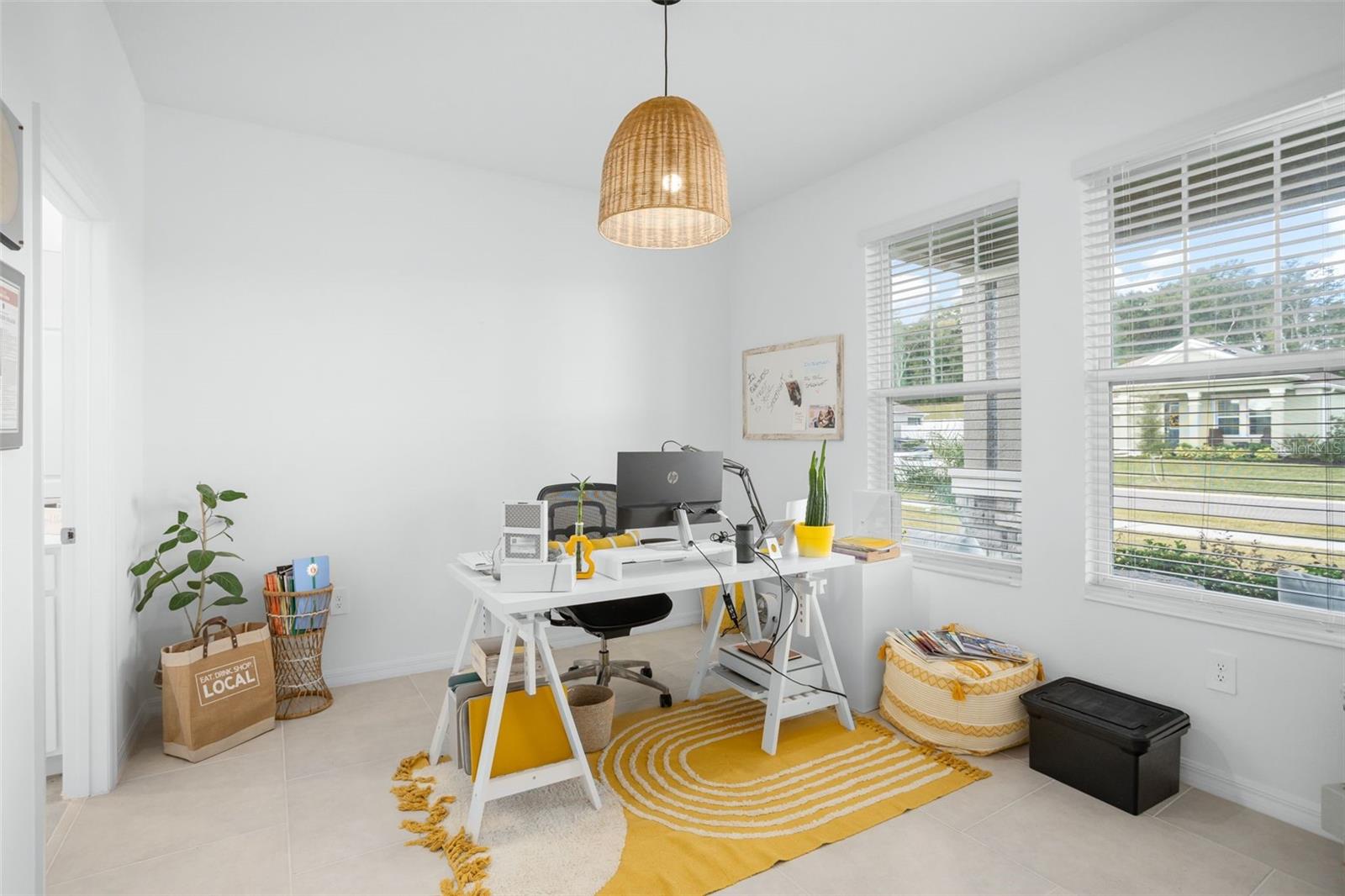 MOTIVATED SELLER. This home is a MUST SEE! Professional interior design, and $40,000 worth of upgrades on top of this newly constructed showcase home. Featuring four bedrooms, an office, three baths, and a three-car garage, this home boasts floods of natural light and an open floor plan, ideal for entertaining. The welcoming extended foyer greets guests as it transforms you into the serene and stylish backdrop of the professionally designed interior. The kitchen boasts a large stone island that seats four, with state-of-the-art appliances, inlaid sink and a separate dining area overlooking the expansive family room. The sleek kitchen backsplash, paired with newly tiled accents, creates modern and welcoming cooking space that will delight the chef in your family. The living room leads to a beautiful covered patio where you can enjoy breathtaking backyard views with no rear neighbors, backing up to a nature preserve. The sprawling living room features a striking 3D luxury accent wall, professionally designed and installed by Samantha’s Walls. The home includes high-quality tile flooring throughout, including all bedrooms for a seamless, contemporary look. Custom-built in closet systems in all bedrooms for optimal organization and the curated lifestyle you’ve been searching for. A bonus and versatile fifth room is ideal for a recording studio, office, playroom or additional guest suite. The owner's suite features a spa-inspired en-suite bath with a walk-in shower and double vanity, and dual sinks. Massive walk-in closet offers tons of storage and additional luxury for the discerning owner. Serene limewash paint accent walls and large energy efficient windows for a light and bright space, the owner’s wing sets this home apart. The durable polyurea garage floor and custom garage closet add functionality and style to your storage needs. This cost-effective solar single-family home provides home automation with smart home features like keyless door locks and video doorbells. Enjoy connectivity with no dead spots, green building features that save you money and help the environment, such as new energy-conscious appliances. In Mount Dora, Florida, just minutes from the charming downtown area, U.S. 441 and Florida 429, the hospital and Orange County Schools. Stoneybrook Hills is an amenity-rich community ideal for your family. Amenities include a fitness center, resort-style swimming pool, playground, tennis court, basketball court, baseball field and a staffed community.
