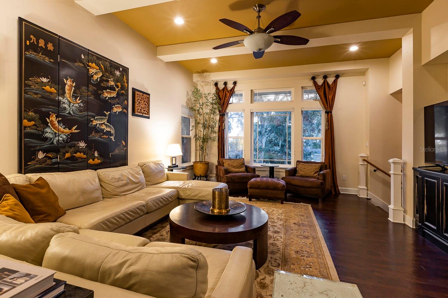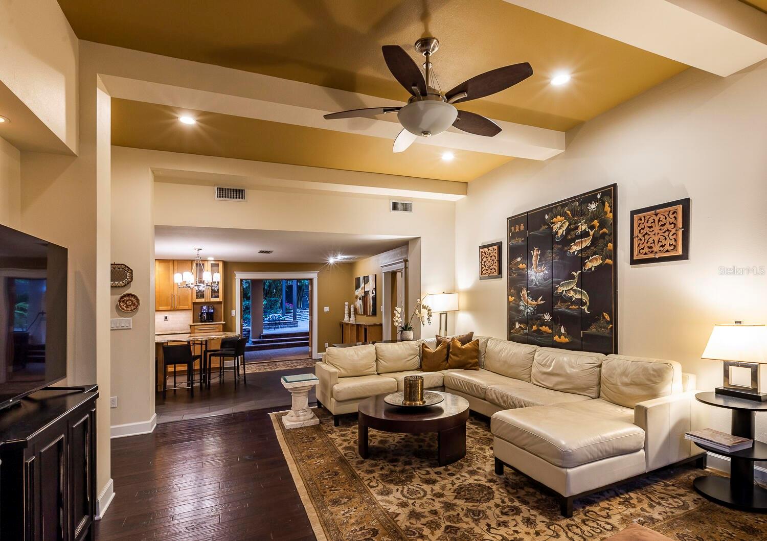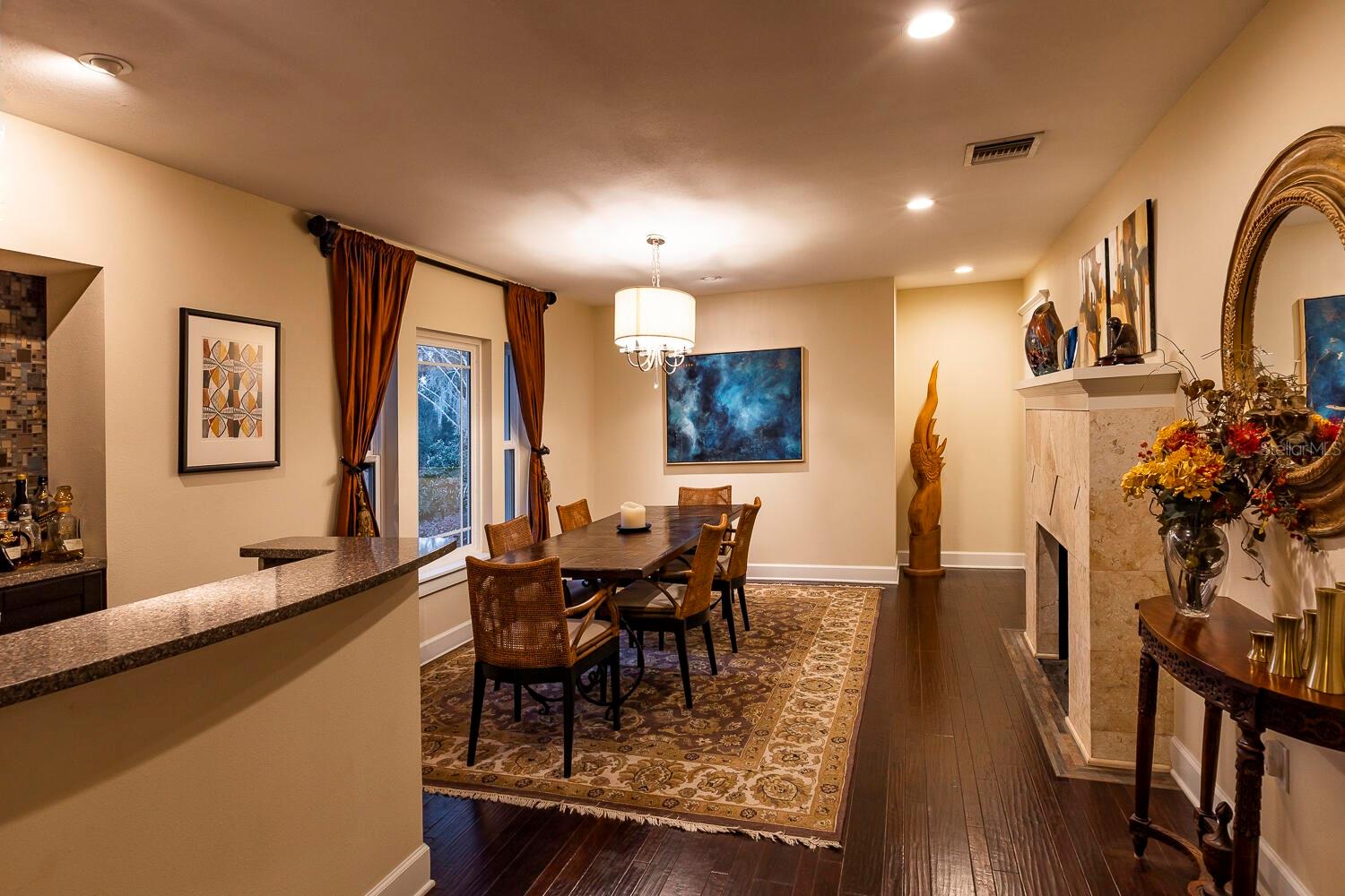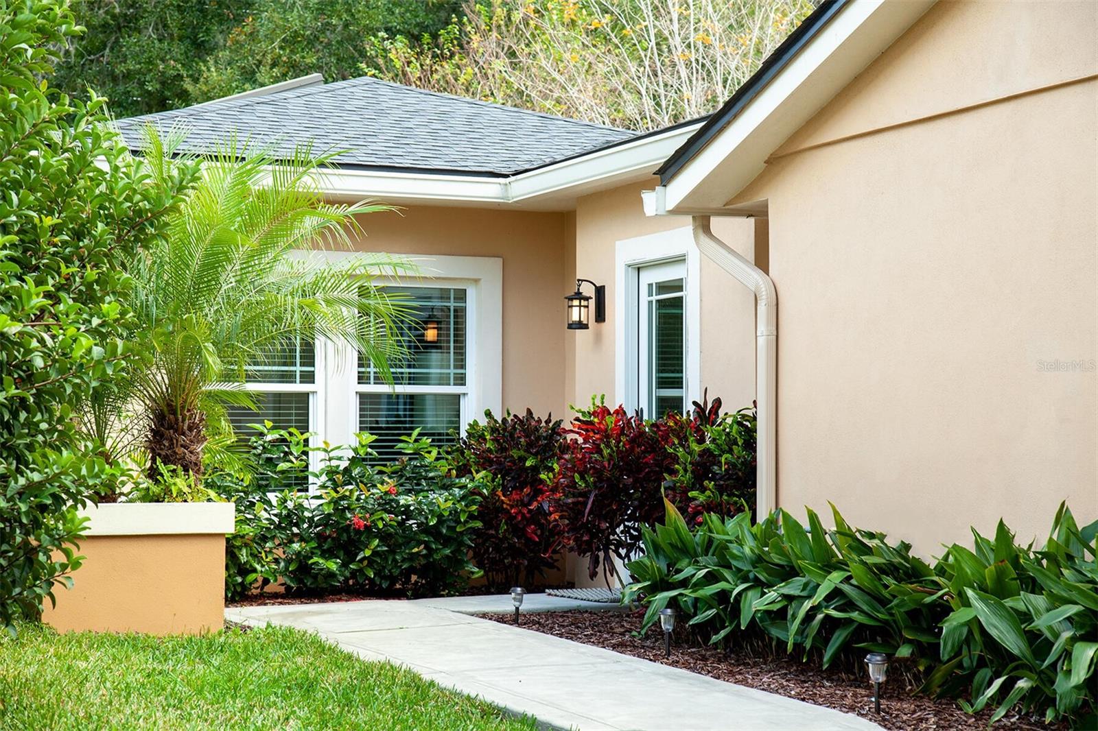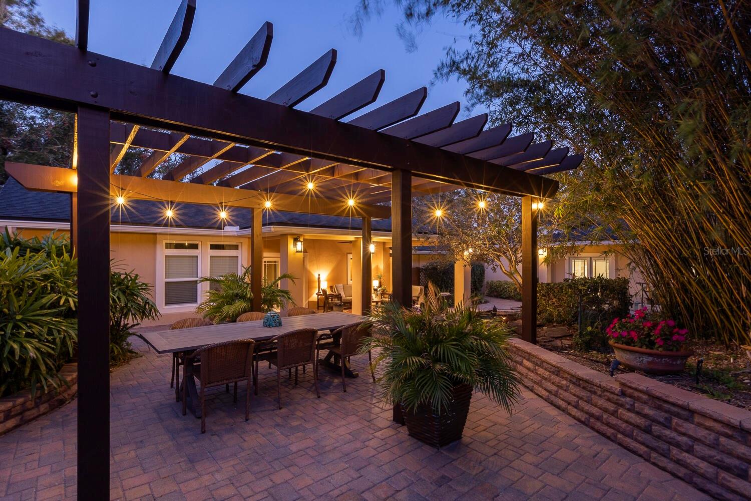 Courtyard home with In-law suite in the desirable Lake Gertrude neighborhood, one block from the scenic lakeside walking path. This is a custom home. The main home is 3 bd / 2 baths, with an attached in-law suite 1 bd / 1 bath, for a total of 3268 SF. The home was fully renovated in 2014 and the in-law suite was built in 2016. All work was permitted and built to code, including structural improvements throughout and high efficiency items: insulation, doors and windows. High efficiency A/C's were added in 2023. The efficiency features, including an irrigation well, contribute to a low monthly utility bill of approx. $250. This courtyard home with In-Law suite features a large double lot with a front circular driveway and a large rear driveway on normandy drive with an EV/RV charging receptacle. The home has a split floor plan. The foyer steps up to the living room with 11 ft high ceilings and large windows viewing an oak tree canopy. The dining room has a fireplace and a wet bar with quartz countertops and refrigerator with an ice maker. The kitchen has a skylight and features granite countertops, large island, a walk-in pantry, gas range and stainless appliances. Double french doors open to the rear porch. The primary suite features a high tray ceiling and the bedroom and bath are spacious. There are his & hers closets, a linen closet, soaking tub, shower and a toilet room. The split plan's second bedroom is currently used by the homeowner as an office and features built-ins for storage. The third bedroom is currently used as an exercise room and features an infrared sauna. The hall bath has a french door to a private courtyard with an outdoor shower. The laundry room has an adjacent multi-purpose closet. Additional closets are a coat closet, second linen closet and a 7x10 storage room off the courtyard. The resort style outdoor area is great for entertaining or relaxing. There is a large rear porch open to the terraced patio, courtyard, dining pergola and hot tub surrounded by tropical foliage. A tranquil water feature in natural stone has a babbling brook cascading to the lower pond and is surrounded by lush bamboo. The in-law suite or multi-generational suite is attached to the main house and has two entries. The front side entry has a foyer, and the rear courtyard is accessed by double french doors. The suite has high ceilings with a living room skylight, dining area and kitchenette with quartz countertops, custom cabinetry and stainless appliances. Double doors open to the bedroom built-in with a desk area and additional storage. There is an extra large closet and private bath with a large shower and two shower heads. This suite was originally used as an in-law suite and most recently used as an airbnb. This custom home has premium finishes throughout, wood floors, granite kitchen countertops, porch ceilings finished with T&G cypress and is energy efficient. This is an exceptionally well maintained custom home and has unique outdoor areas created for Florida living.