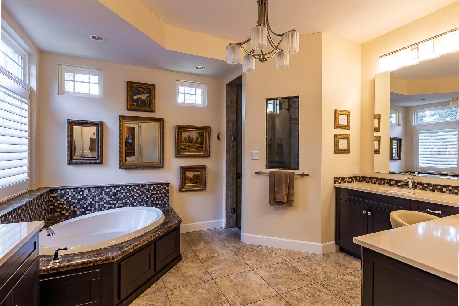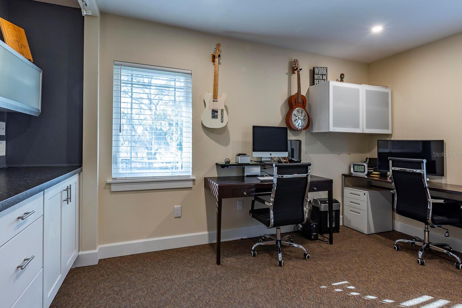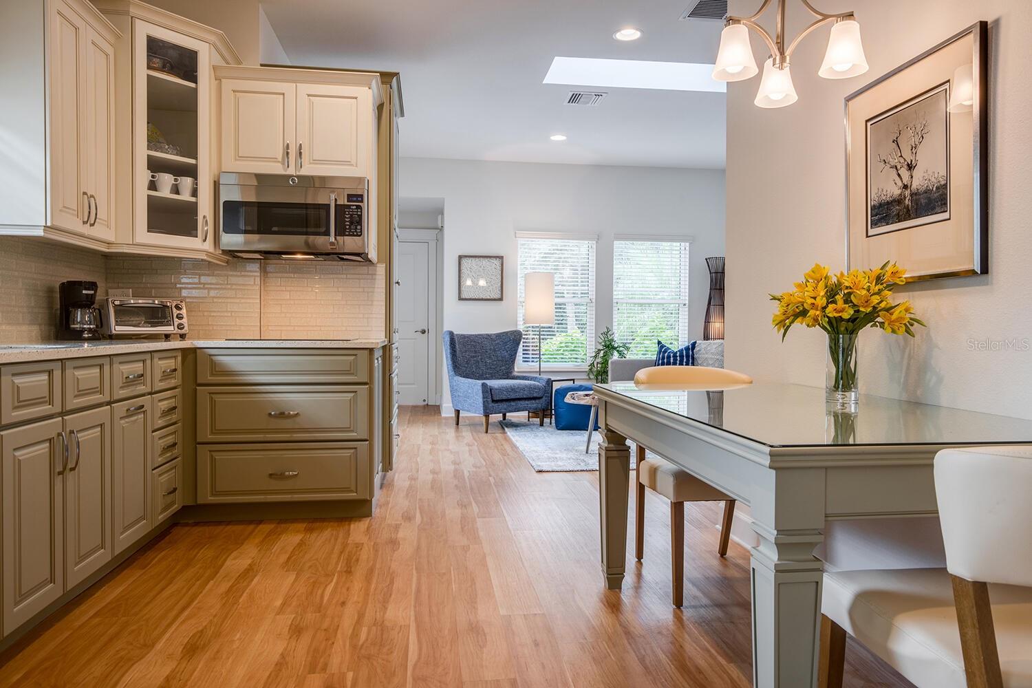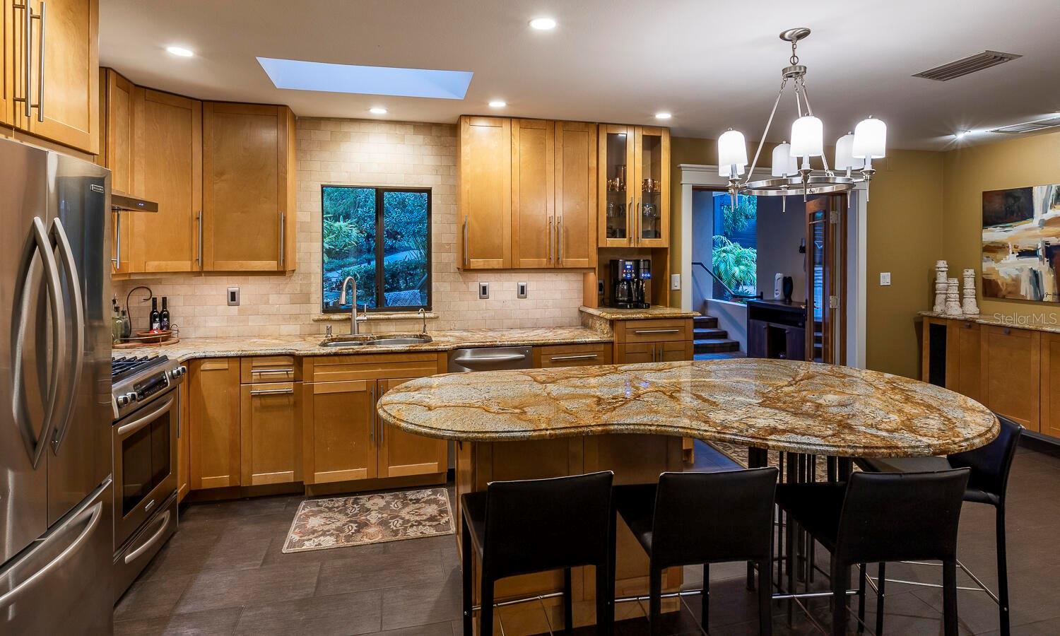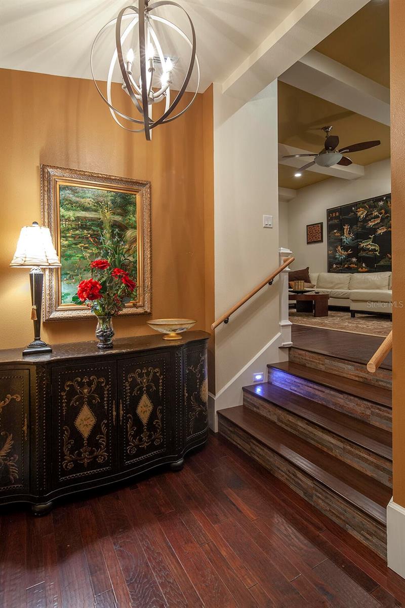 Courtyard home with In-law suite in the desirable Lake Gertrude neighborhood, one block from the scenic lakeside walking path. This is a custom home. The main home is 3 bd / 2 baths, with an attached in-law suite 1 bd / 1 bath, for a total of 3268 SF. The home was fully renovated in 2014 and the in-law suite was built in 2016. All work was permitted and built to code, including structural improvements throughout and high efficiency items: insulation, doors and windows. High efficiency A/C's were added in 2023. The efficiency features, including an irrigation well, contribute to a low monthly utility bill of approx. $250. This courtyard home with In-Law suite features a large double lot with a front circular driveway and a large rear driveway on normandy drive with an EV/RV charging receptacle. The home has a split floor plan. The foyer steps up to the living room with 11 ft high ceilings and large windows viewing an oak tree canopy. The dining room has a fireplace and a wet bar with quartz countertops and refrigerator with an ice maker. The kitchen has a skylight and features granite countertops, large island, a walk-in pantry, gas range and stainless appliances. Double french doors open to the rear porch. The primary suite features a high tray ceiling and the bedroom and bath are spacious. There are his & hers closets, a linen closet, soaking tub, shower and a toilet room. The split plan's second bedroom is currently used by the homeowner as an office and features built-ins for storage. The third bedroom is currently used as an exercise room and features an infrared sauna. The hall bath has a french door to a private courtyard with an outdoor shower. The laundry room has an adjacent multi-purpose closet. Additional closets are a coat closet, second linen closet and a 7x10 storage room off the courtyard. The resort style outdoor area is great for entertaining or relaxing. There is a large rear porch open to the terraced patio, courtyard, dining pergola and hot tub surrounded by tropical foliage. A tranquil water feature in natural stone has a babbling brook cascading to the lower pond and is surrounded by lush bamboo. The in-law suite or multi-generational suite is attached to the main house and has two entries. The front side entry has a foyer, and the rear courtyard is accessed by double french doors. The suite has high ceilings with a living room skylight, dining area and kitchenette with quartz countertops, custom cabinetry and stainless appliances. Double doors open to the bedroom built-in with a desk area and additional storage. There is an extra large closet and private bath with a large shower and two shower heads. This suite was originally used as an in-law suite and most recently used as an airbnb. This custom home has premium finishes throughout, wood floors, granite kitchen countertops, porch ceilings finished with T&G cypress and is energy efficient. This is an exceptionally well maintained custom home and has unique outdoor areas created for Florida living.