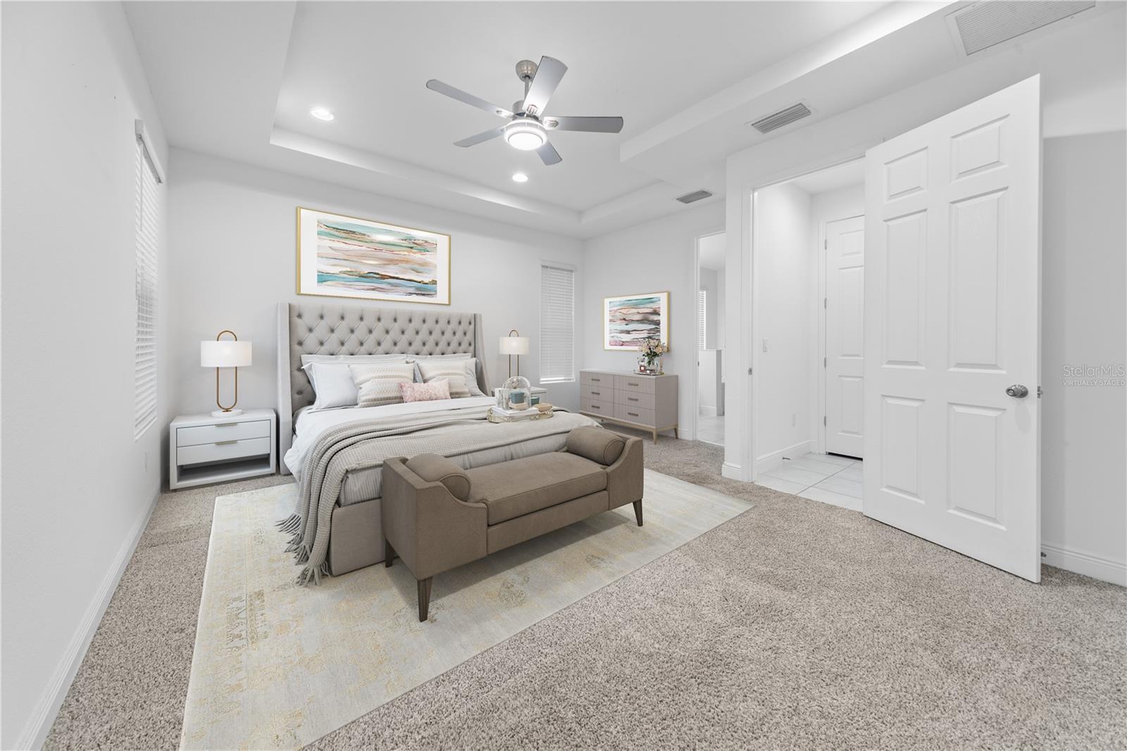 One or more photo(s) has been virtually staged. BACK ON THE MARKET – MOVE-IN READY LUXURY. Stunning 5-Bedroom + Office | Resort-Style Saltwater Pool & Spa. Welcome to 4897 Gilded Jewel Dr. This beautifully upgraded, solar-powered elegant home. Set on an expansive 0.40-acre lot, featuring 5-bedroom, 4-bathroom home also features a dedicated office—ideal for remote work or a quiet study. Step inside to soaring 9'4" ceilings, elegant 8' interior doors, and an abundance of natural light. Every bedroom includes custom closet systems, ensuring thoughtful storage and organization throughout. Assumable solar system — say goodbye to power bills. Resort-style, gas-heated saltwater pool & spa with ample space for lounging and entertaining. Gourmet kitchen with a massive 13' island, quartz countertops, 42" cabinetry with crown molding, pantry with custom-built-ins, double ovens, and premium gas appliances. Electric vehicle ready — power supply already installed, just plug in your EV. Open-concept design with high-end finishes throughout. Sprawling backyard with endless outdoor possibilities for gatherings, play, or relaxation. Whether you're hosting a pool party or enjoying a quiet night under the stars, this home truly feels like home. With energy efficiency, smart design, and timeless style, this is your chance to own a true gem.