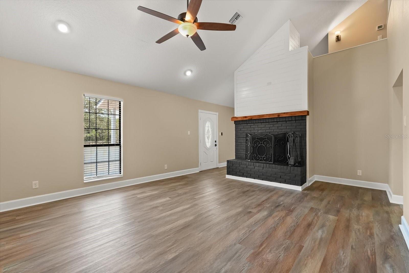 One or more photo(s) has been virtually staged. 5 acres of high and dry cleared property to house your dreams: Fenced areas all around and within the property. Two entrance gates in the front, and one on the side with access to Meadowland Drive. And when you want, relax to enjoy the fully resurfaced open-aired pool with all-new equipment, a sun deck, and the screened back porch, with the privacy of your nearest neighbor being 300’ away! Stepping into your house, be at ease, it has just been FULLY remodeled inside: New paint, new warm-wood color LVP flooring throughout with white wood accents on the stairs, totally new bathrooms, and everything in the kitchen is brand new: stainless appliances, cabinets to the ceiling, and quartz countertops. You’ll LOVE the timeless wood-burning brick fireplace in the center of the house. Outside you have a 2025 roof and its freshly painted! A/C: 2020. Come and see this place before someone else takes it off the market- Its definitely a gem that will not last long!