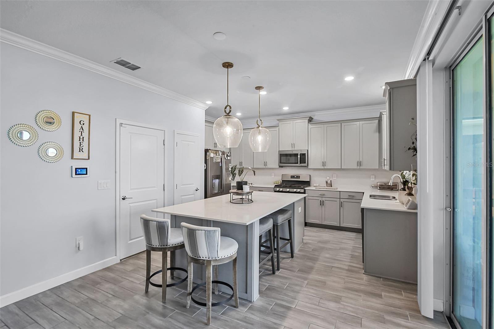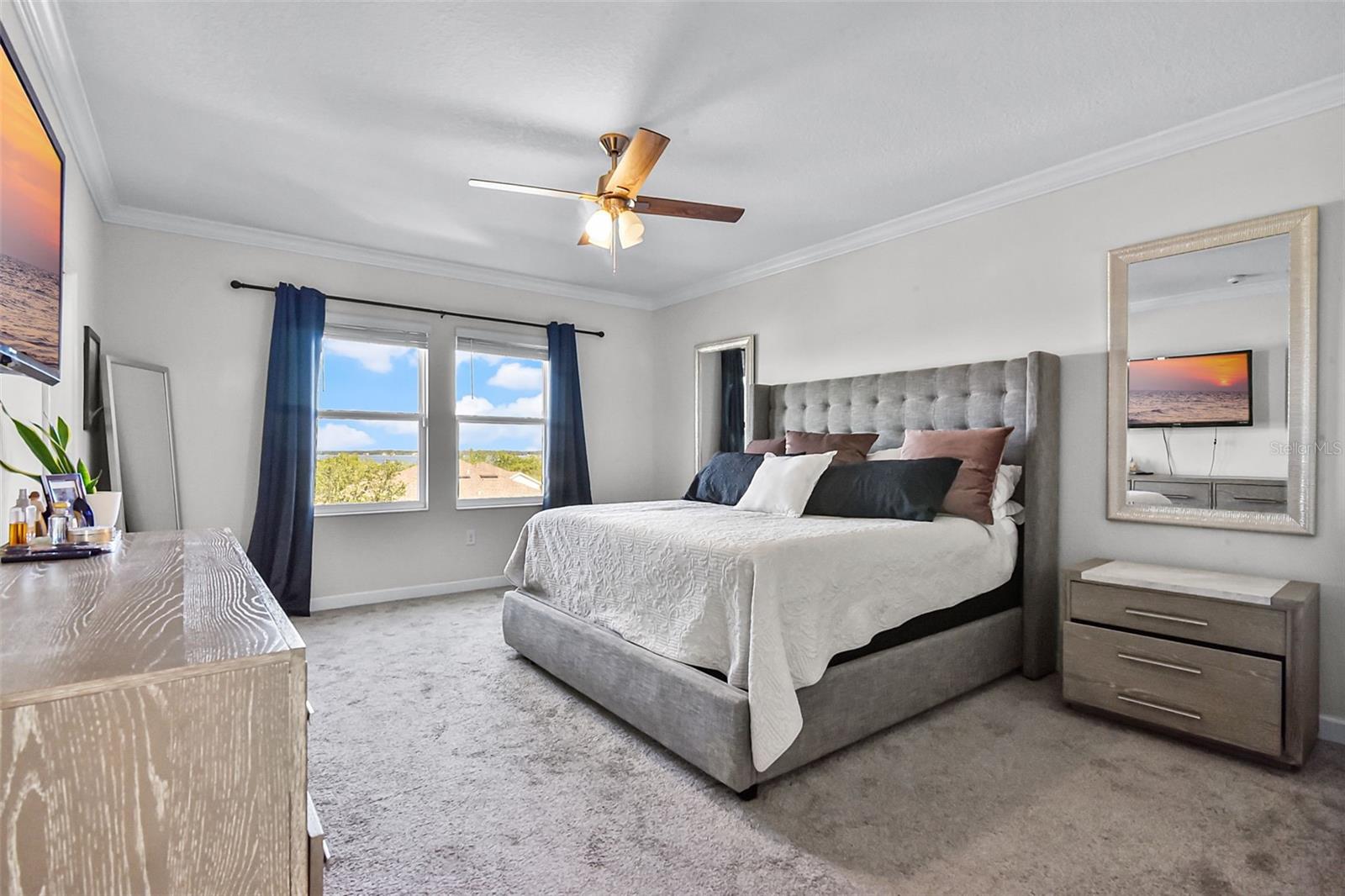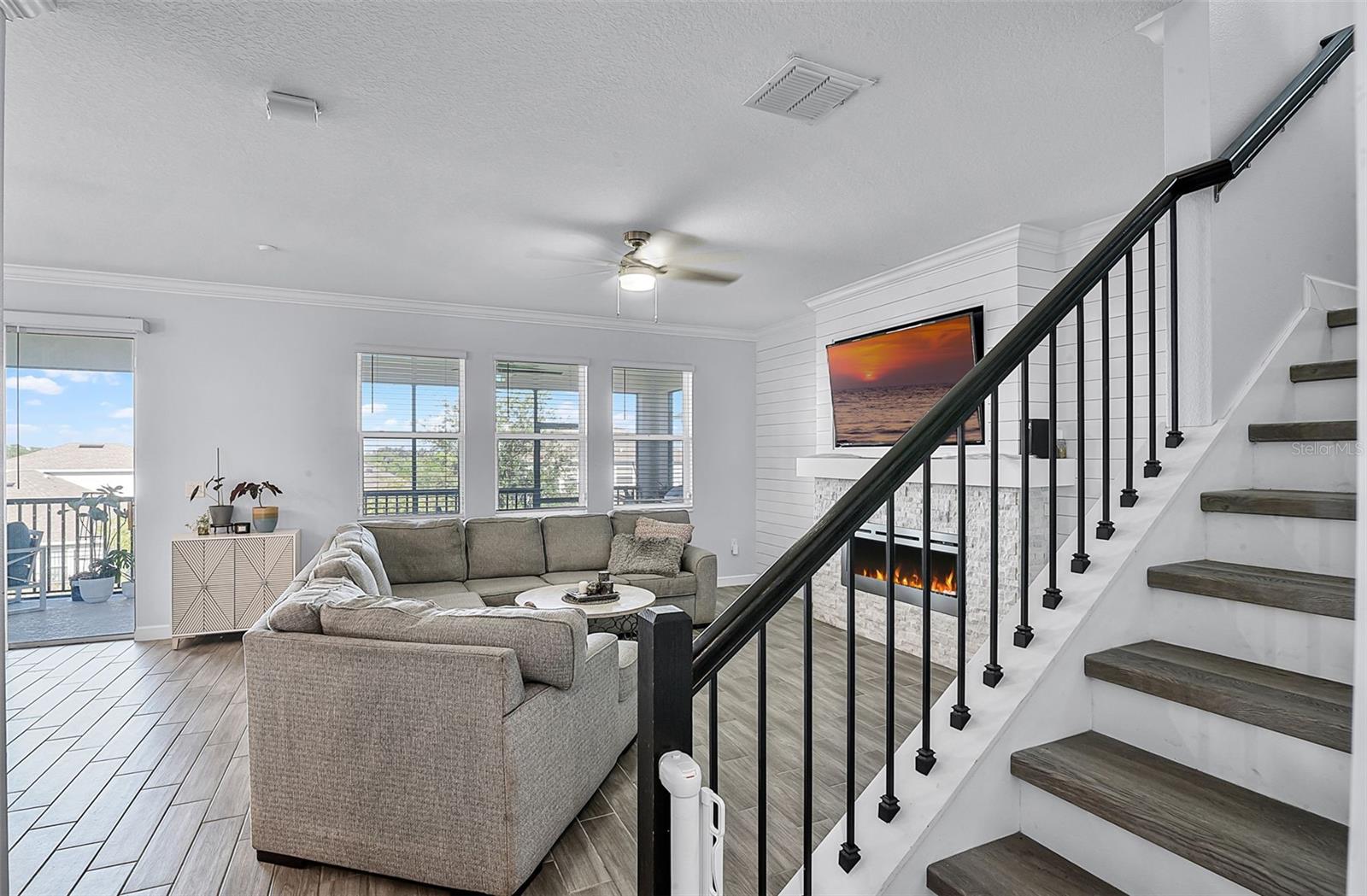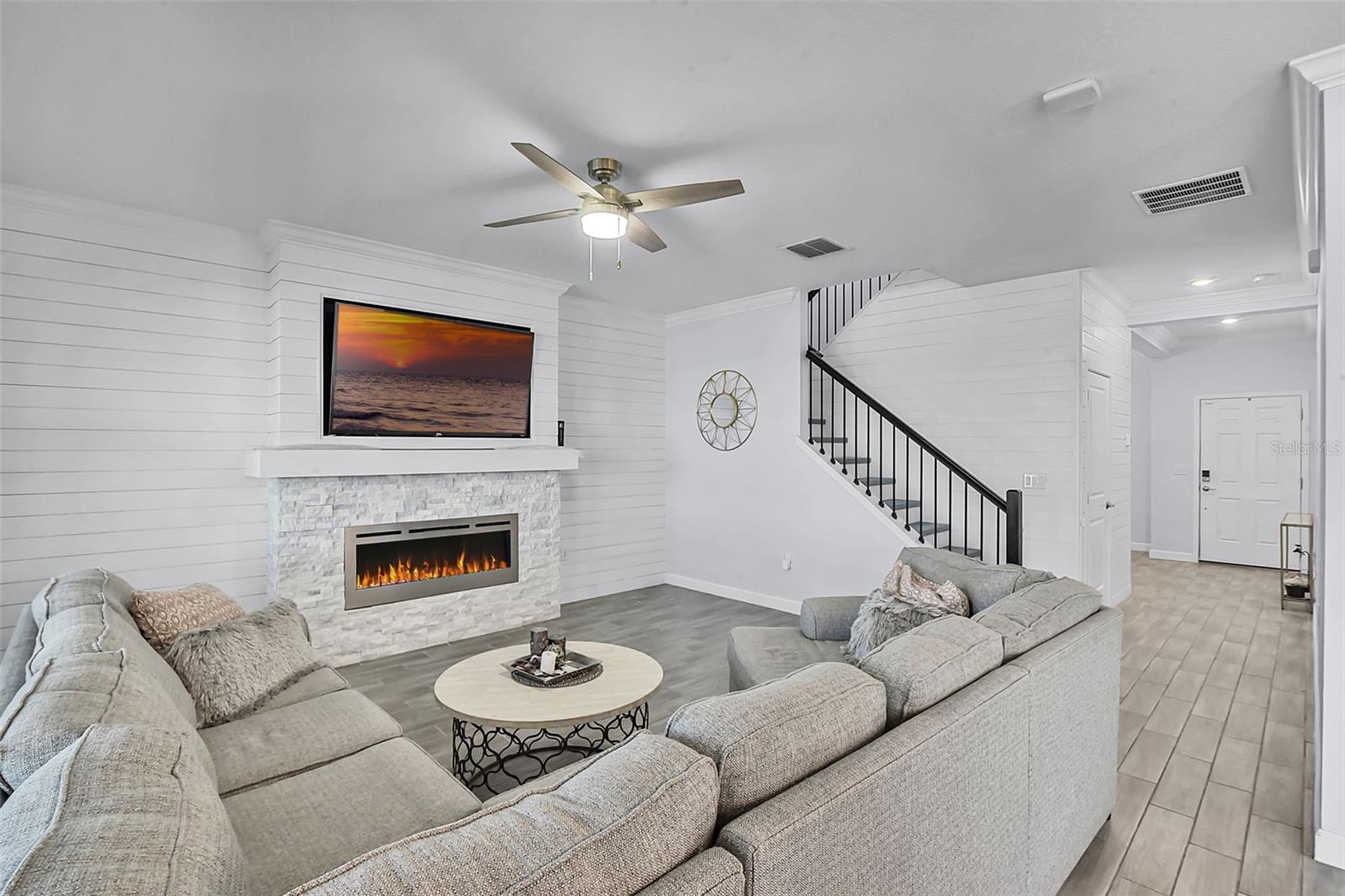 Welcome to your dream home in the highly desirable Dora Parc community of Mount Dora, Florida — where lakeside living meets elegance and convenience. Just steps away from the vibrant heart of downtown and the sparkling shores of Lake Dora, this beautifully upgraded 2,321 sq ft residence is a rare opportunity to own in one of Central Florida’s most charming waterfront communities with some of the most AMAZING sunsets! Built in 2020 and freshly painted interior in late 2024, this home boasts two spacious living areas, perfect for both relaxation and entertaining. Custom crown molding, shiplap detailing, and a striking stone FOE electric fireplace heater with a built-in TV nook create a warm and inviting ambiance throughout. The heart of the home is the expansive chef’s style kitchen, complete with a custom island that seats six, gas stove, and premium finishes — an entertainer’s paradise. The oversized garage easily accommodates a 21-foot bass boat, and includes a Tesla charger, making it both functional and future-ready. Step outside to a massive covered lanai that stretches across the entire back of the home, offering partial lake views and overlooking a beautifully landscaped garden — with plenty of room to build your dream pool. Upstairs, you’ll wake up to breathtaking Lake Dora views from every rear window, creating a daily sense of peace and escape. Enjoy walking or kayaking along the community’s lakeside catwalk, and take advantage of easy access to the boat ramp, parks, and downtown Mount Dora's festivals, shops, and dining near by. This is more than a home — it’s a lifestyle. Come experience lakeside luxury at Dora Parc. Owner is the Listing Agent. Home is also available for rent!