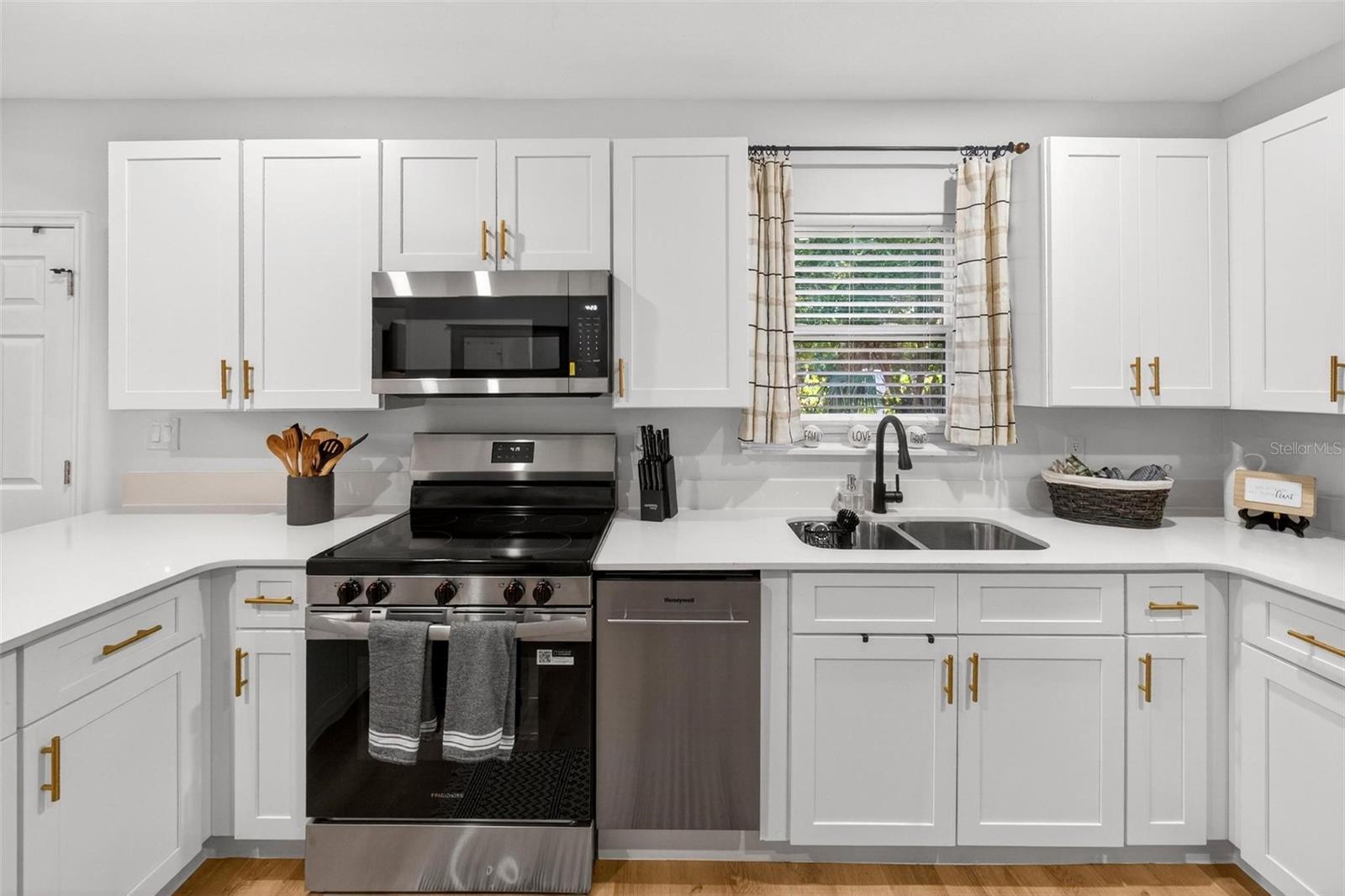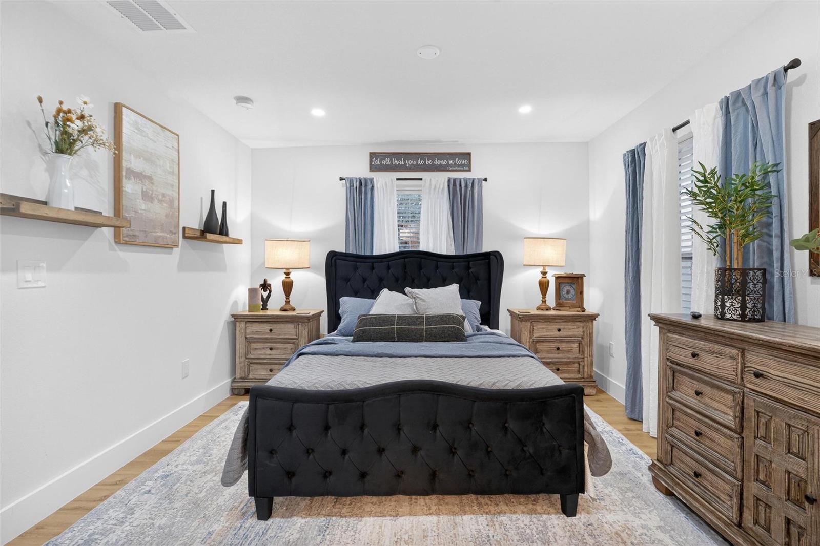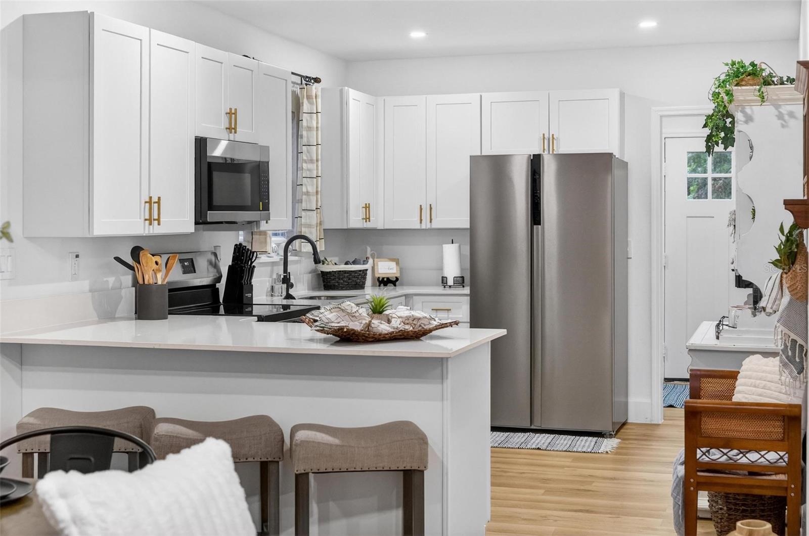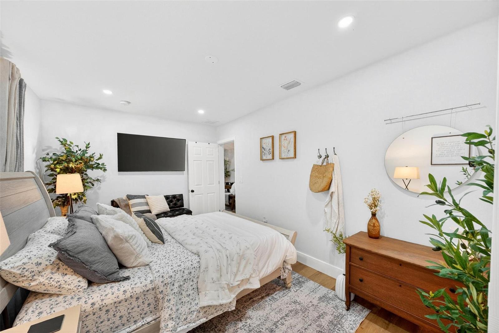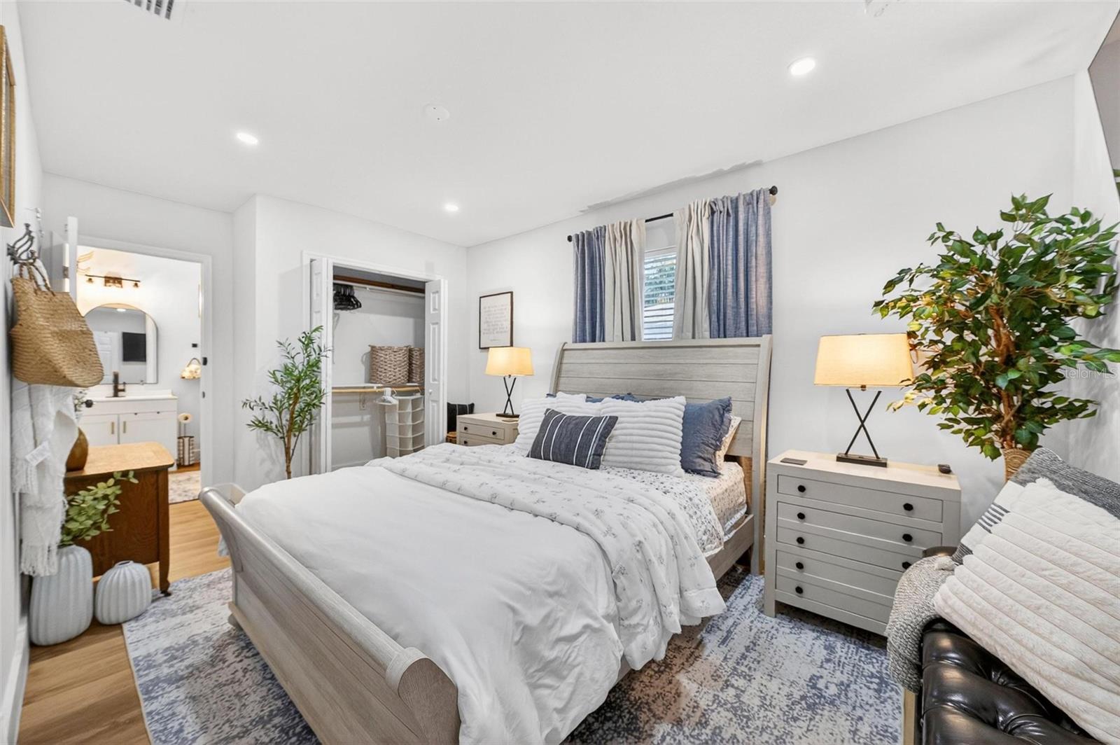 Set on a one-third acre lot just one block from N. Donnelly Street, this thoughtfully updated single-story home places you minutes from downtown Mount Dora’s shops, lakeside dining, art festivals, and antique markets while offering space, privacy, and modern comfort, permitted and fully renovated in 2024 with a metal roof, updated plumbing and electrical, new A/C, new windows, and an added bathroom, featuring light brown luxury vinyl plank flooring throughout, an open-concept living and dining area with a cathedral ceiling and recessed LED lighting that creates an airy, light-filled atmosphere, a refreshed kitchen with shaker cabinetry, stylish gold hardware, quartz-style countertops, and stainless steel appliances, two primary bedroom suites providing flexible living arrangements, an interior laundry and oversized utility room with washer and dryer hookups, tankless water heater, and additional storage or mudroom potential, completely remodeled bathrooms including a walk-in shower and a bath and shower combination, a covered front porch, a newly installed red brick driveway, and an expansive yard with ample space for boat parking and Class A RV parking, with furnishings negotiable, all located in one of Central Florida’s most charming historic communities approximately 40 minutes from Orlando.