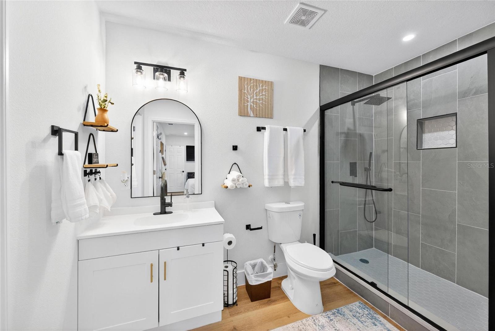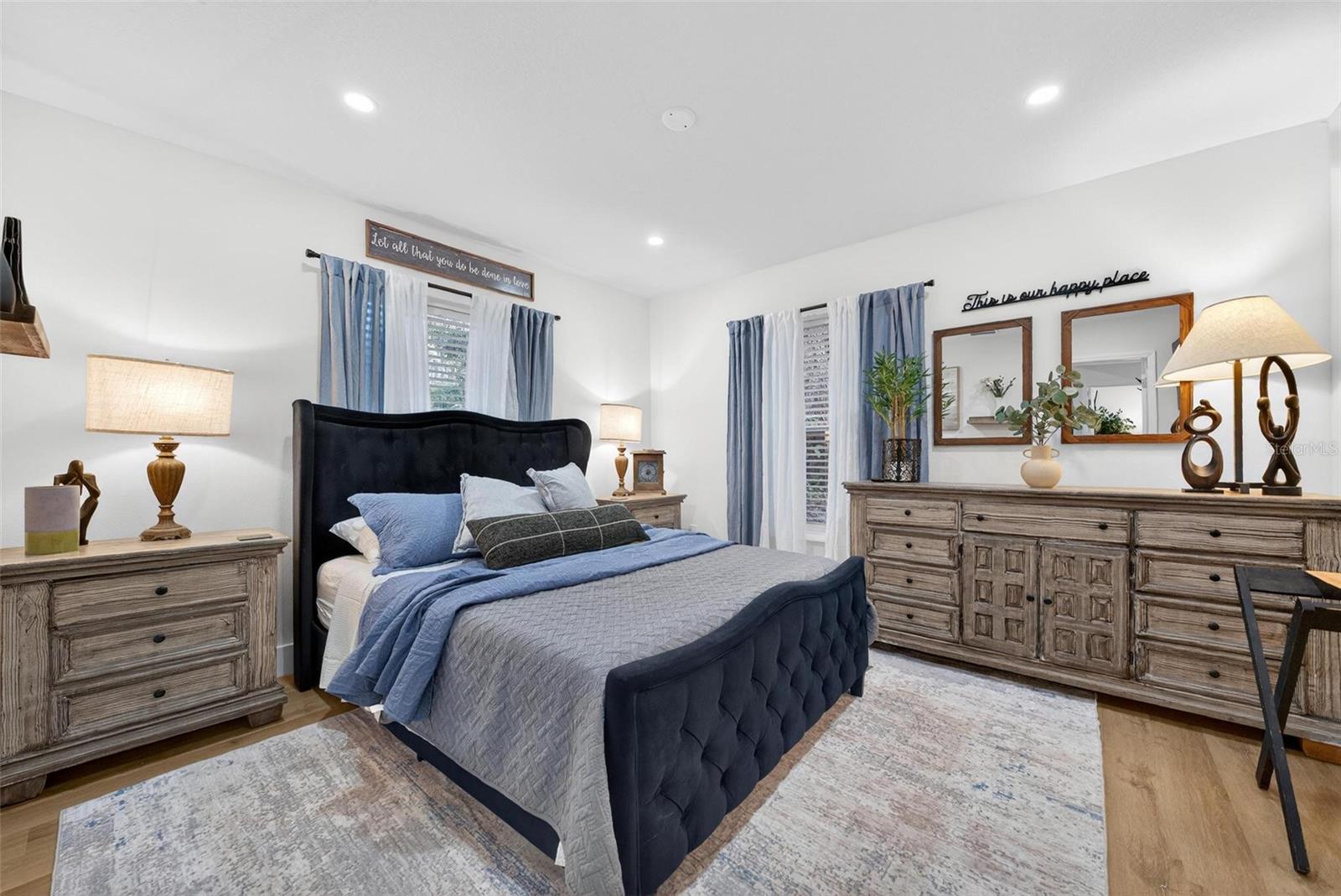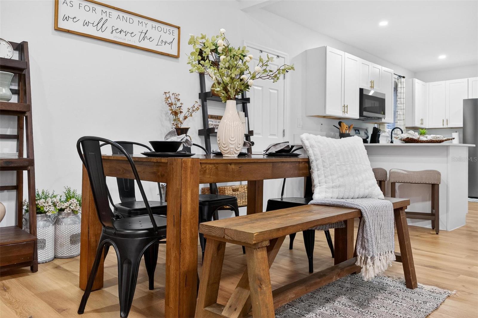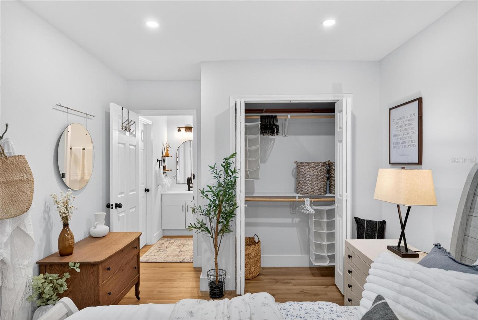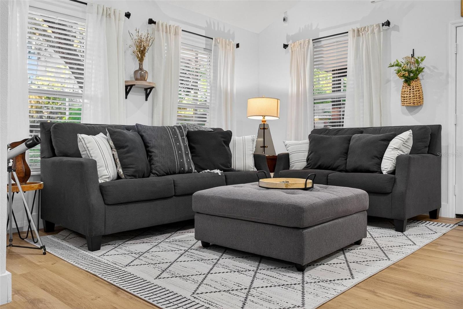 Set on a one-third acre lot just one block from N. Donnelly Street, this thoughtfully updated single-story home places you minutes from downtown Mount Dora’s shops, lakeside dining, art festivals, and antique markets while offering space, privacy, and modern comfort, permitted and fully renovated in 2024 with a metal roof, updated plumbing and electrical, new A/C, new windows, and an added bathroom, featuring light brown luxury vinyl plank flooring throughout, an open-concept living and dining area with a cathedral ceiling and recessed LED lighting that creates an airy, light-filled atmosphere, a refreshed kitchen with shaker cabinetry, stylish gold hardware, quartz-style countertops, and stainless steel appliances, two primary bedroom suites providing flexible living arrangements, an interior laundry and oversized utility room with washer and dryer hookups, tankless water heater, and additional storage or mudroom potential, completely remodeled bathrooms including a walk-in shower and a bath and shower combination, a covered front porch, a newly installed red brick driveway, and an expansive yard with ample space for boat parking and Class A RV parking, with furnishings negotiable, all located in one of Central Florida’s most charming historic communities approximately 40 minutes from Orlando.
