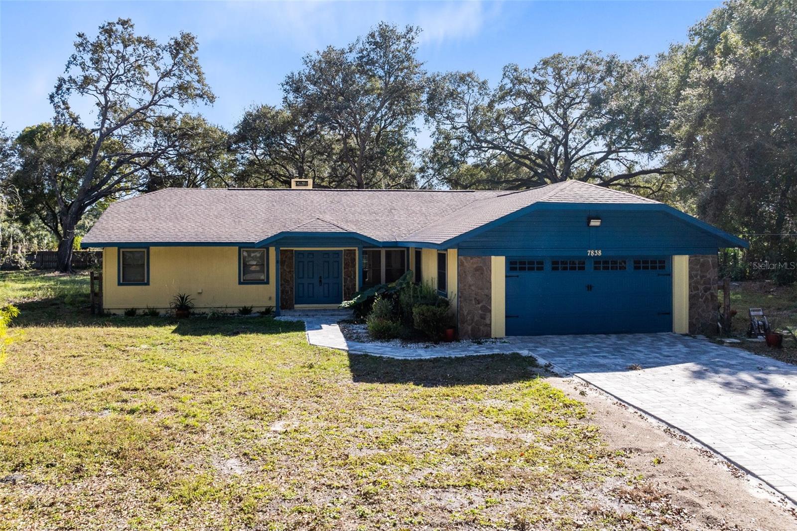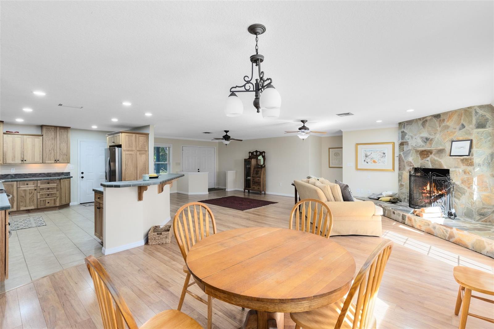 Move-in ready and thoughtfully updated, this Mount Dora home features a recently paved, drained, and expanded driveway, fresh interior and exterior paint, a roof replaced in 2020, A/C in 2021, drainage improvements completed in 2016, and a new tankless water heater. The open floor plan offers laminate flooring, a flexible dining or office space, a spacious living room with a wood-burning fireplace, and a kitchen that flows into a dinette/breakfast nook. The private primary suite, located on the left side of the home, includes tile flooring, three walk-in closets, an open handicap-accessible shower, a washer and dryer mounted inside one of the walk-in closets (with original hookups still in the garage), and a porch off the bedroom for a peaceful retreat. Two additional bedrooms and a second full bath are located on the opposite side of the home. The backyard has been fully cleared and is ideal for outdoor enjoyment with an open rear patio, a screened-in covered patio, and a gazebo with stone flooring—perfect for entertaining or relaxing year-round.
