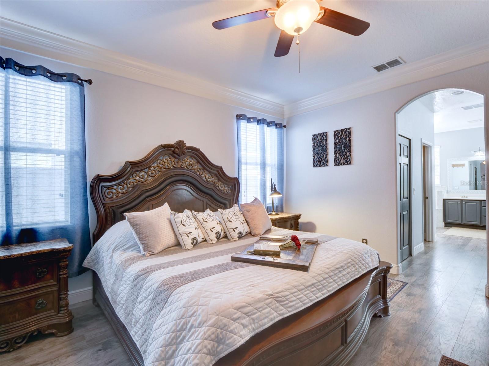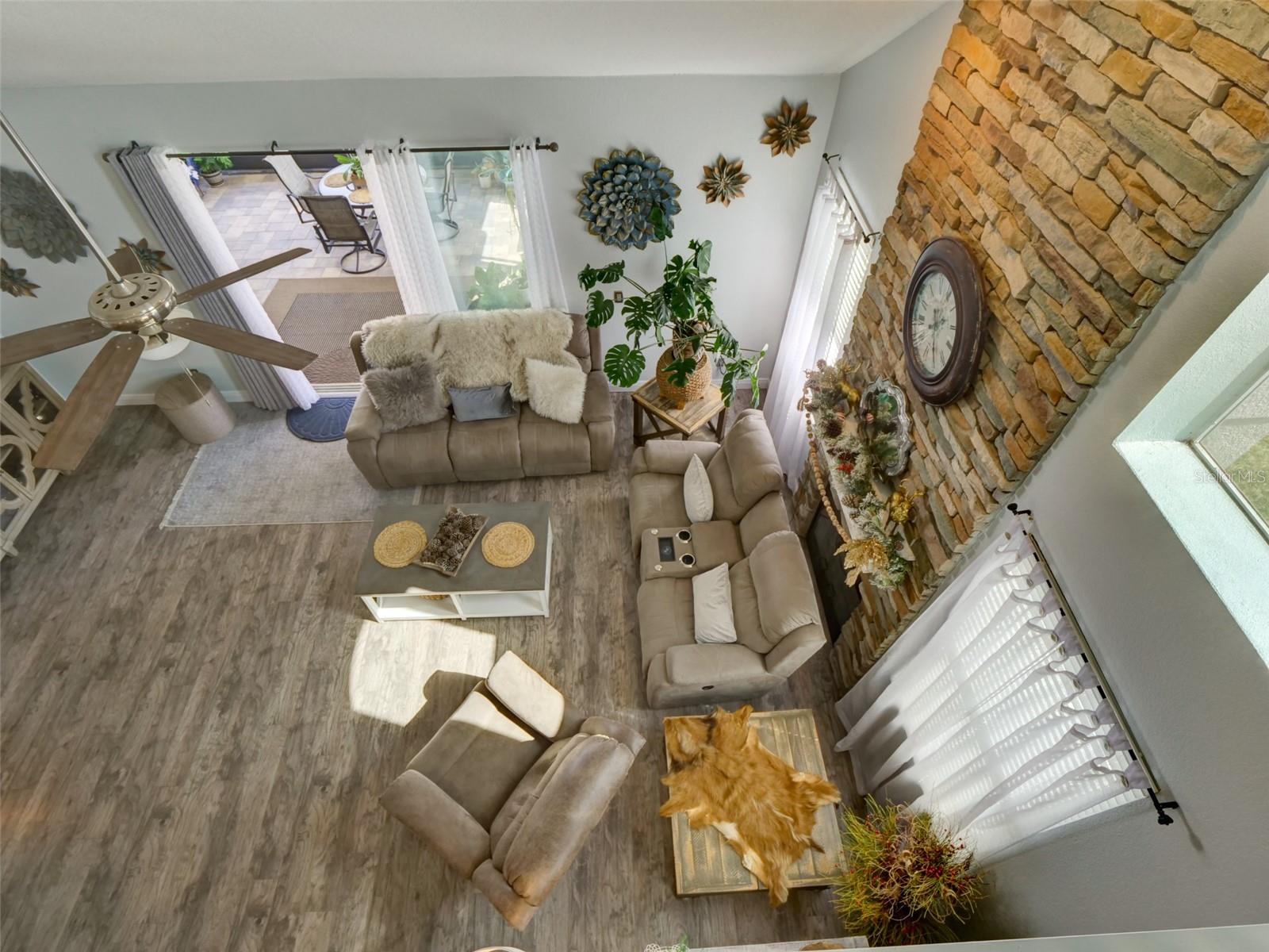 Experience refined living in this beautifully appointed 3,472 sq ft estate nestled on a private .32-acre corner lot with elegant stone elevation and a paved driveway in the highly desirable city of Mount Dora known for its charming, storybook atmosphere and vibrant community events. From the moment you arrive, this home makes a lasting impression. Designed with both sophistication and comfort in mind, the thoughtfully crafted floor plan features a first-floor primary retreat, offering privacy and convenience. The spa-inspired ensuite showcases dual marble vanities, dual walk-in closets, a relaxing jacuzzi tub, and a separate walk-in shower; your own personal sanctuary. The heart of the home is warm and inviting, where the family room with fireplace flows effortlessly into the dining area and upgraded kitchen creating an ideal space for gathering and entertaining. The kitchen is beautifully enhanced with granite countertops, designer backsplash, soft-close cabinetry, pull-out trays, stainless steel appliances, and refined finishes that blend function with style. Rich architectural details elevate every space, including crown molding throughout, 6-inch baseboards, and upgraded laminate flooring across the entire first level. Natural light fills the home, enhanced by tinted windows for comfort and efficiency. A versatile flex room provides the perfect home office or creative space, while the formal dining room can easily transform into a playroom or additional lounge. Upstairs, you’ll find three spacious bedrooms, a full bath, and an expansive bonus room overlooking the family room ideal as a media space, gym, study, or future fifth bedroom. Step outside to your private outdoor retreat. The 16x22 screened-in porch with elegant pavers offers year-round enjoyment, overlooking a fully fenced backyard complete with swing set perfect for entertaining or relaxing evenings at home. This residence is as efficient as it is beautiful, featuring two AC units with NEST thermostats, a whole-house water filtration system, hybrid water heater, smart locks, Ring doorbell, intercom system, and security system for modern peace of mind. Recent enhancements include: New Roof (2023), Exterior Paint (2023), Interior Paint (2025), Hybrid Water Heater (2019), Rain Gutters (2019), New Porch (2020), Kitchen Upgrades (2020–2021), First-Floor Flooring (2021). Beyond the home itself, enjoy the lifestyle that makes Mount Dora so special. Just minutes away, you’ll find shopping and dining at The Fresh Market, family fun and seasonal festivities at Amber Brooke Farms, and the beloved annual blueberry celebrations that draw visitors from all over. Known as an “enchanted” town for its historic downtown, festivals, art scene, and lakeside charm, Mount Dora offers a unique blend of small-town warmth and modern convenience. Located in a community with low HOA fees, residents also enjoy access to a community pool while maintaining a serene residential atmosphere. This is more than a home; it’s a lifestyle of elegance, comfort, and timeless Mount Dora charm.