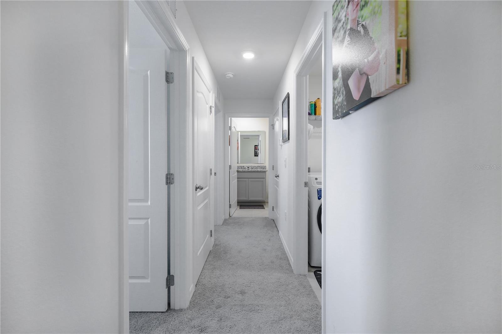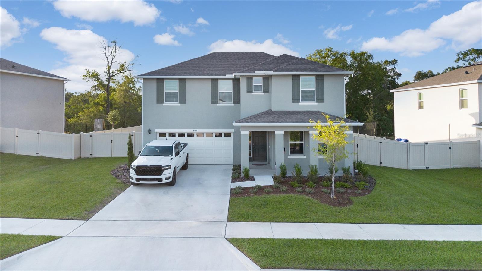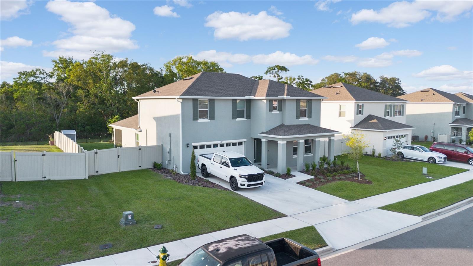 Buy with all of the finishing touches completed. (Approximately $25,000 in upgrades.) Already Fenced yard, gutters installed. Water system screened in lanai, washer & dryer, fans and fixtures complete! Ready for new owners! This completed, special upgraded Mcgraw Model with a porch is a two-story floor plan featured in Timberwalk in Mount Dora, Florida. It rests on a very desirable extra-large (9317 sq ft/ .2139 acre) fully fenced lot that backs to preserved land. Privacy is yours! Inside this inviting home you have 4-bedrooms, 3 and a half bathrooms with 2,858 square feet of comfortable living and a 2-car garage. This impressive all concrete block construction, two-story plan features a versatile floorplan to fit your needs. A spacious open-concept first floor includes a well-appointed kitchen with sleek stainless-steel appliances overlooking the living and dining area with a half bath. As you walk in, you will find a multigenerational bedroom with full bath, a walk-in closet, kitchenette and sitting area. As you move upstairs you are warmly greeted by the primary bedroom that features a spacious walk-in closet as well as an ensuite bathroom with double vanity and all the space you need to get ready to go out into the world. Two additional bedrooms share a second upstairs bathroom and linen closet for extra storage. Your laundry room is located on the second floor, as well as extra storage closets. This home includes Deako smart home technology with multiple smart switches, which allows you to control your home anytime with your smart device while home or away. Additional home alarm and ring doorbell adds to your safety features. This home also features a full house Rainsoft water system. Owners have fully screened lanai. The fenced yard has automatic sprinklers and a double door gate on one side of the home and a single access door on the other side. Ready to make your move? Contact us today for a private viewing.