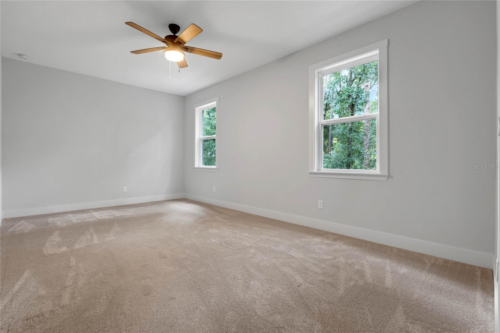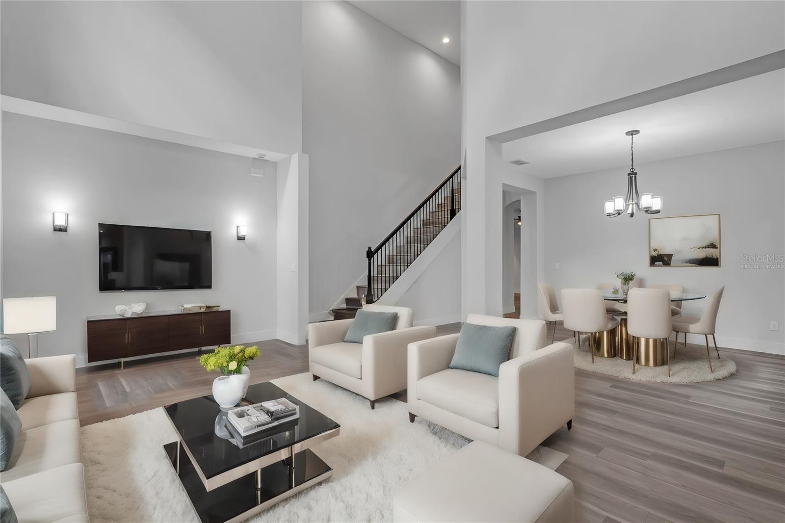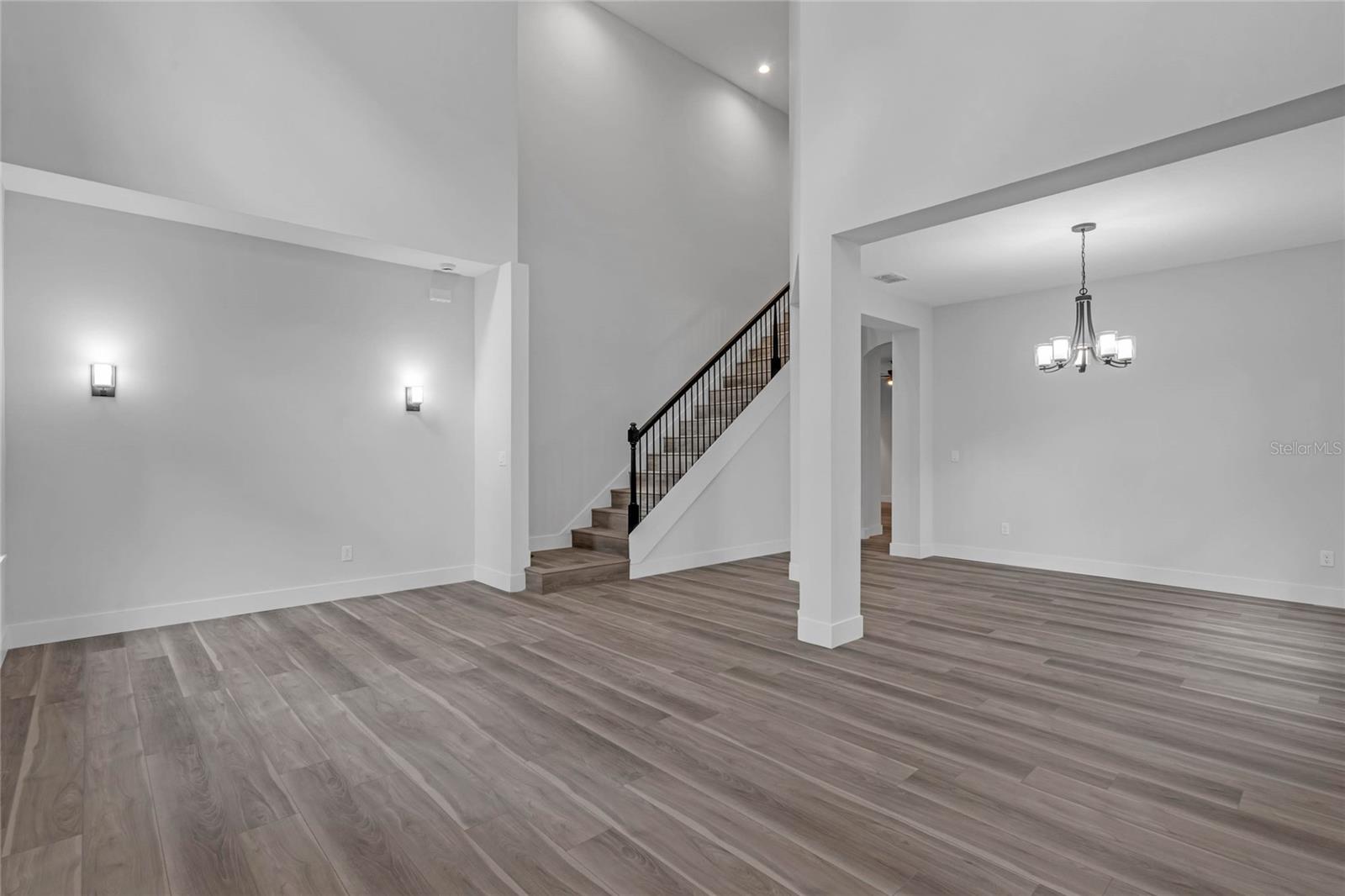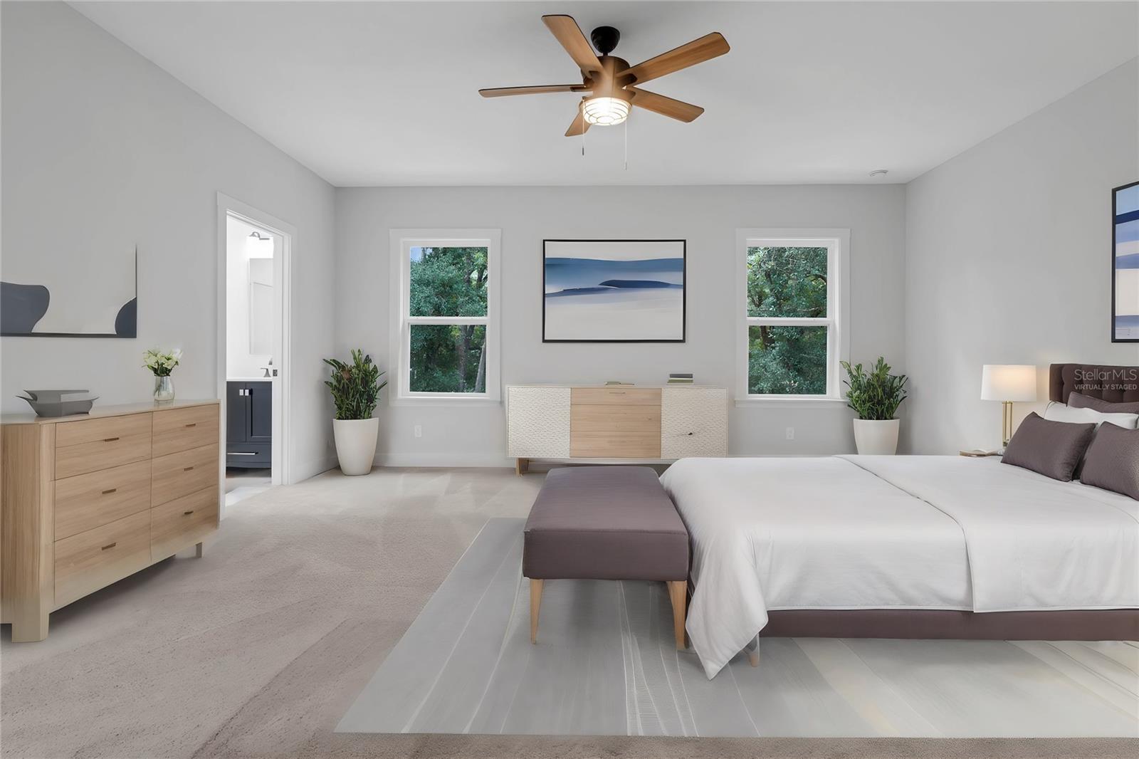 One or more photo(s) has been virtually staged. Welcome to the serene neighborhood of Mount Plymouth, where the essence of country living meets modern convenience. Nestled amidst the charm of this delightful community, this home presents a bespoke two-story, 5-bedroom, 3.5-bathroom residence designed to accommodate the needs of a growing family with style and functionality. This custom-built home stands as a testament to quality craftsmanship, with a sturdy concrete block construction spanning both floors, ensuring durability and peace of mind for years to come. As you step into the foyer, be greeted by soaring 20-foot ceilings, a grandeur that sets the tone for the elegance within. The formal dining room, adjacent to the entry, boasts a regal ambiance complemented by the expansive ceiling height. Throughout the home, attention to detail is evident, with 9-foot 4-inch flat ceilings gracing every room, adorned with refined 1 x 4 casing and 5¼-inch baseboards framing doors and windows. The heart of the home, the kitchen, and laundry areas, feature shaker-style cabinets adorned with 42-inch uppers and luxurious quartz countertops, offering both functionality and aesthetic appeal. A harmonious blend of flooring materials defines each space, with resilient luxury vinyl plank flooring adorning common areas, plush carpeting in the bedrooms, and elegant 24 x 48 porcelain tiles enhancing the bathrooms on the upper floor. Every fixture exudes quality, from Kohler to Price Pfister, ensuring a standard of excellence throughout the home. Designed for comfort and convenience, this residence boasts dual master bedrooms, each offering sanctuary and privacy. The generously sized bedrooms, provide ample space for relaxation and personalization. Meanwhile, the bathrooms showcase furniture-style vanities with double sinks and exquisite quartz countertops, adding a touch of luxury to daily routines. With an eye toward efficiency and sustainability, this home is thoughtfully equipped to minimize future maintenance and monthly living costs. The exterior is adorned with Behr Marquis paint, while the vinyl bead board ceilings in the entry and rear porch exude timeless charm. A Carrier unit with a zone system ensures customizable comfort on each floor, while an 80-gallon hybrid water heater offers both energy efficiency and convenience. Outdoor living is embraced with open arms, thanks to PVC porch railings with steel balusters and a lush St. Augustine grass lawn irrigated by a well, eliminating the need for a city water bill. Ample parking ensures convenience for residents and guests alike, completing the picture of effortless living in this idyllic countryside retreat. Welcome home, where thoughtful design, superior craftsmanship, and modern amenities converge to create a haven for anyone seeking the perfect blend of comfort and style.