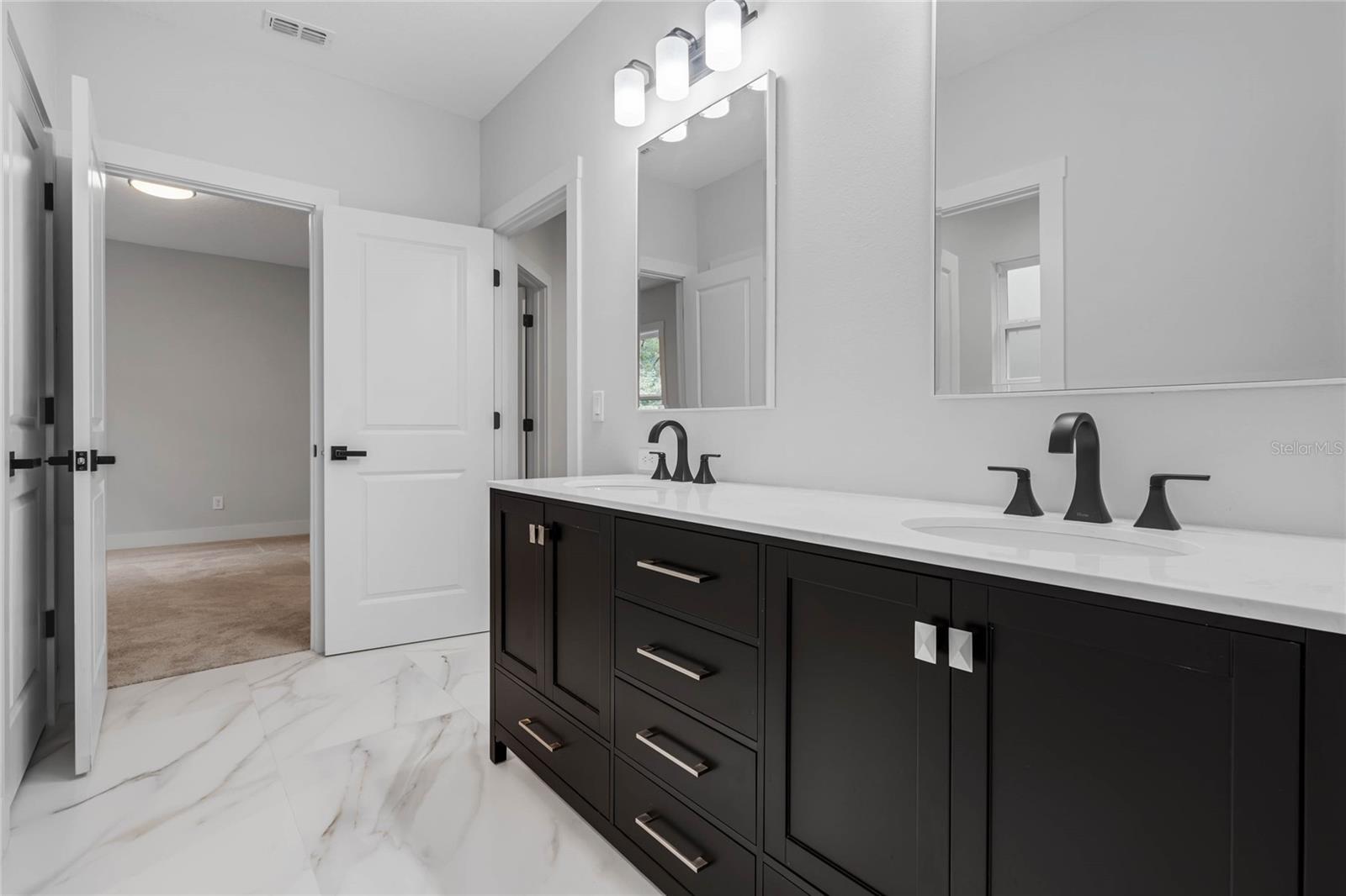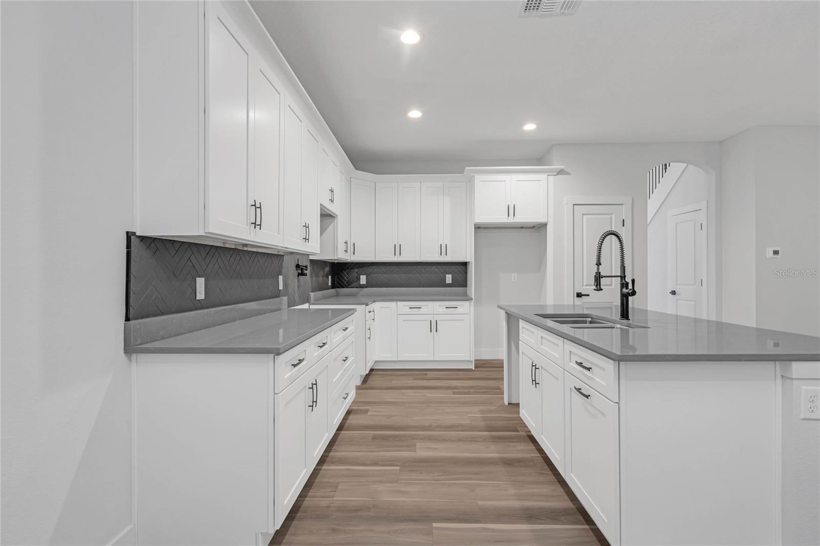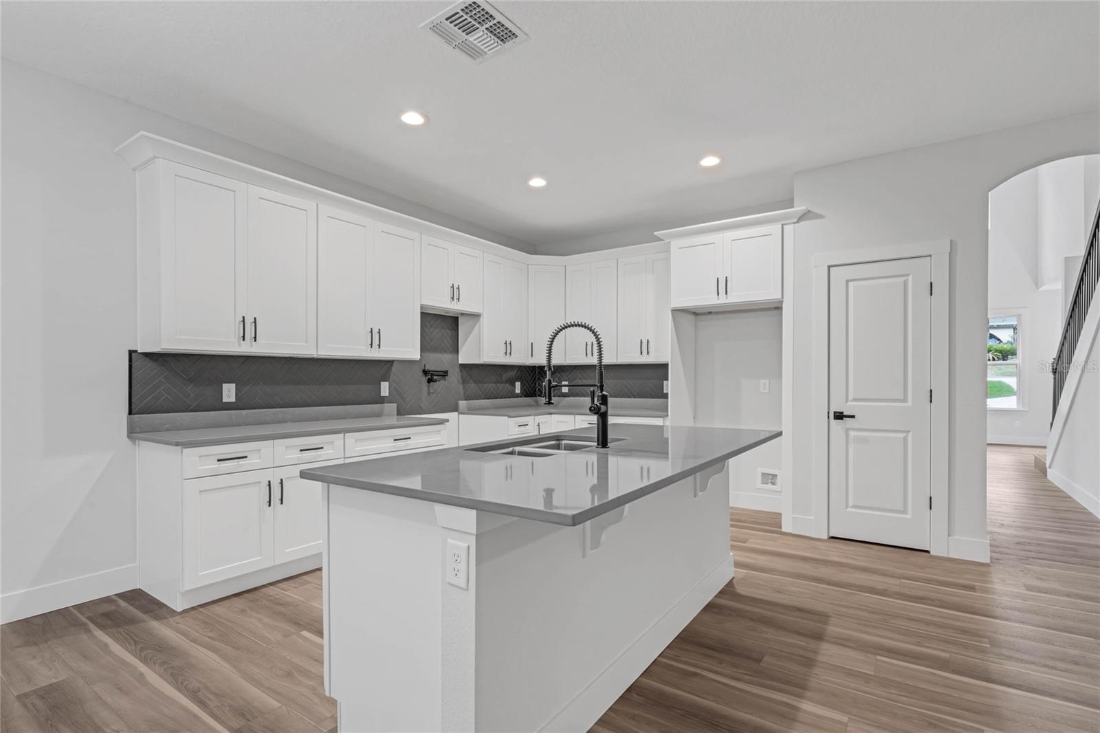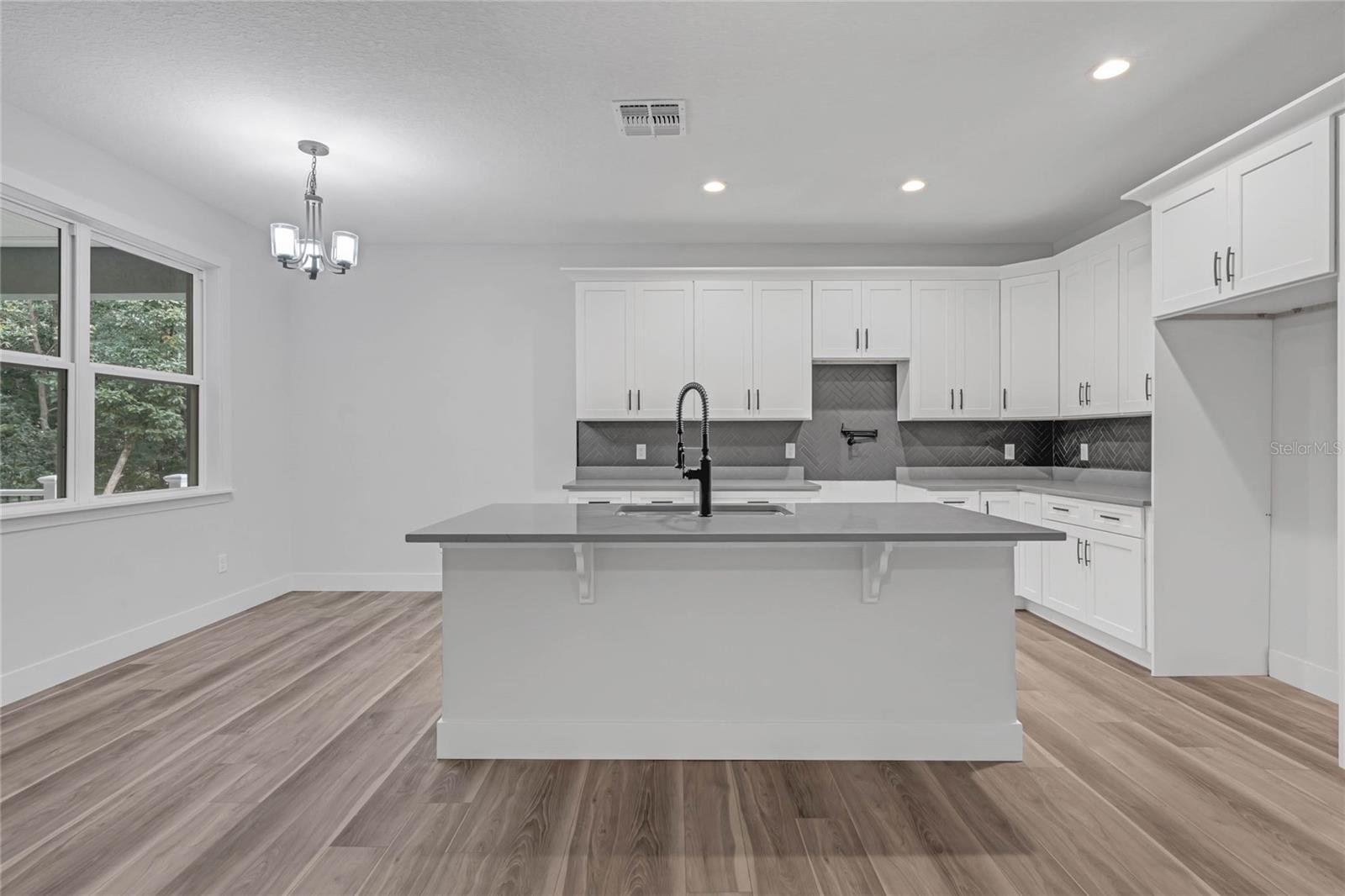 One or more photo(s) has been virtually staged. Welcome to the serene neighborhood of Mount Plymouth, where the essence of country living meets modern convenience. Nestled amidst the charm of this delightful community, this home presents a bespoke two-story, 5-bedroom, 3.5-bathroom residence designed to accommodate the needs of a growing family with style and functionality. This custom-built home stands as a testament to quality craftsmanship, with a sturdy concrete block construction spanning both floors, ensuring durability and peace of mind for years to come. As you step into the foyer, be greeted by soaring 20-foot ceilings, a grandeur that sets the tone for the elegance within. The formal dining room, adjacent to the entry, boasts a regal ambiance complemented by the expansive ceiling height. Throughout the home, attention to detail is evident, with 9-foot 4-inch flat ceilings gracing every room, adorned with refined 1 x 4 casing and 5¼-inch baseboards framing doors and windows. The heart of the home, the kitchen, and laundry areas, feature shaker-style cabinets adorned with 42-inch uppers and luxurious quartz countertops, offering both functionality and aesthetic appeal. A harmonious blend of flooring materials defines each space, with resilient luxury vinyl plank flooring adorning common areas, plush carpeting in the bedrooms, and elegant 24 x 48 porcelain tiles enhancing the bathrooms on the upper floor. Every fixture exudes quality, from Kohler to Price Pfister, ensuring a standard of excellence throughout the home. Designed for comfort and convenience, this residence boasts dual master bedrooms, each offering sanctuary and privacy. The generously sized bedrooms, provide ample space for relaxation and personalization. Meanwhile, the bathrooms showcase furniture-style vanities with double sinks and exquisite quartz countertops, adding a touch of luxury to daily routines. With an eye toward efficiency and sustainability, this home is thoughtfully equipped to minimize future maintenance and monthly living costs. The exterior is adorned with Behr Marquis paint, while the vinyl bead board ceilings in the entry and rear porch exude timeless charm. A Carrier unit with a zone system ensures customizable comfort on each floor, while an 80-gallon hybrid water heater offers both energy efficiency and convenience. Outdoor living is embraced with open arms, thanks to PVC porch railings with steel balusters and a lush St. Augustine grass lawn irrigated by a well, eliminating the need for a city water bill. Ample parking ensures convenience for residents and guests alike, completing the picture of effortless living in this idyllic countryside retreat. Welcome home, where thoughtful design, superior craftsmanship, and modern amenities converge to create a haven for anyone seeking the perfect blend of comfort and style.
